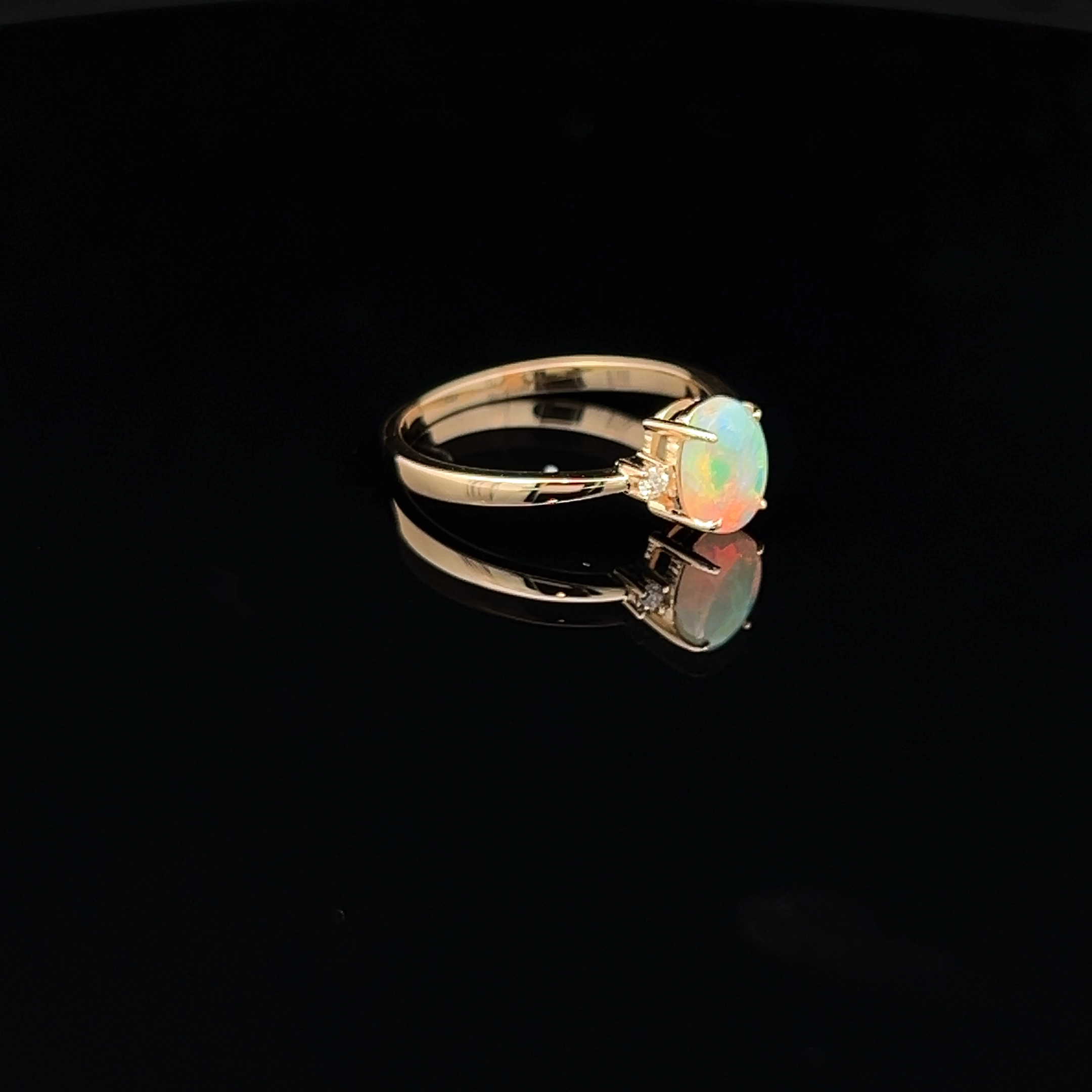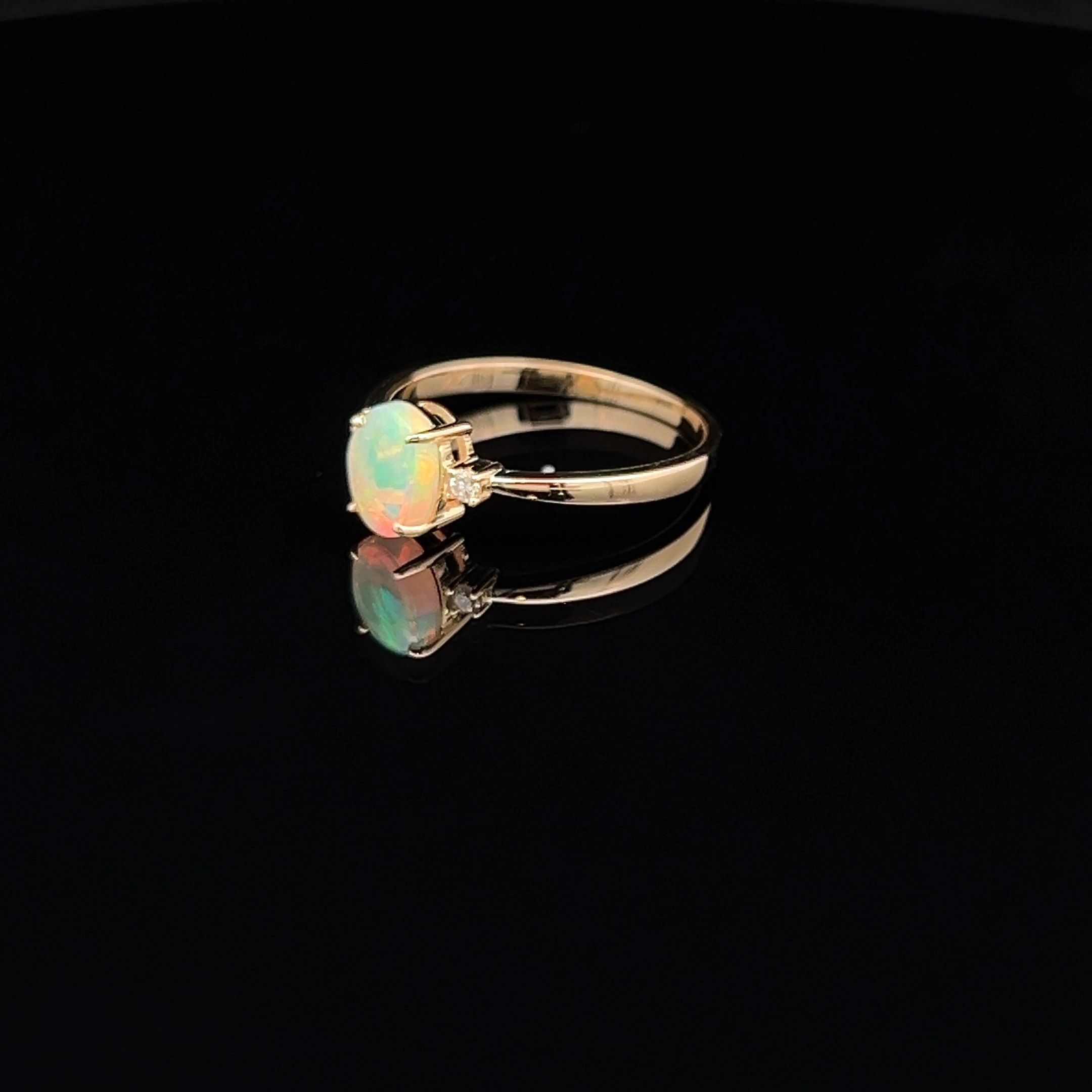 South Australian Solid Crystal Opal & Diamond Ring in 14K Yellow Gold