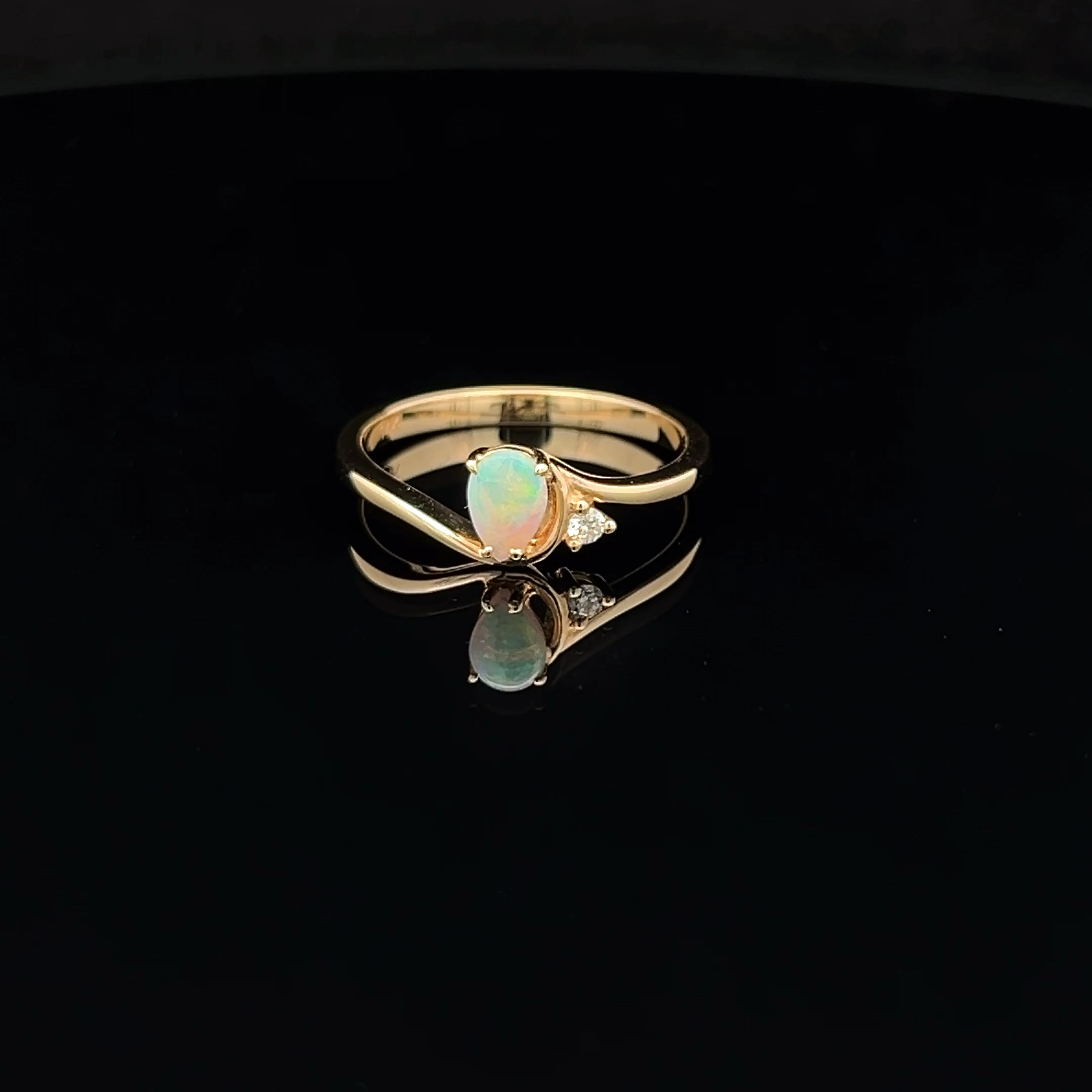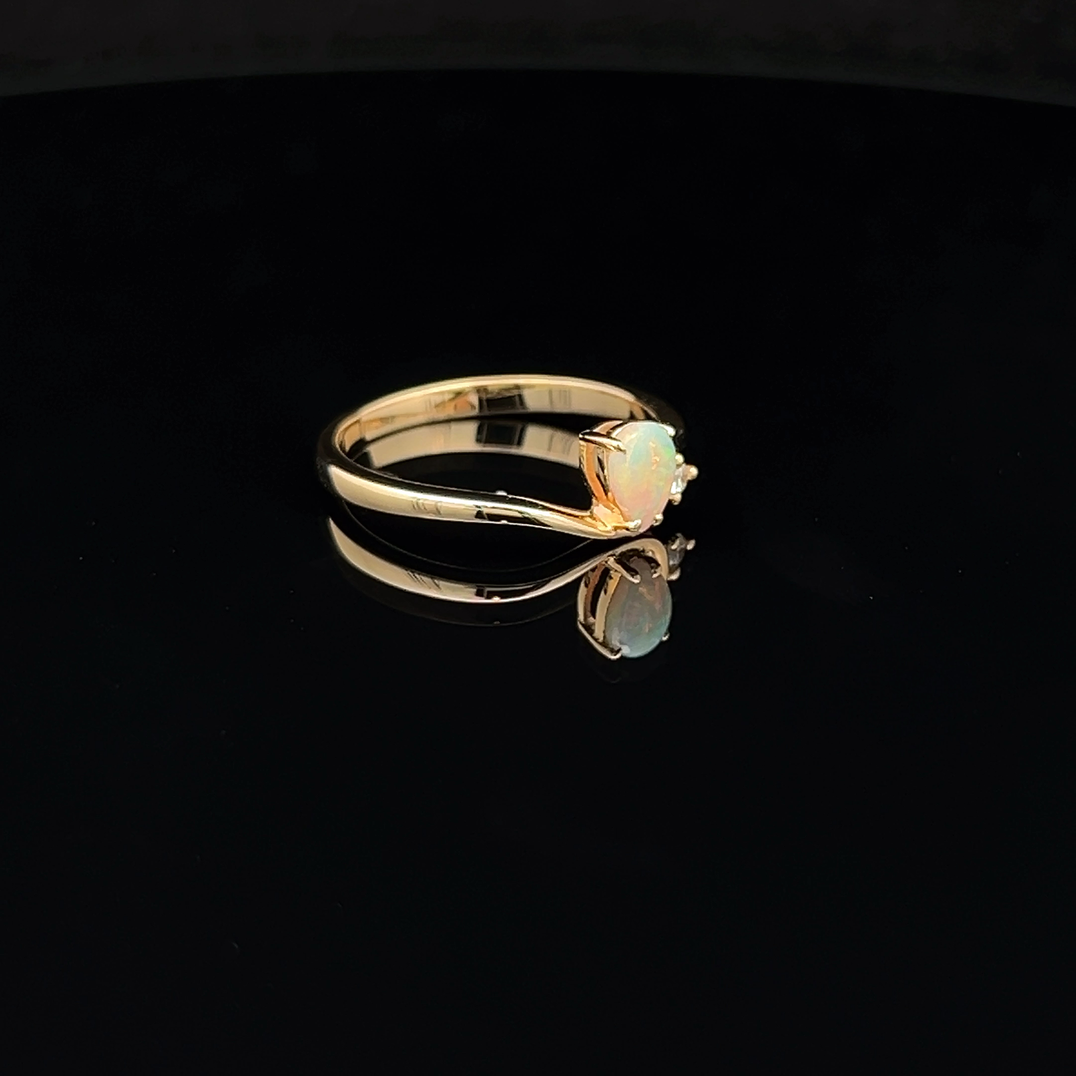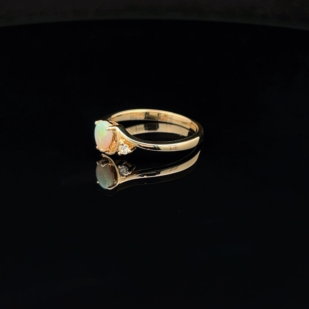 14K Yellow Gold Solid Crystal Opal & Diamond Ring 56988