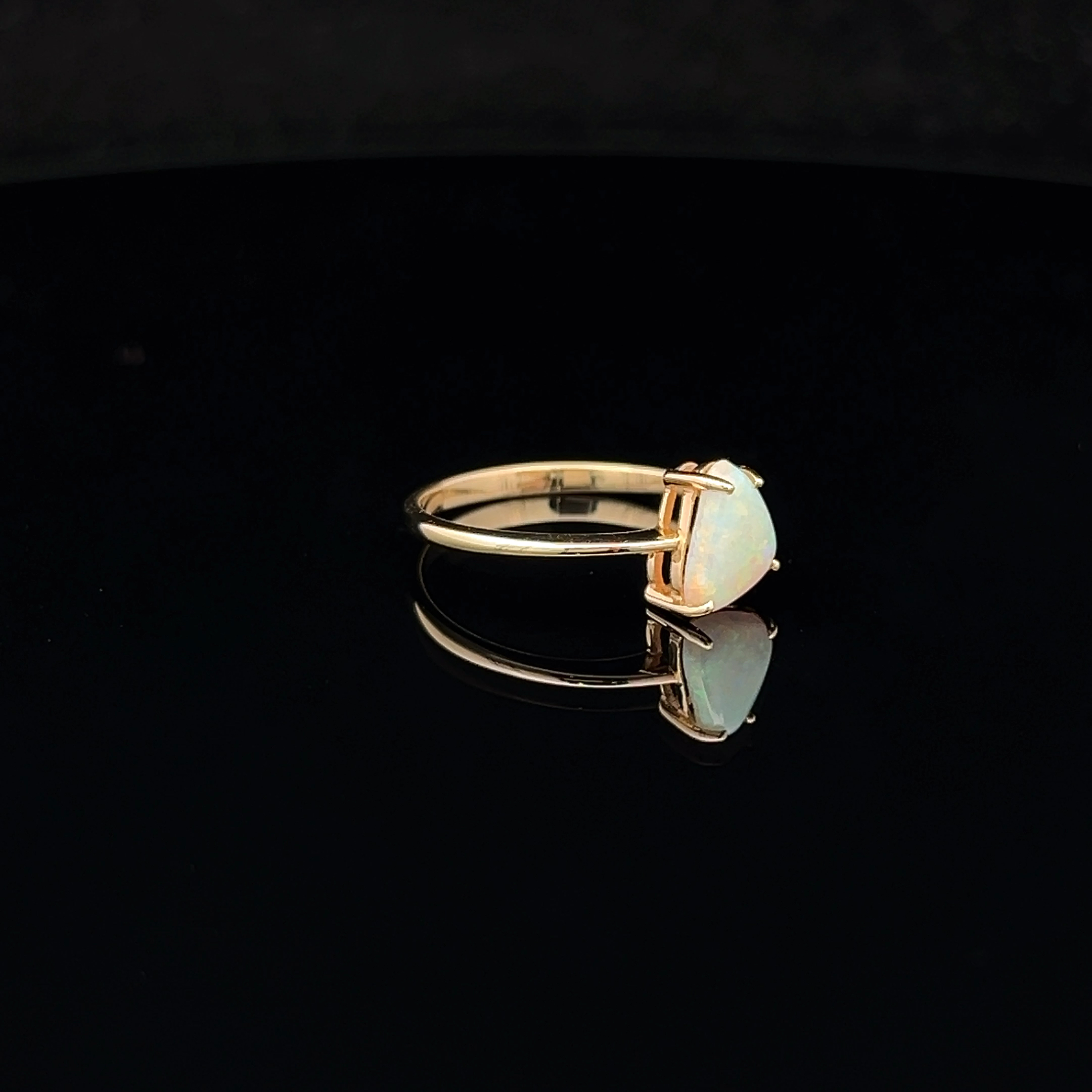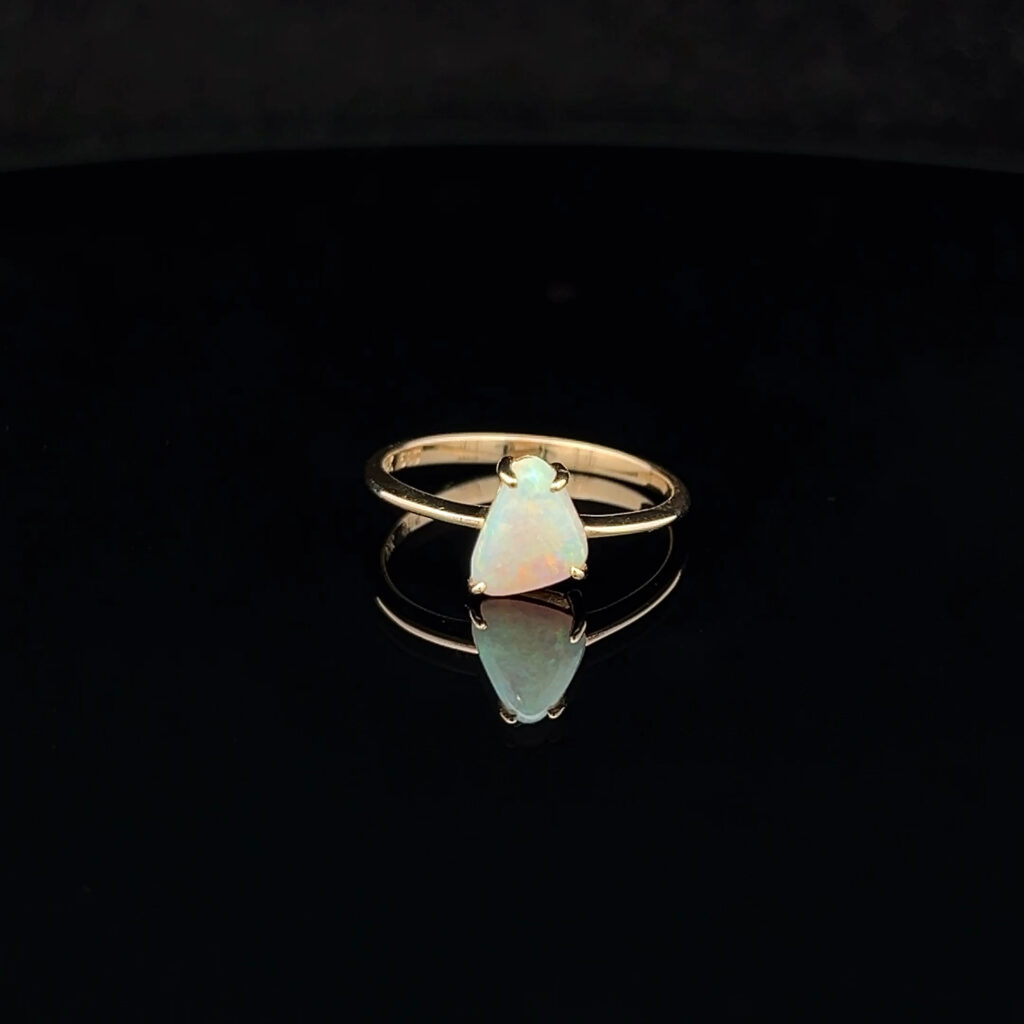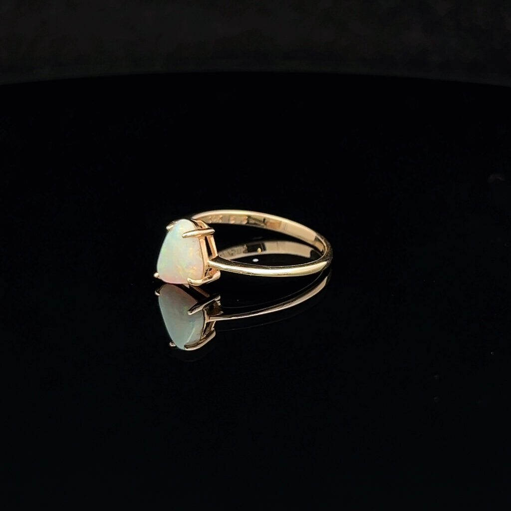 14K Yellow Gold Solid Coober Pedy Light Opal Claw Set Ring