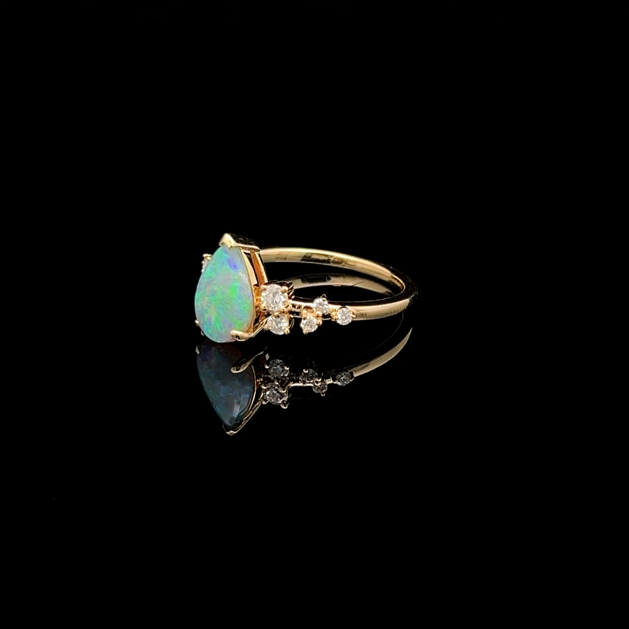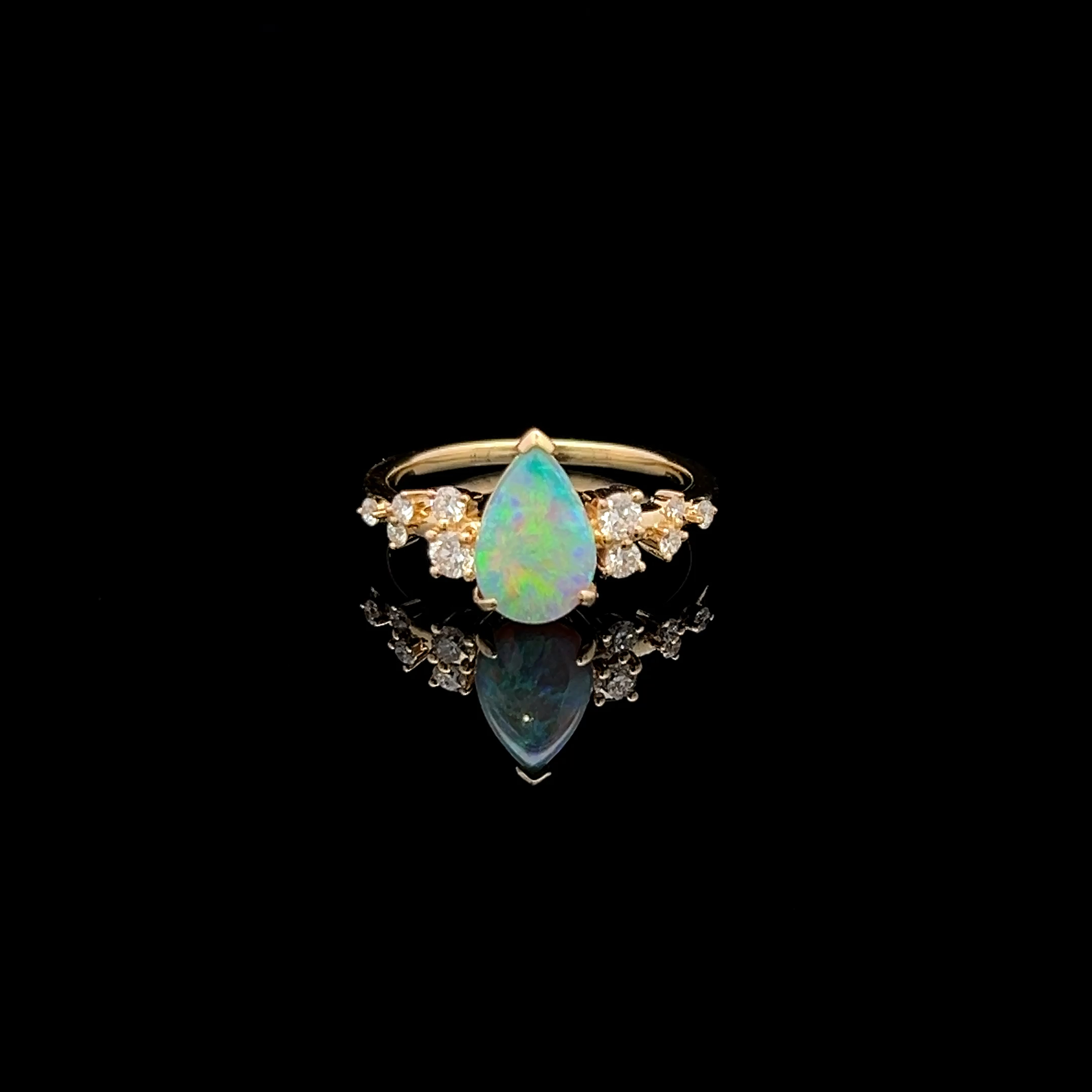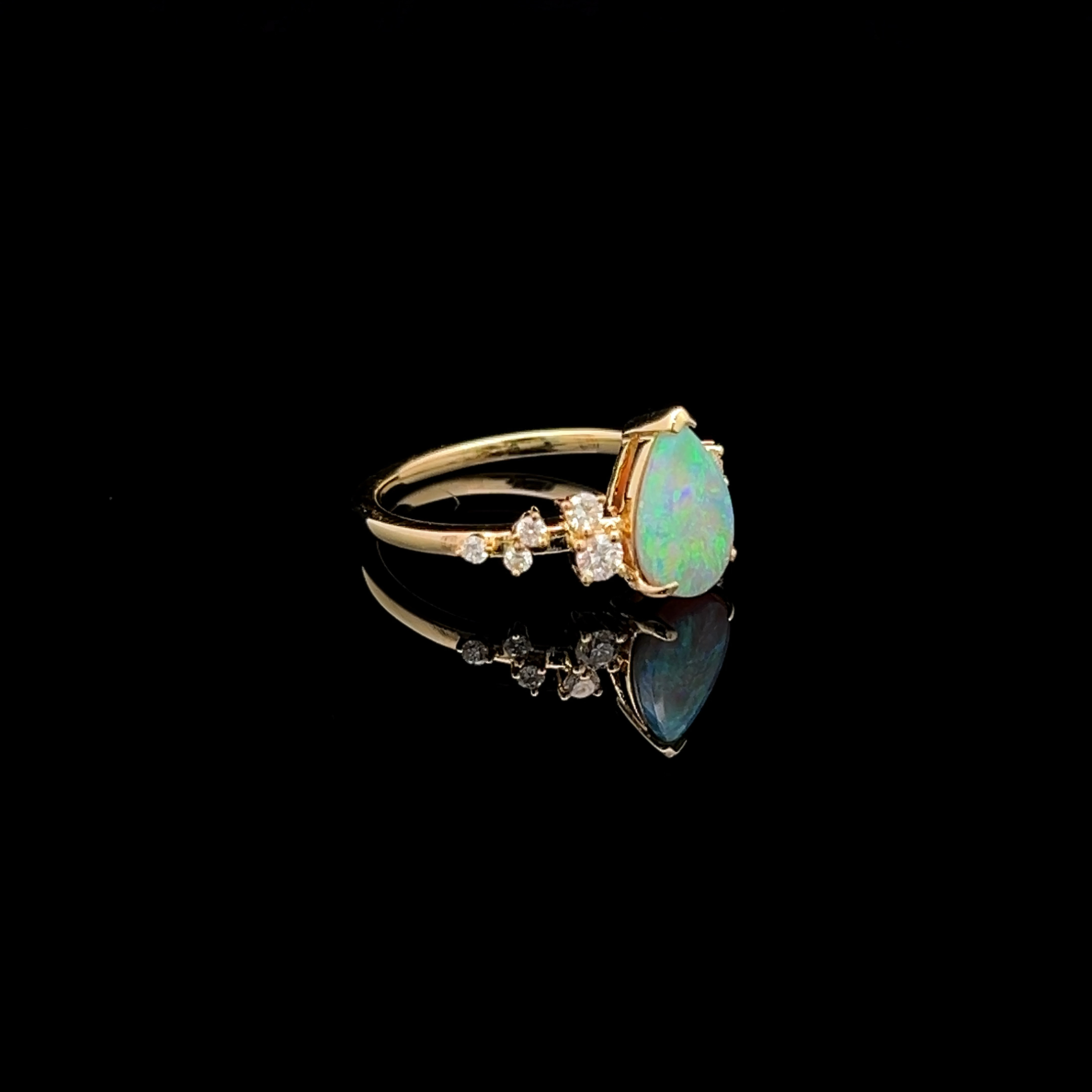 Lightning Ridge Solid Crystal Opal on an 18K Yellow Gold Band with Various Sized Diamonds