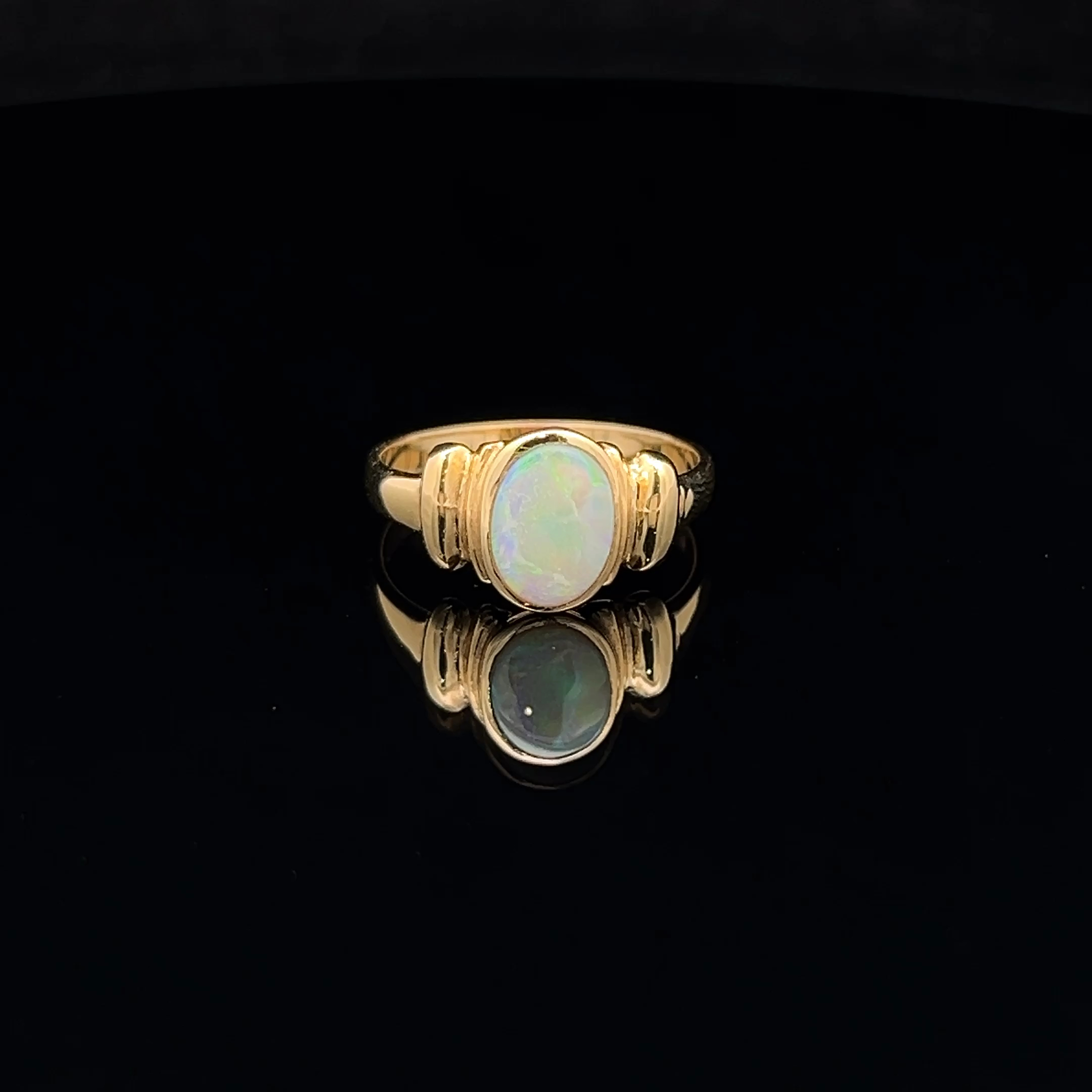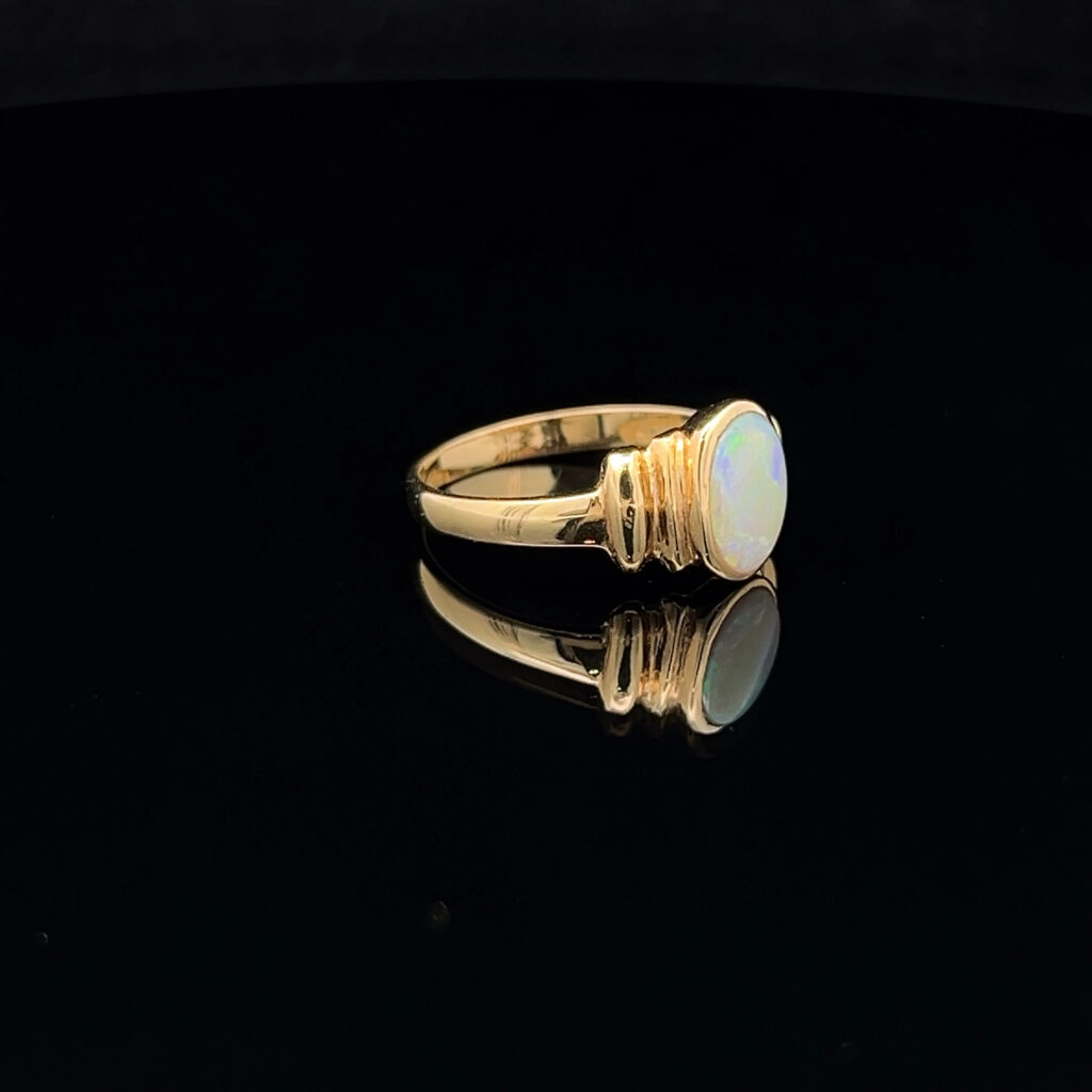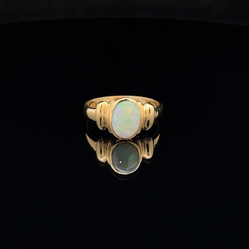 18K Yellow Gold Solid Crystal Opal Ring 25175