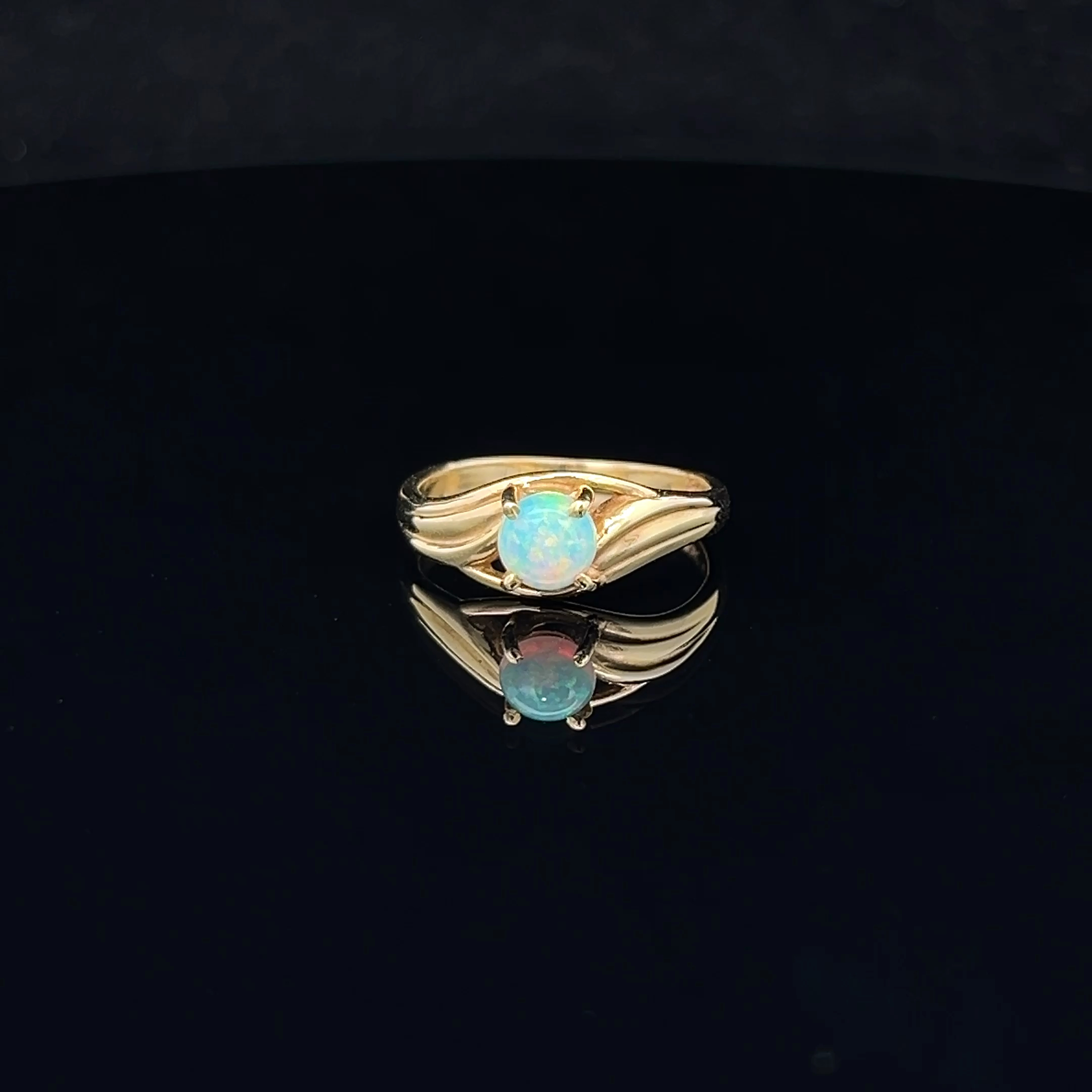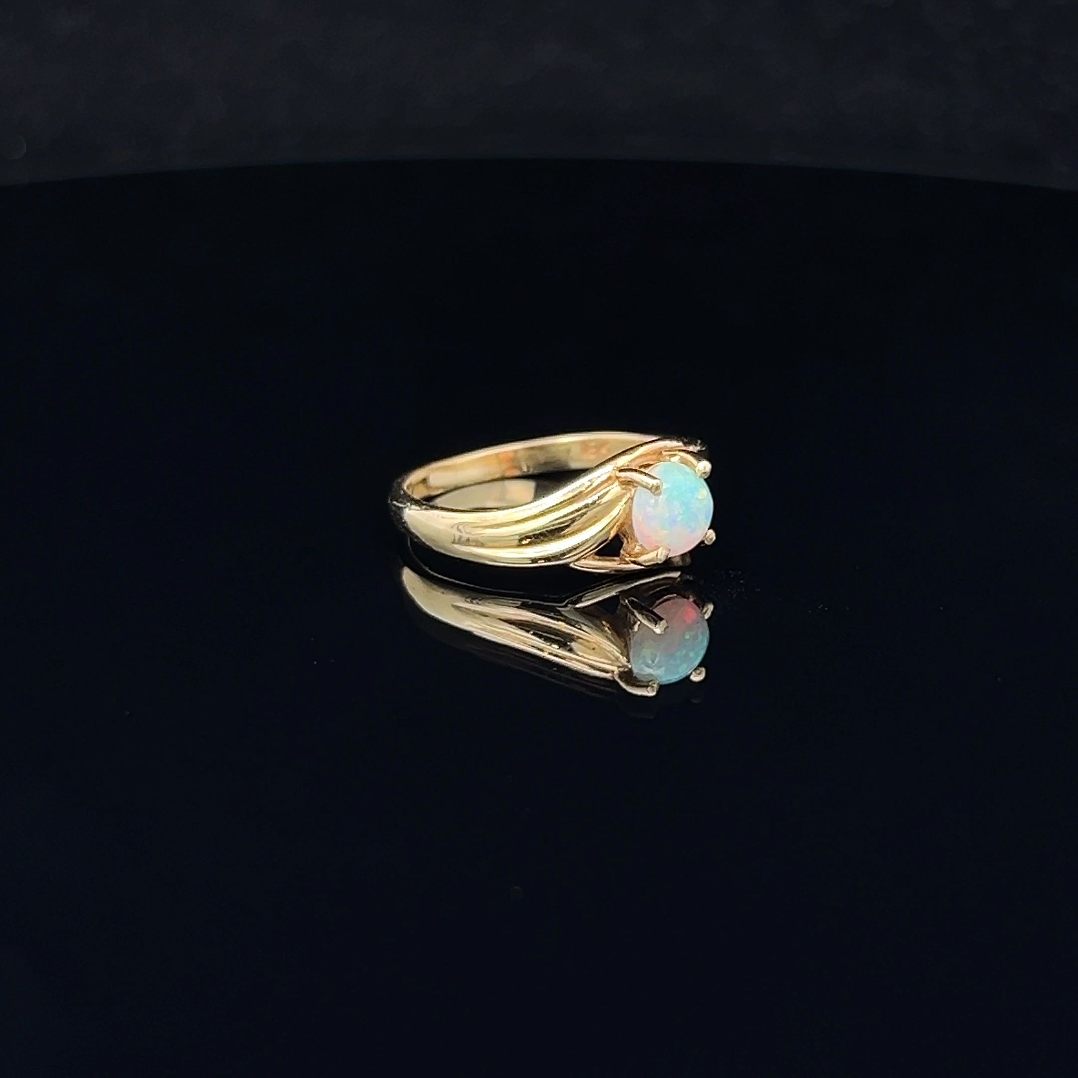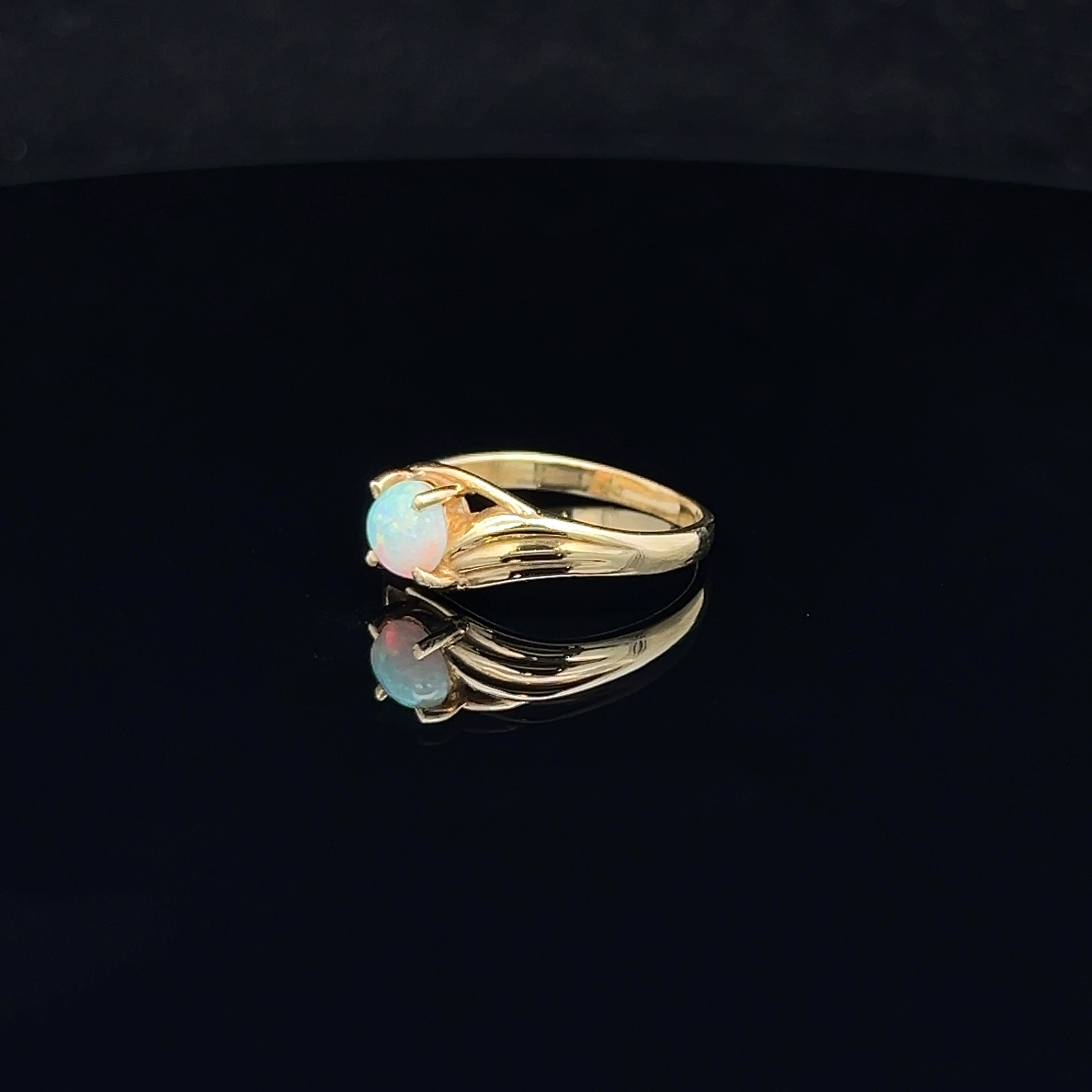 Solid Round-cut Light Opal set on an intricate 18K Yellow Gold Band