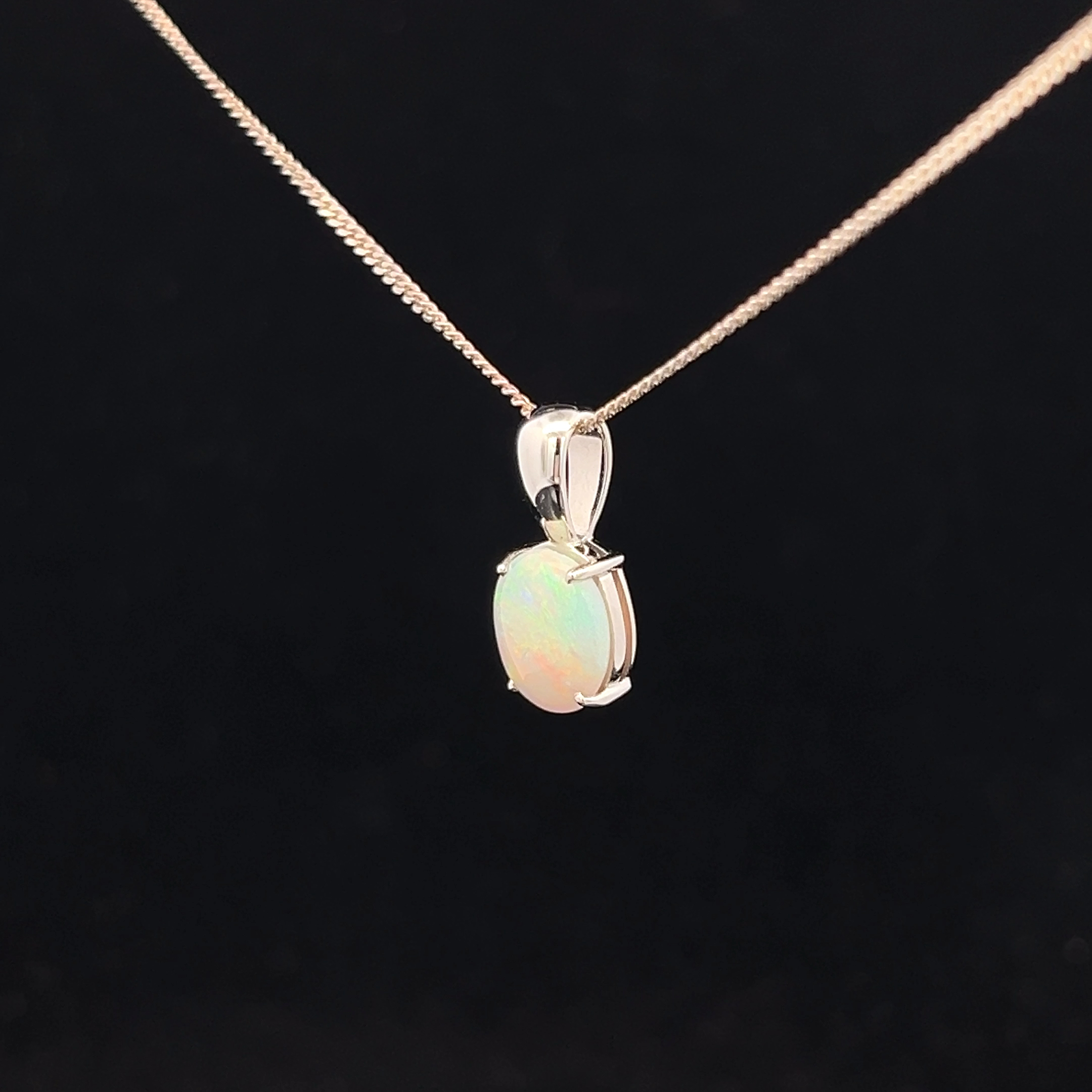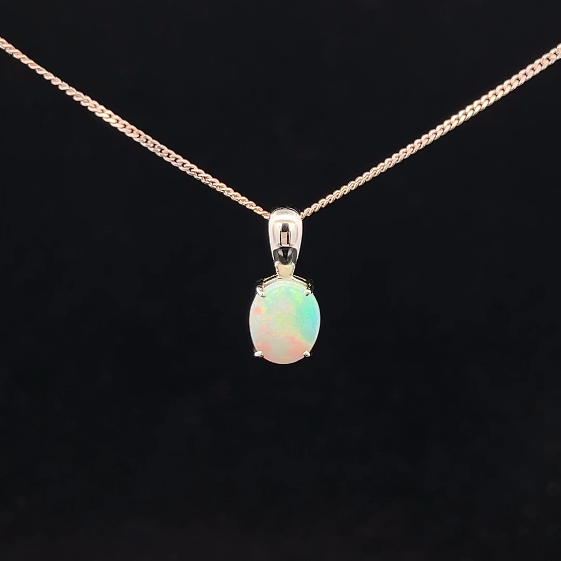 Solid Crystal Opal set in a 9K White Gold Pendant
