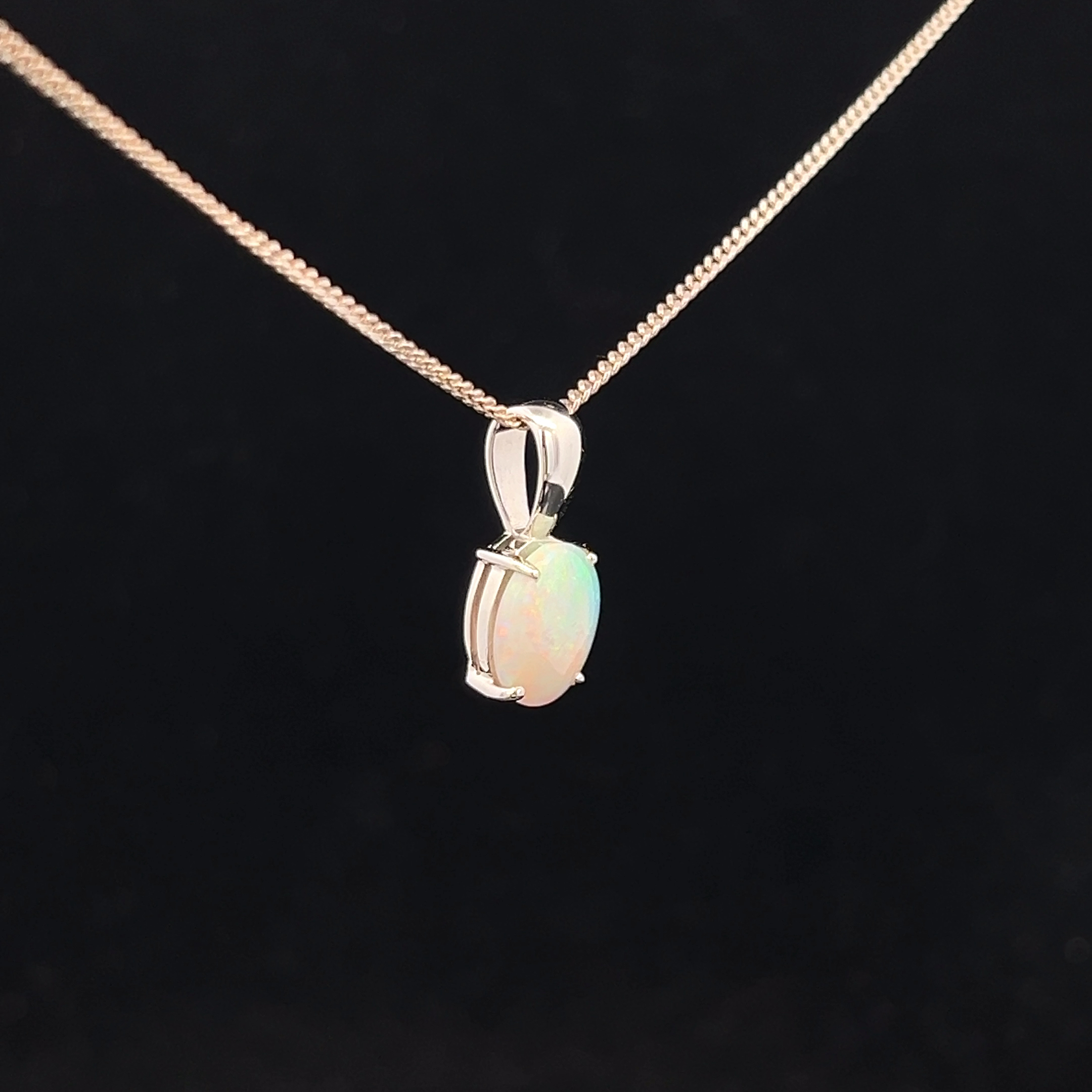 9K White Gold Solid Crystal Opal Pendant 66460