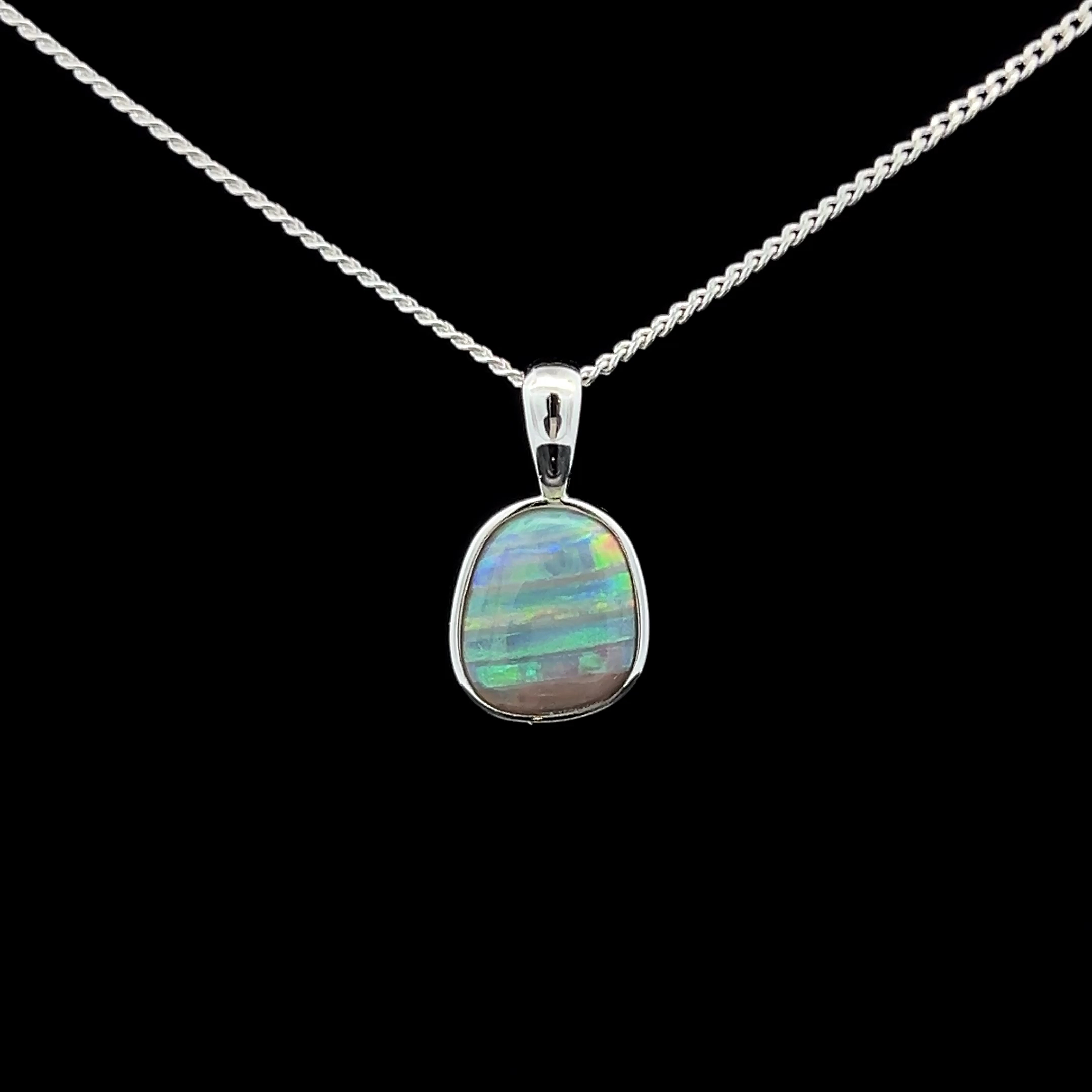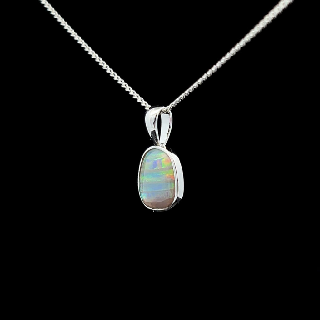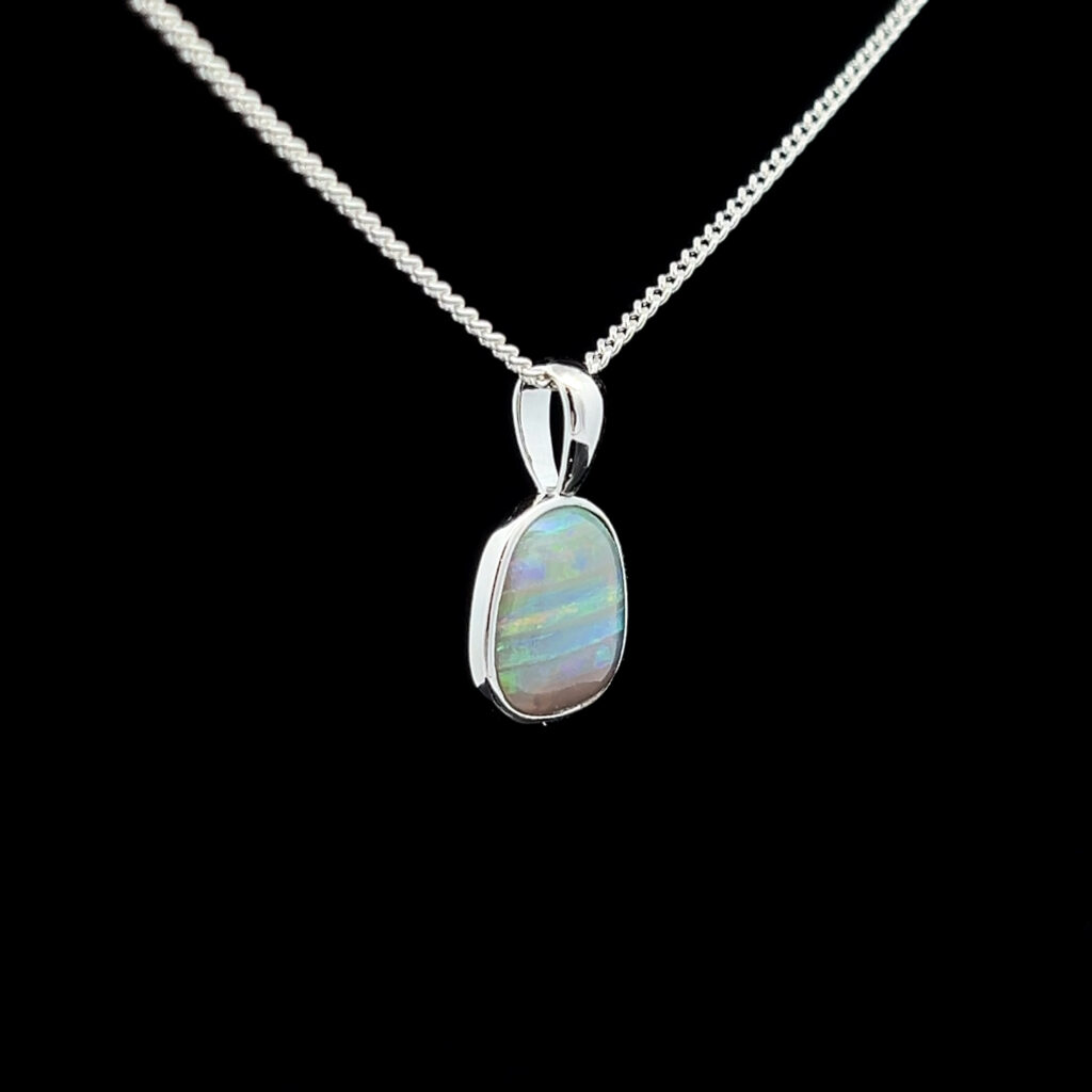 9K White Gold South Australian Solid Crystal Opal Pendant