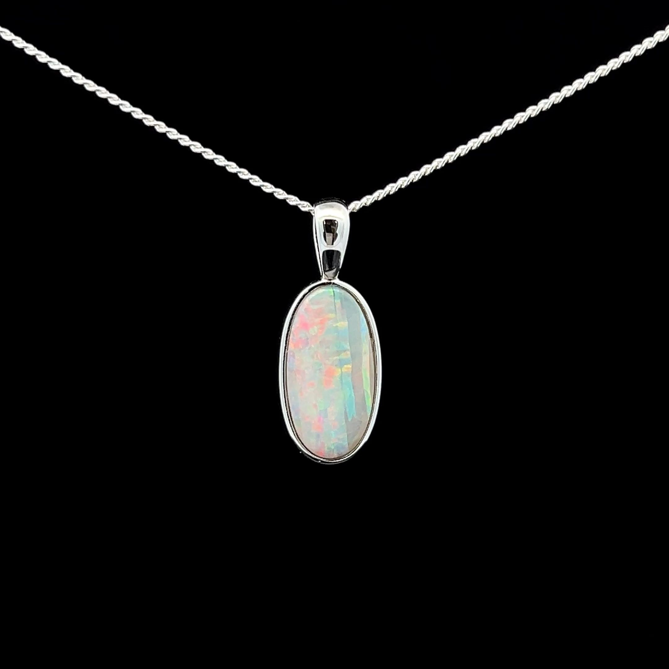 9K White Gold South Australian Solid Crystal Opal Pendant