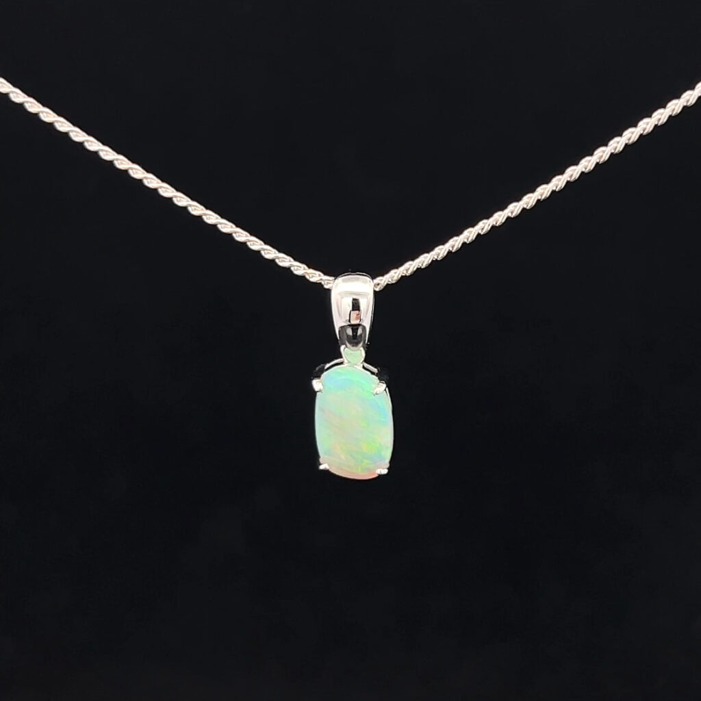 9K White Gold South Australian Solid Crystal Opal Pendant