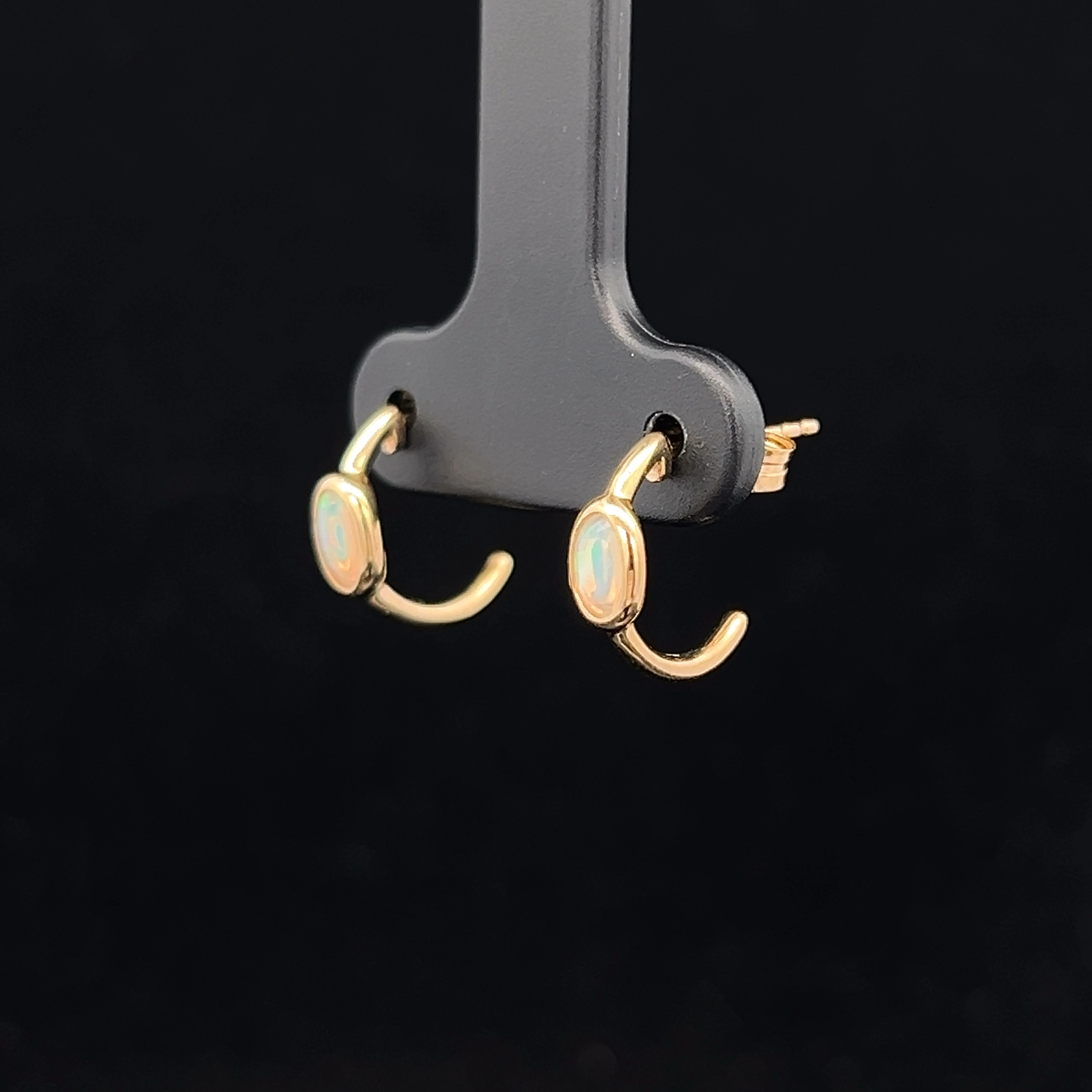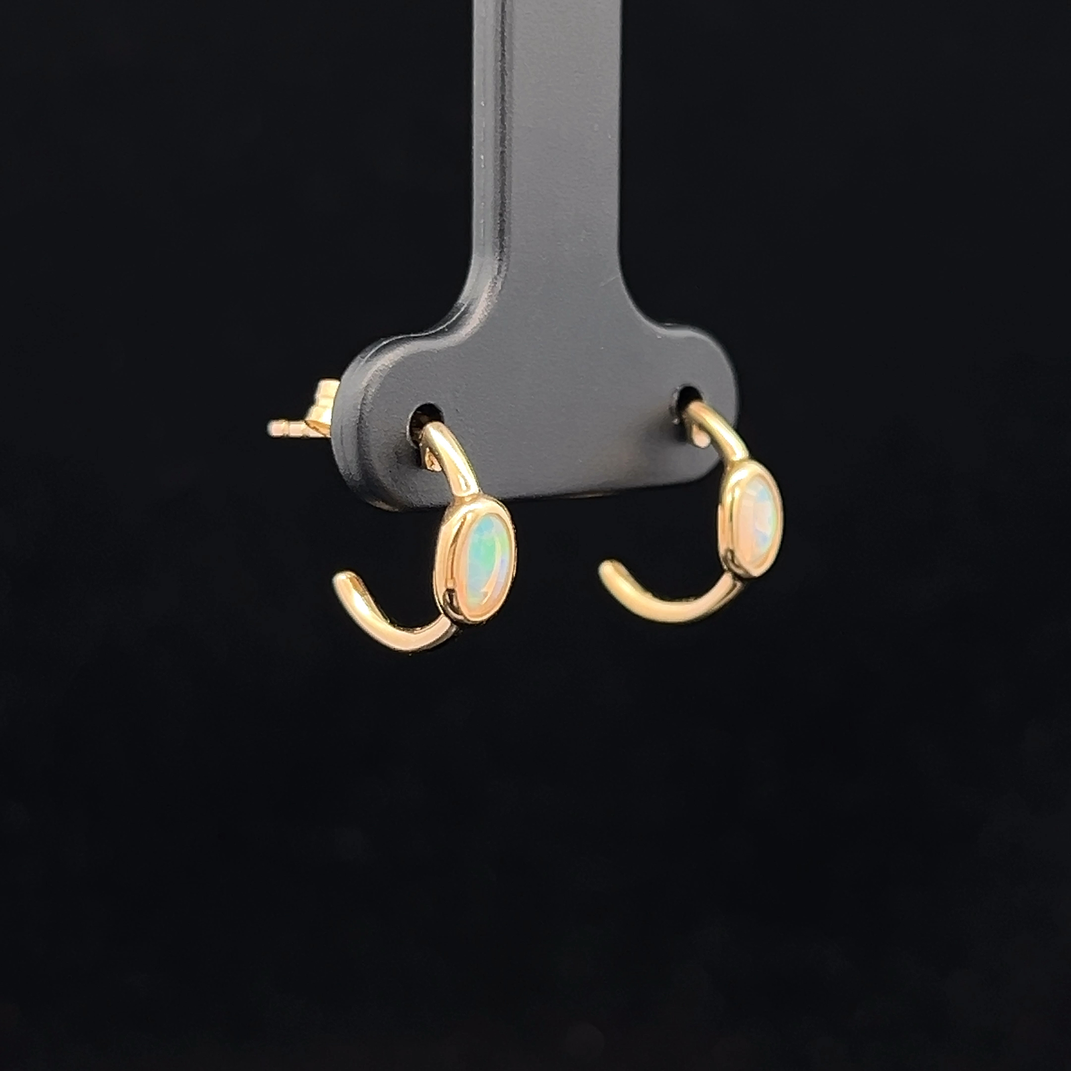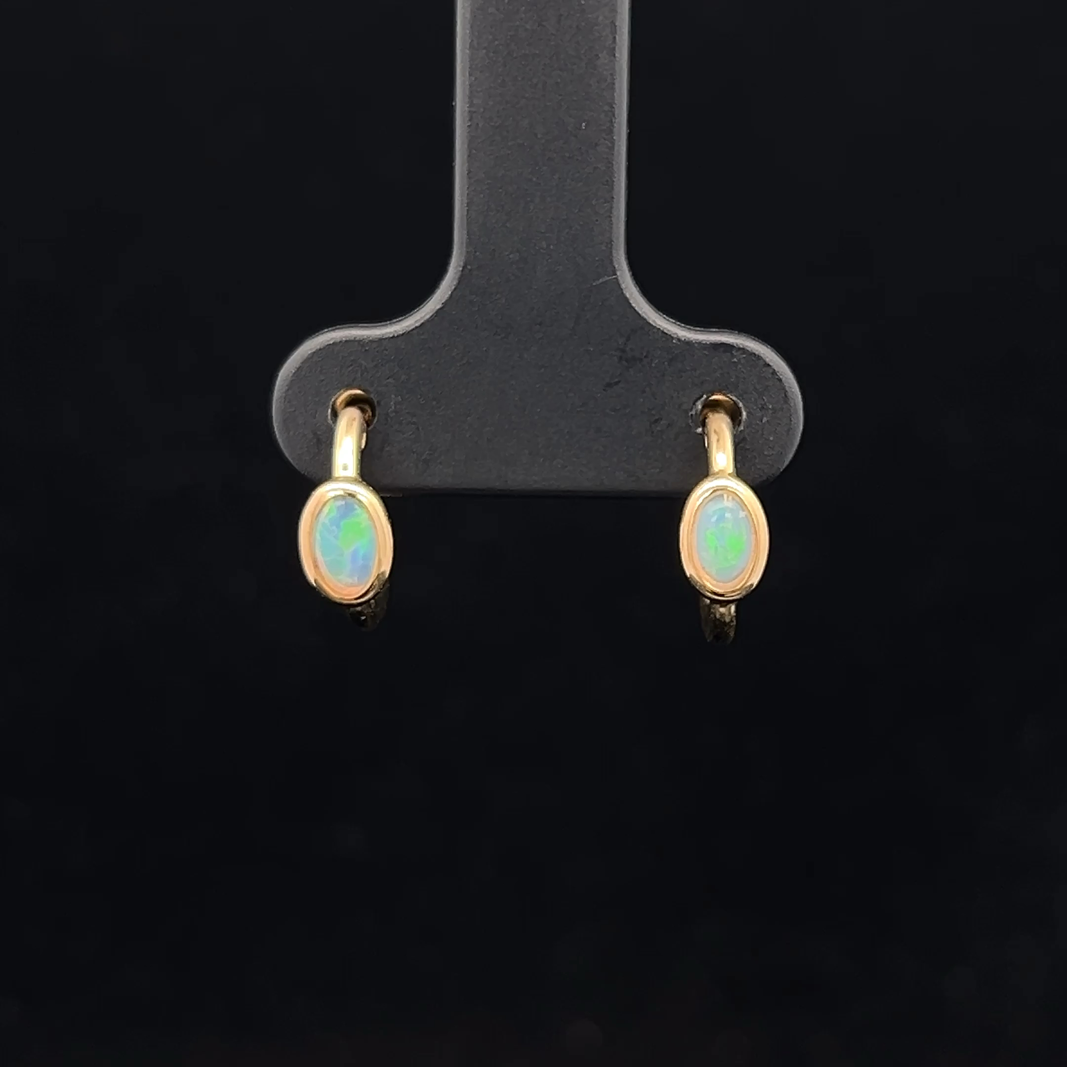 South Australian Solid Light Opal set in 9K Yellow Gold Hoop Earrings