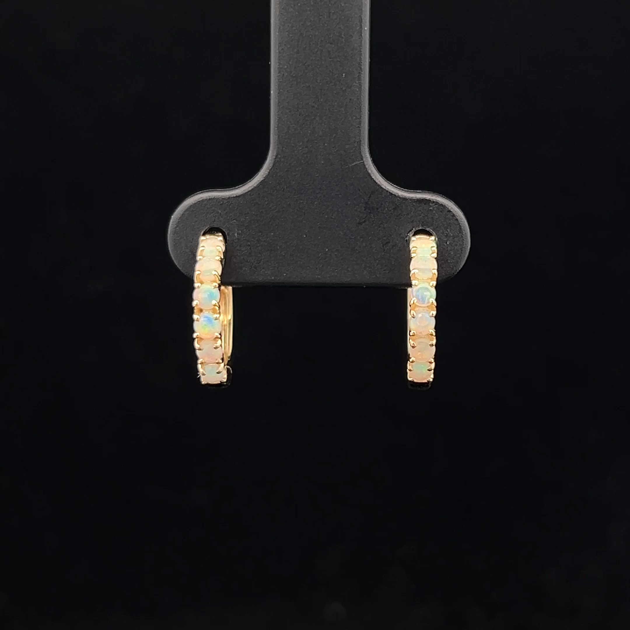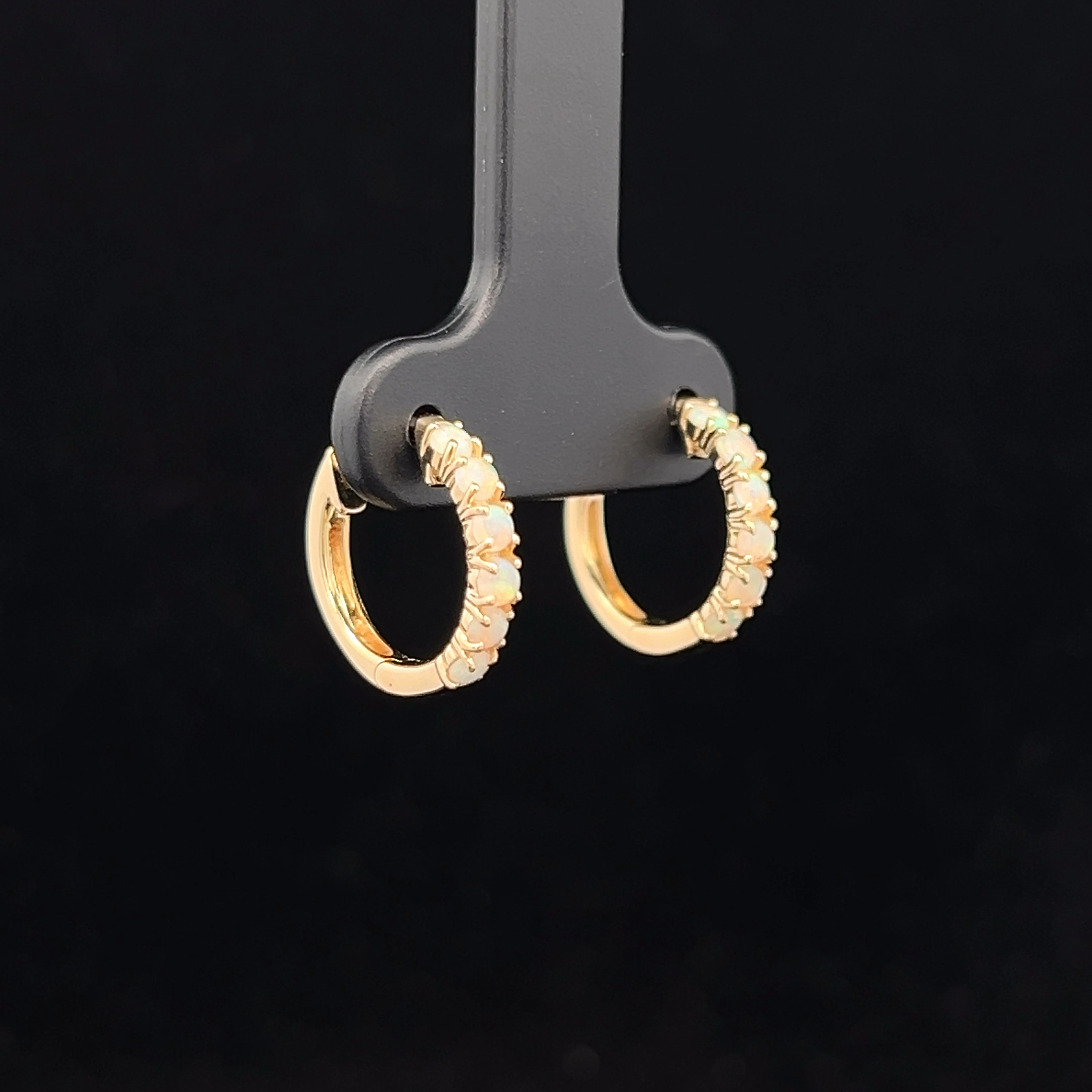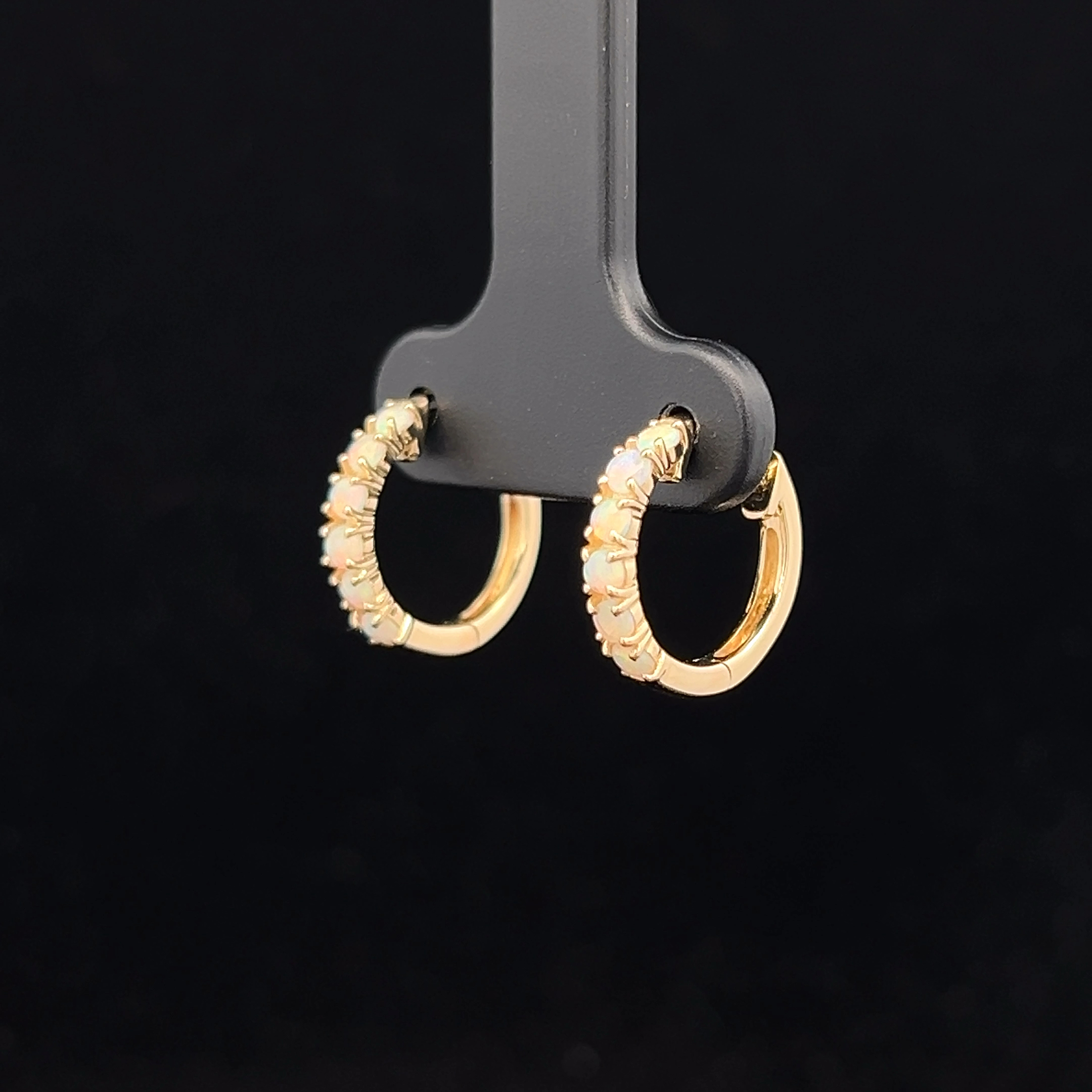 Six South Australian Solid Light Opal Set in 9K Yellow Gold Hoop Earrings