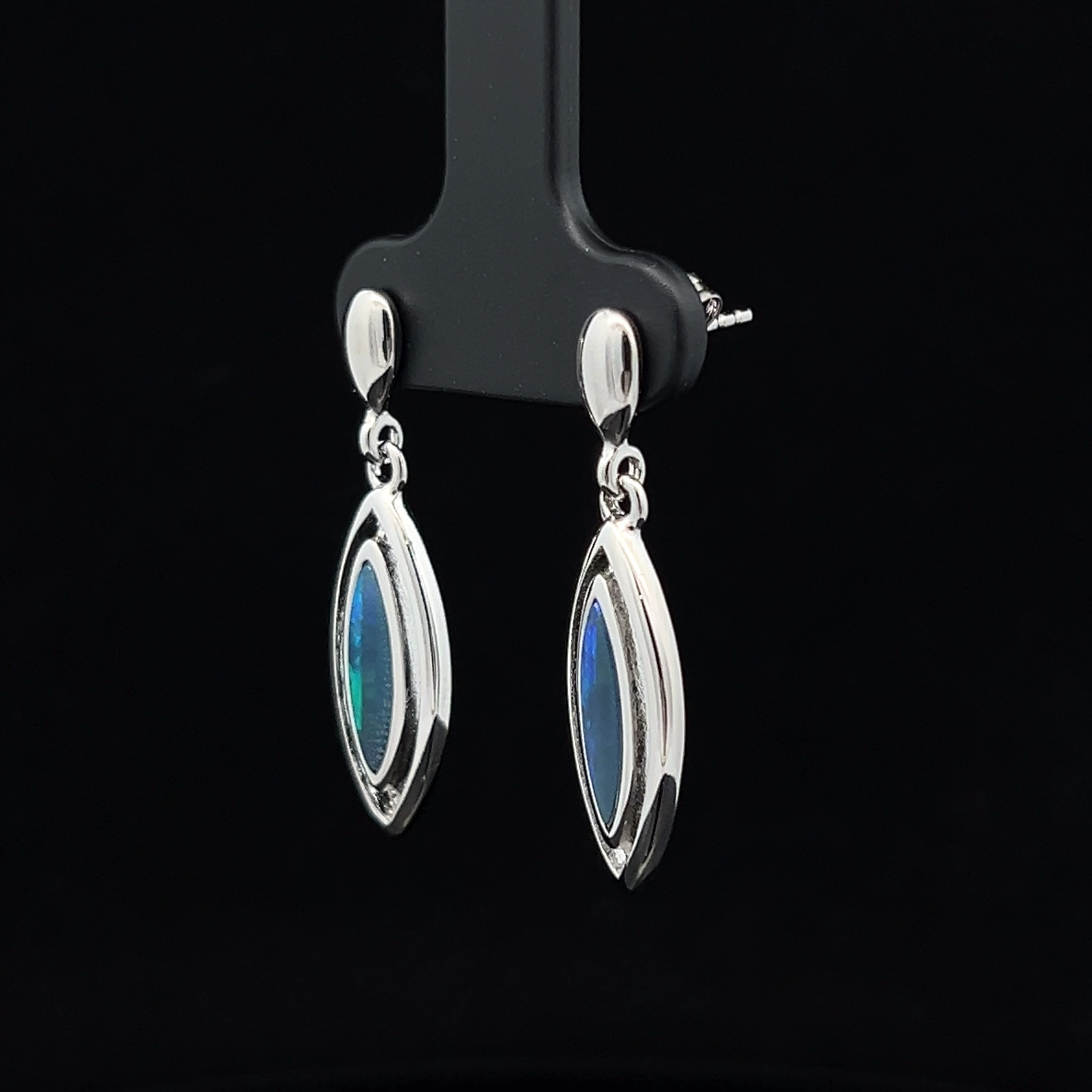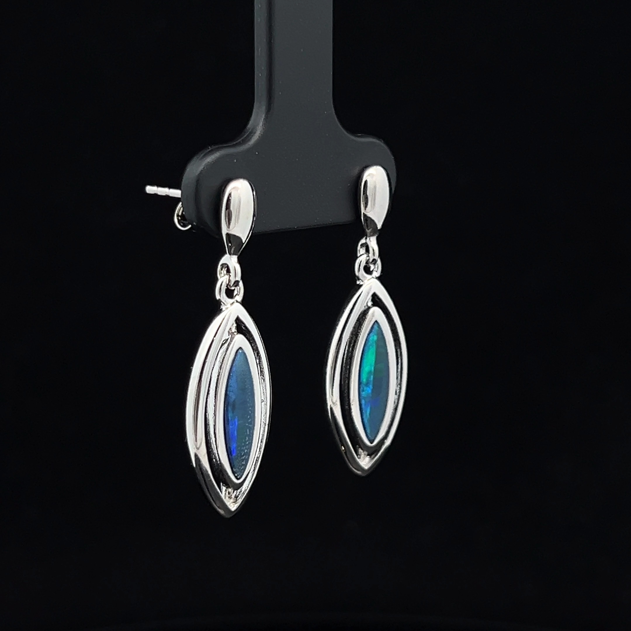Australian Gem Quality Doublet Opal set in Sterling Silver Drop Earrings