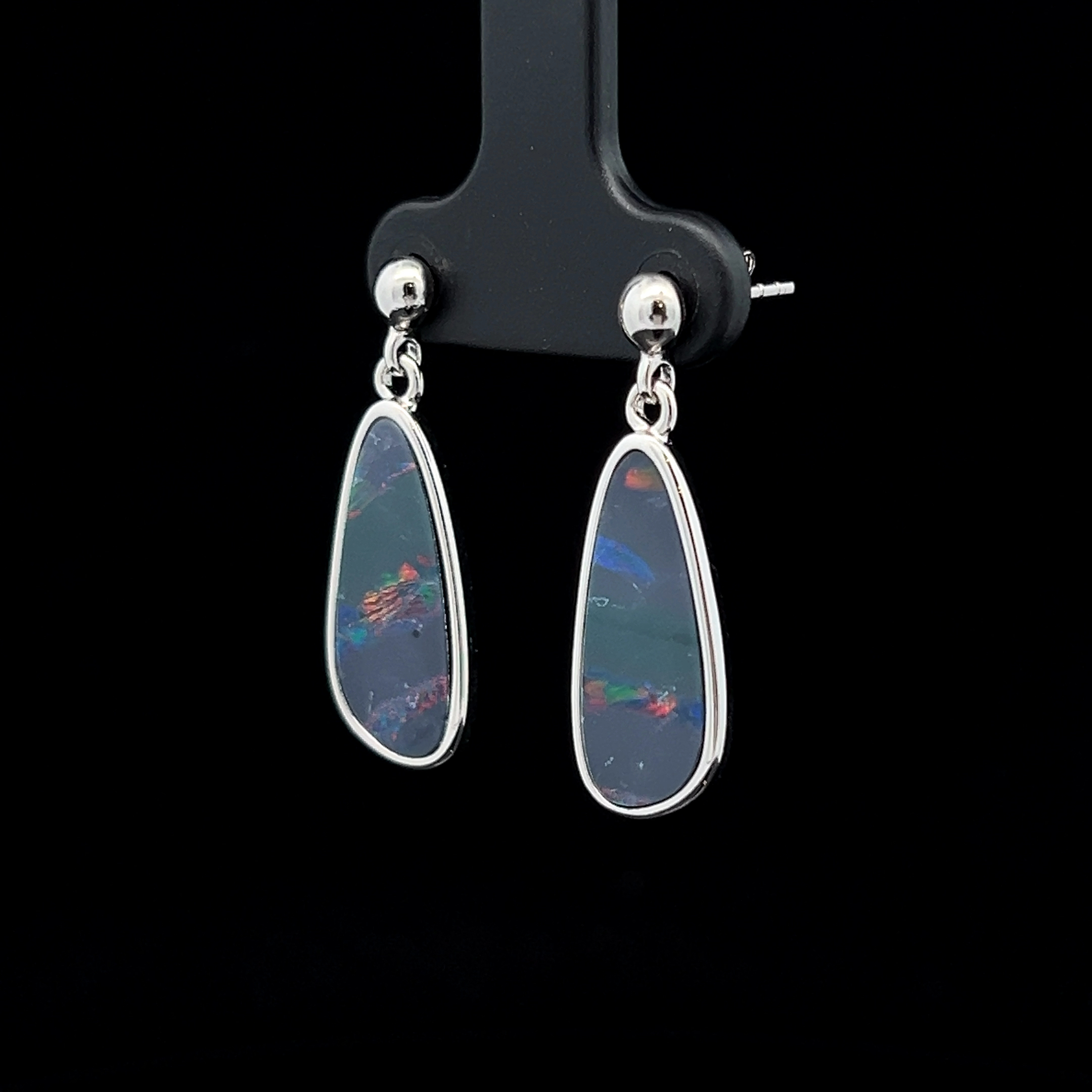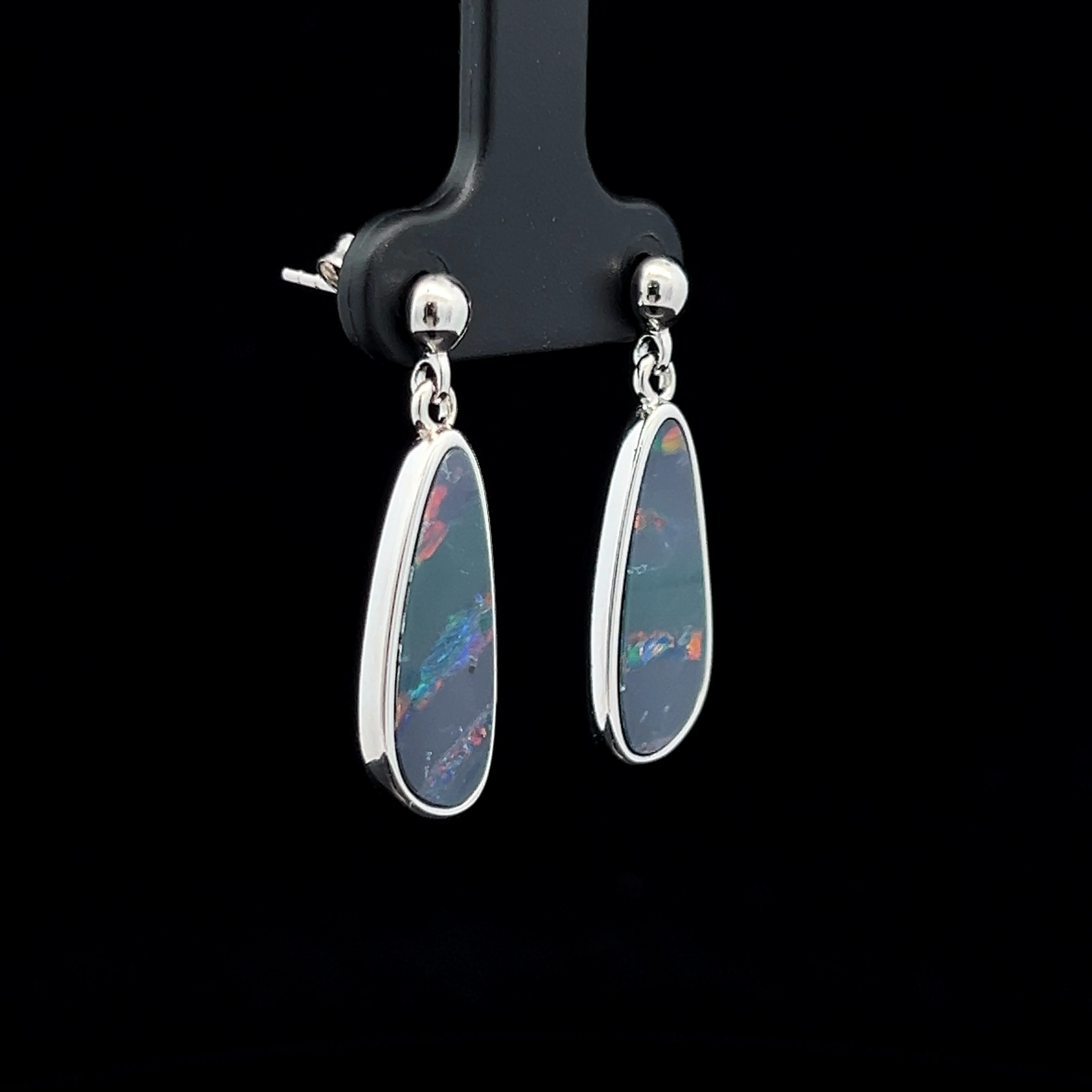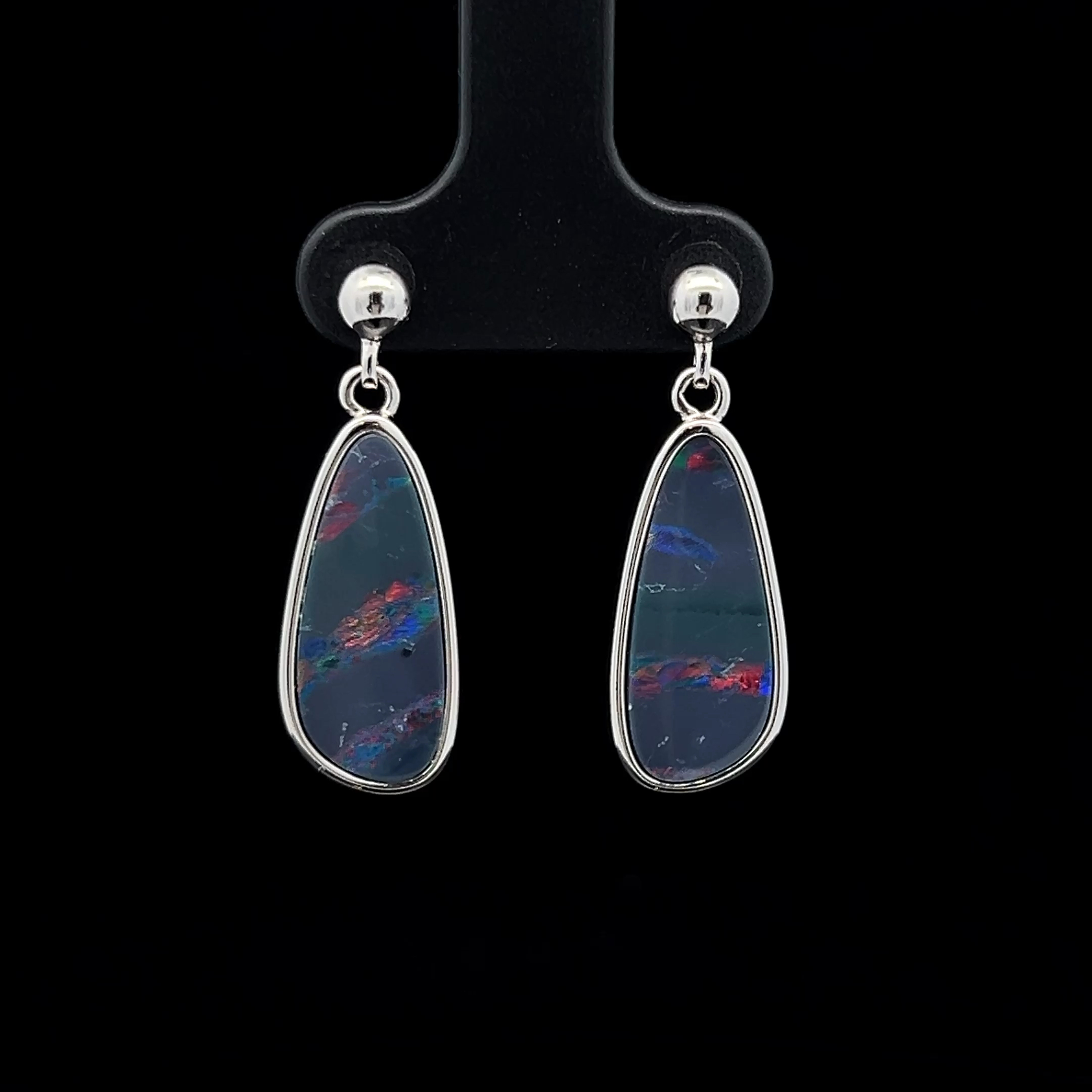 Australian Gem Quality Doublet Opal set in Sterling Silver Drop Earrings