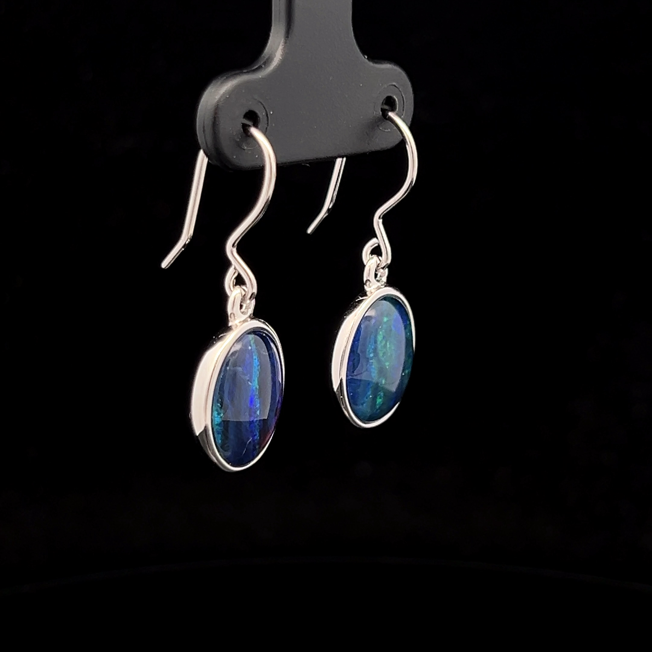 Australian Gem Quality Triplet Opal set in Sterling Silver Hook Earrings