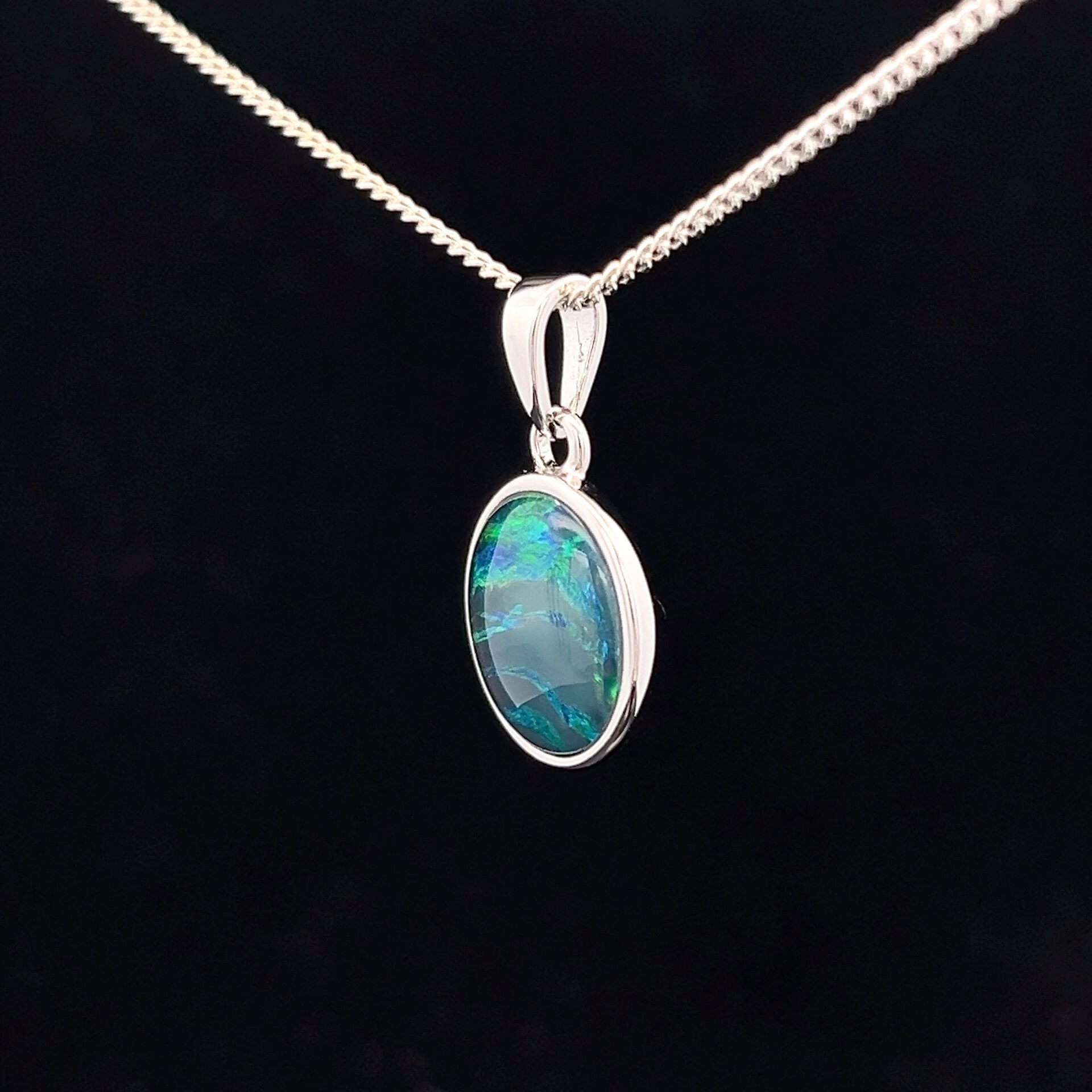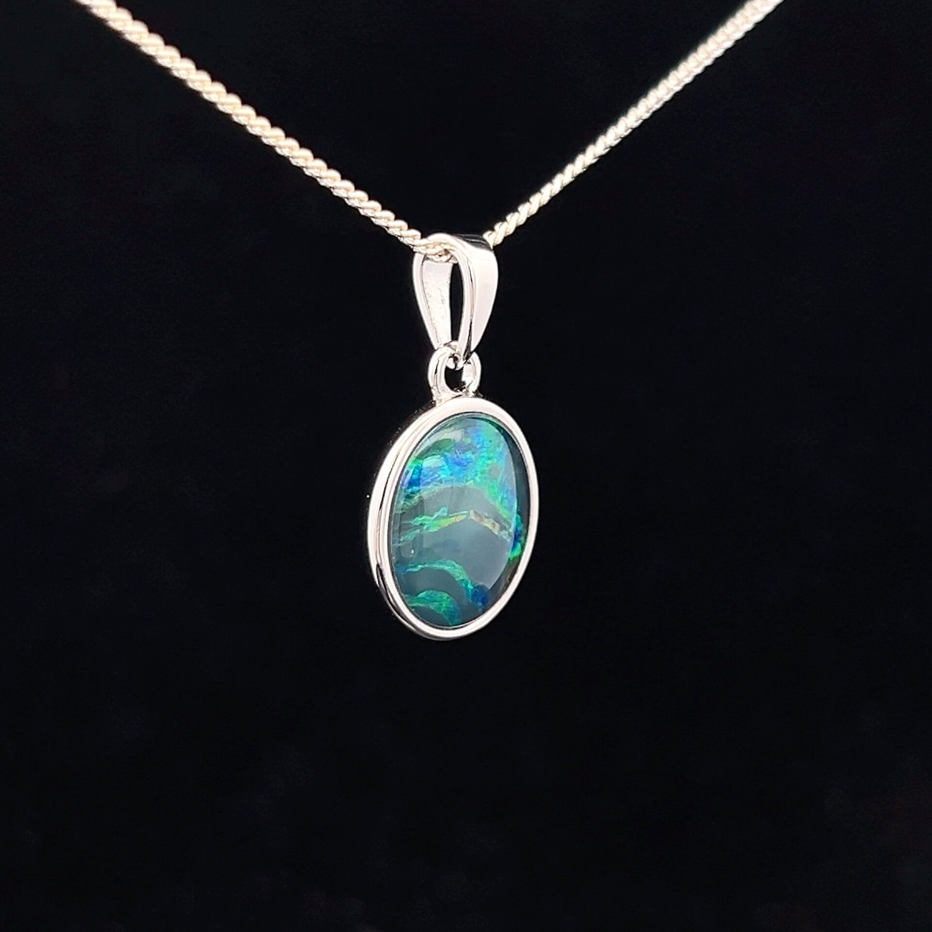 Australian Gem Quality Triplet Opal set in Sterling Silver Pendant
