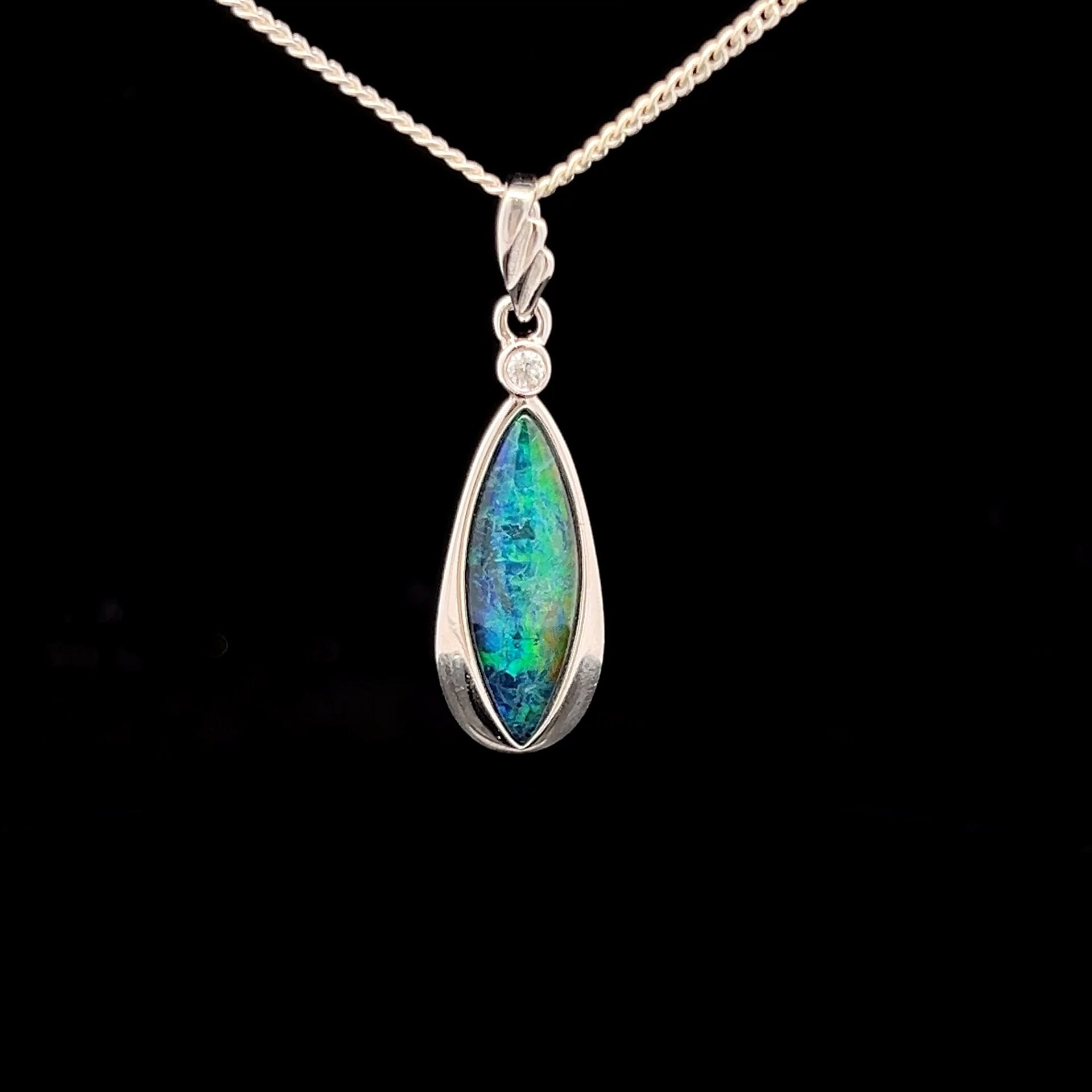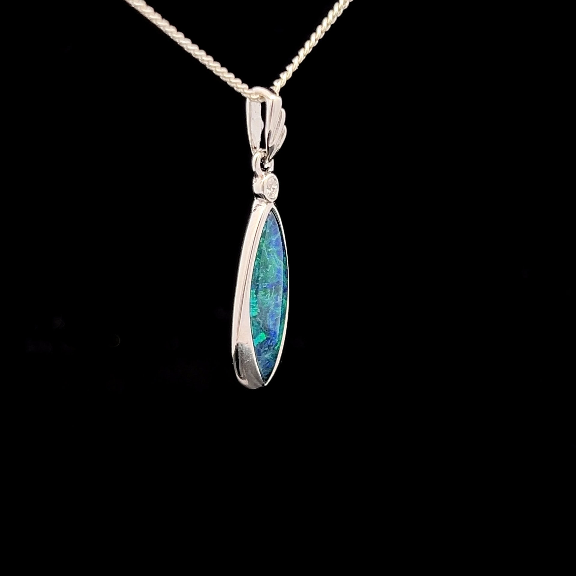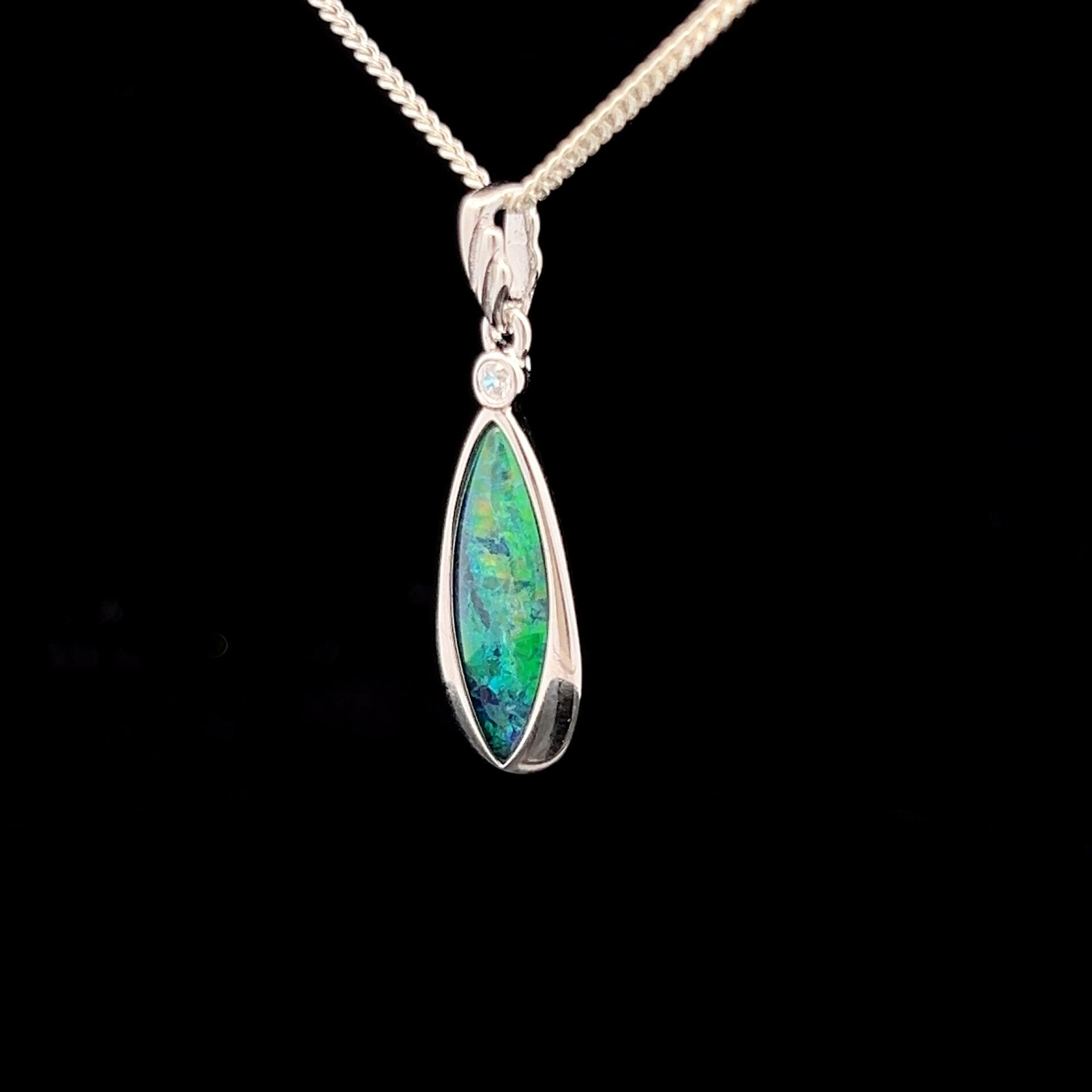 Australian Gem Quality Triplet Opal with Cubic Zirconia set in Sterling Silver Pendant