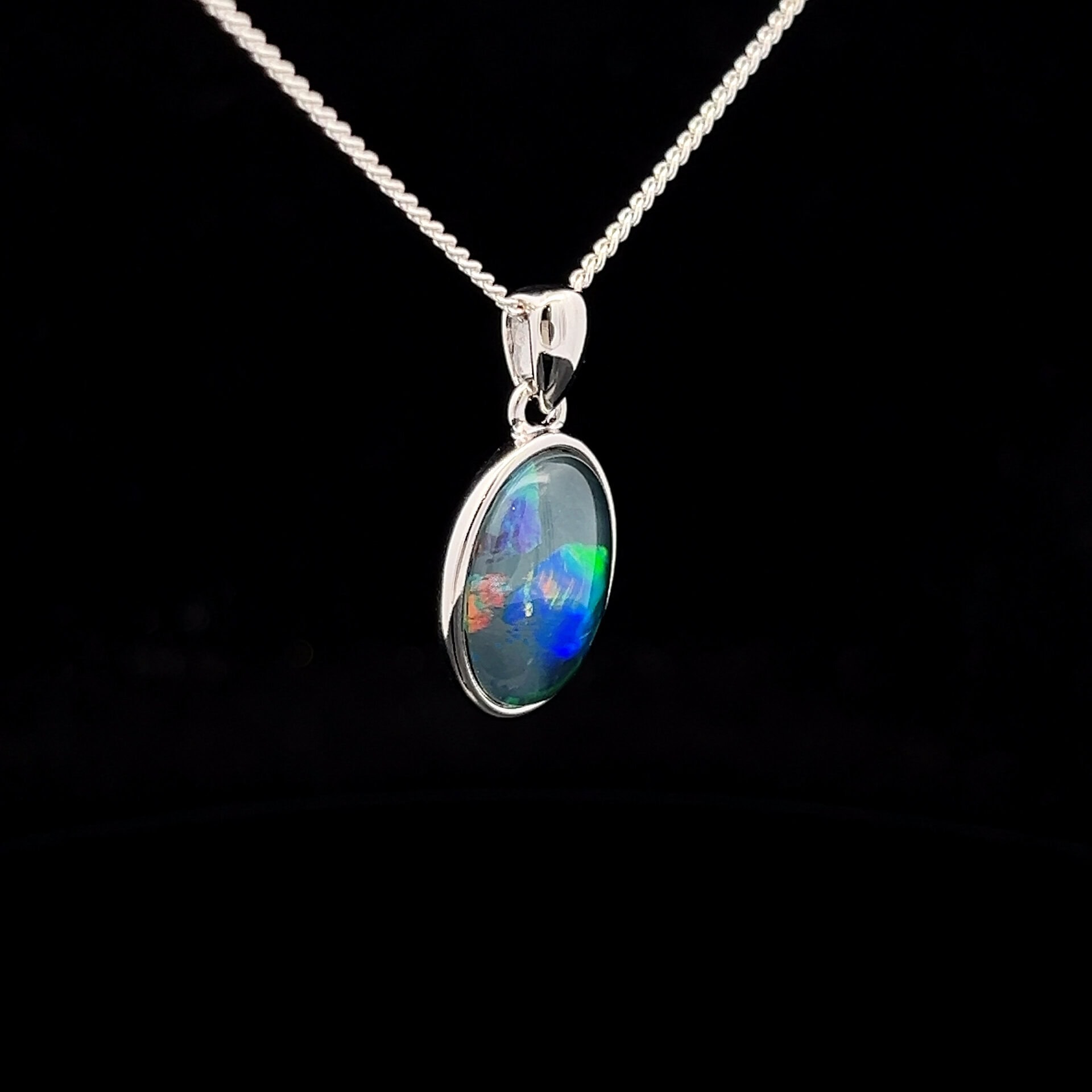 Australian Gem Quality Triplet Opal set in Sterling Silver Pendant