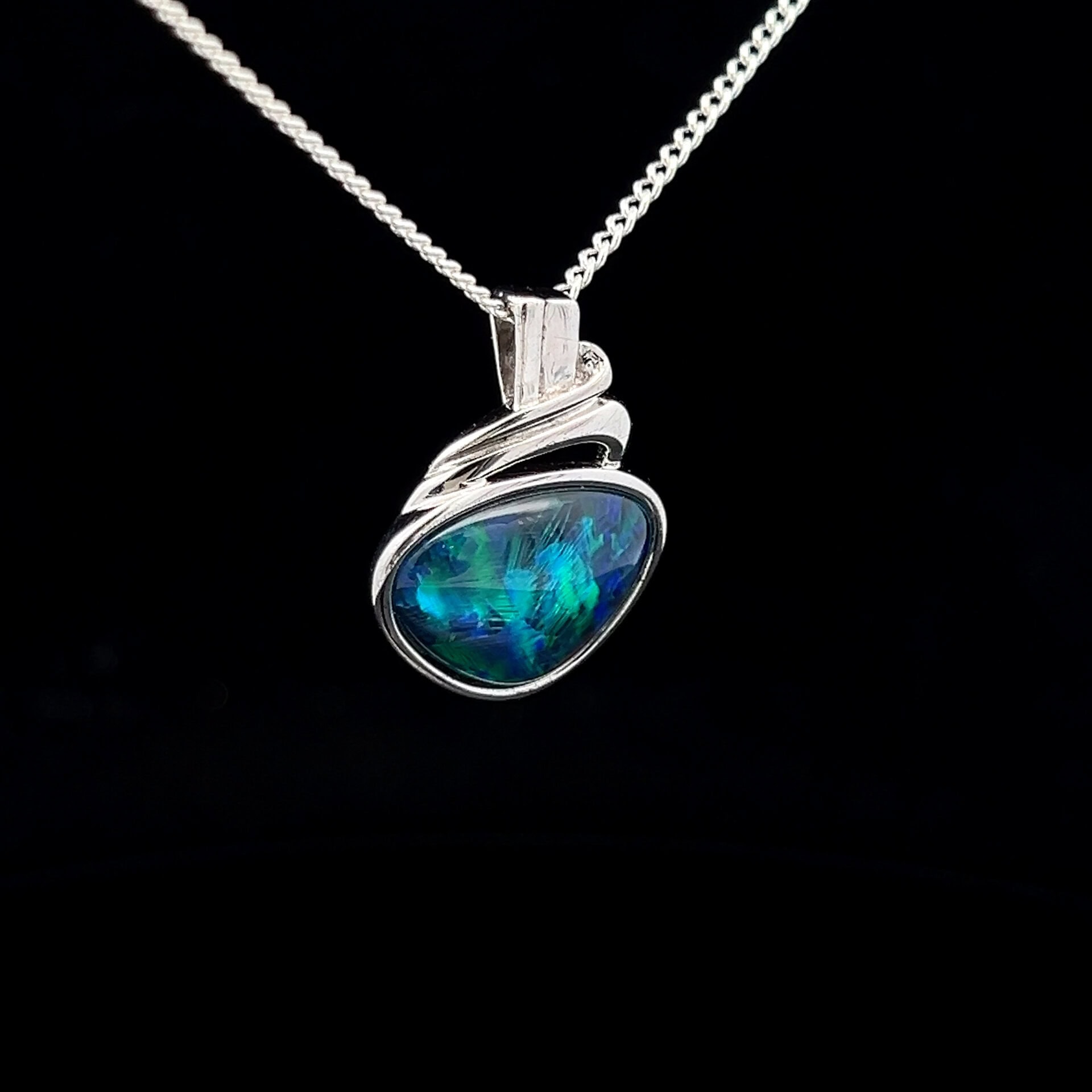 Australian Gem Quality Triplet Opal set in Sterling Silver Pendant