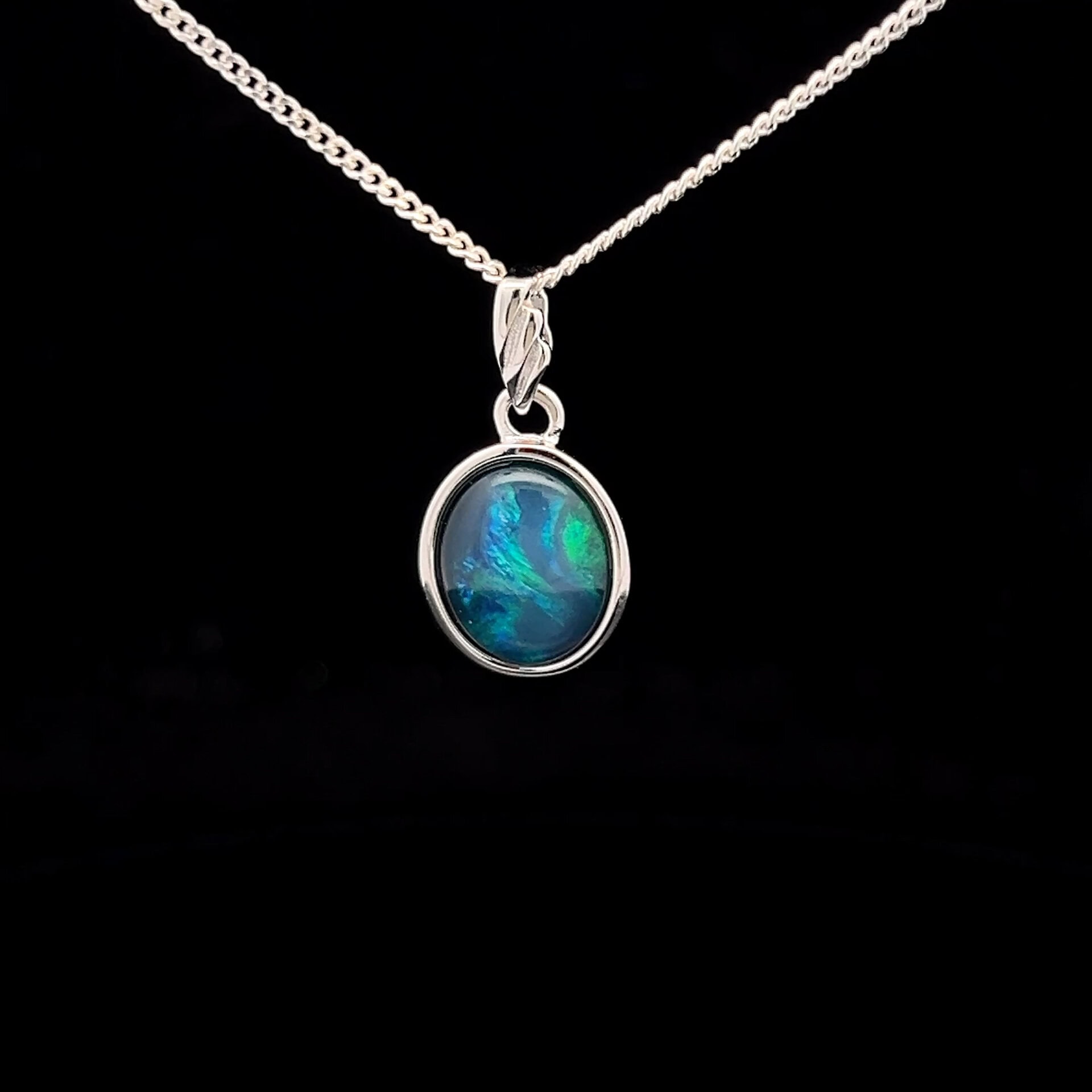 Australian Gem Quality Triplet Opal set in Sterling Silver Pendant