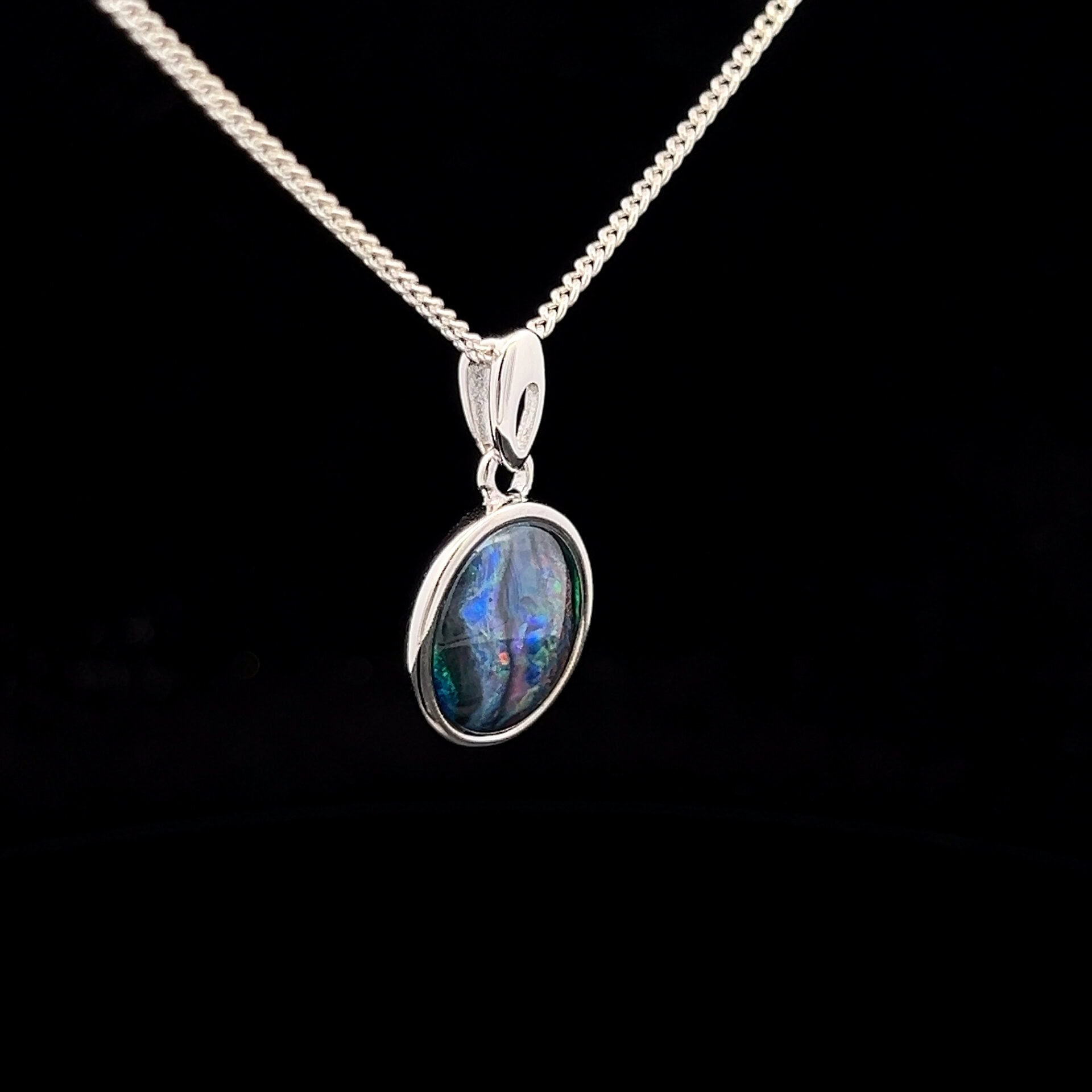 Australian Gem Quality Triplet Opal set in Sterling Silver Pendant