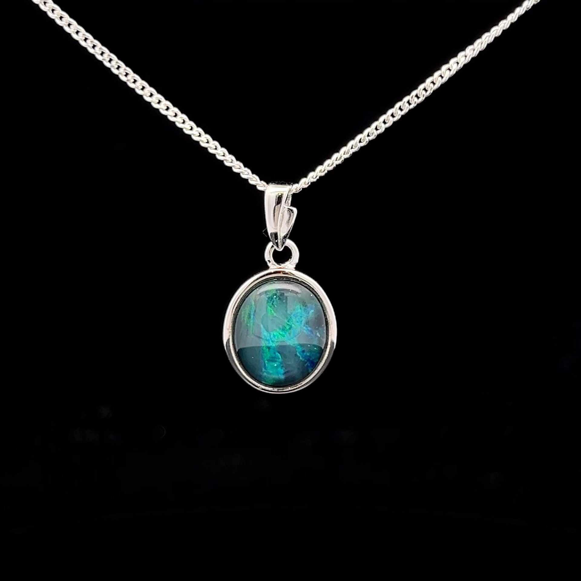 Australian Gem Quality Triplet Opal set in Sterling Silver Pendant