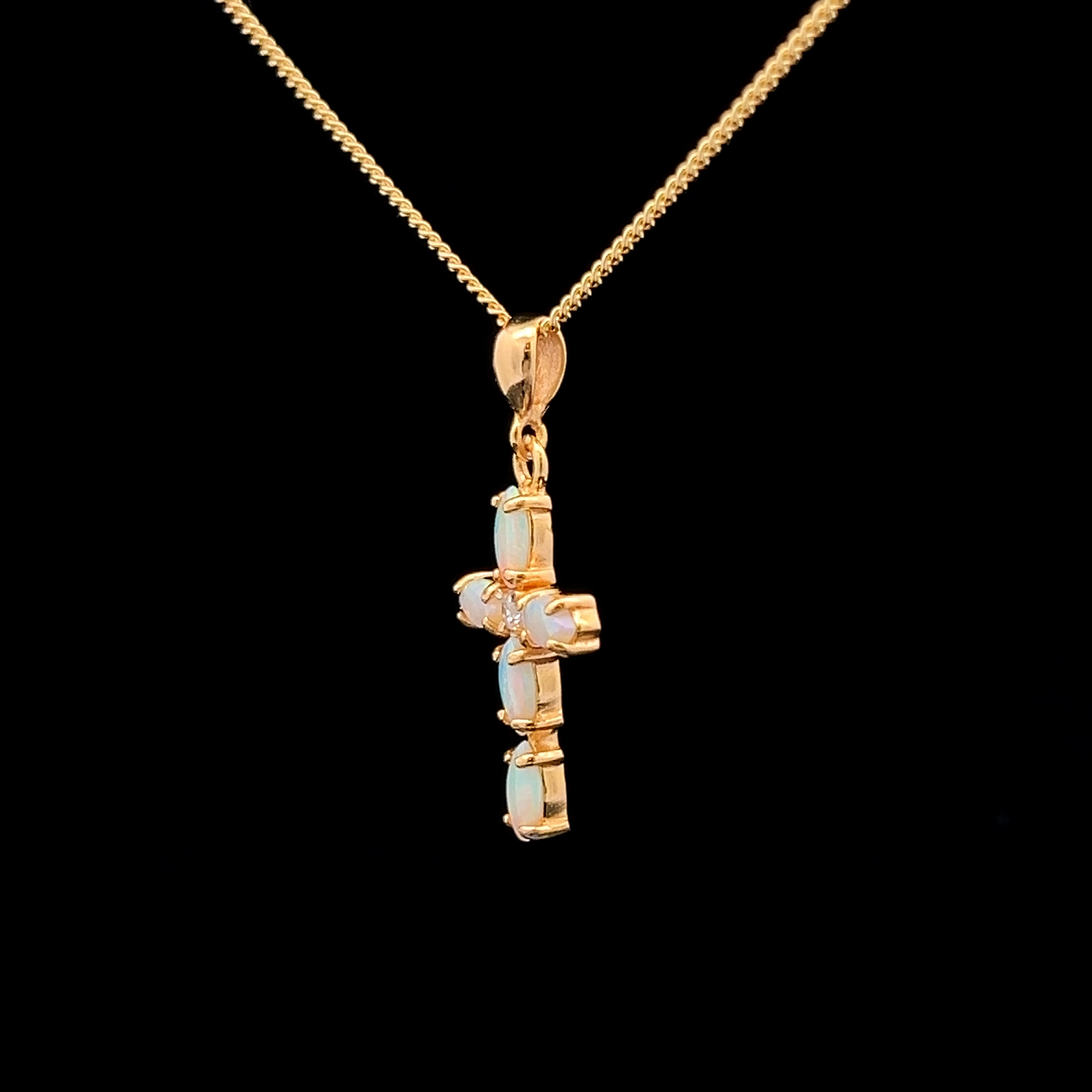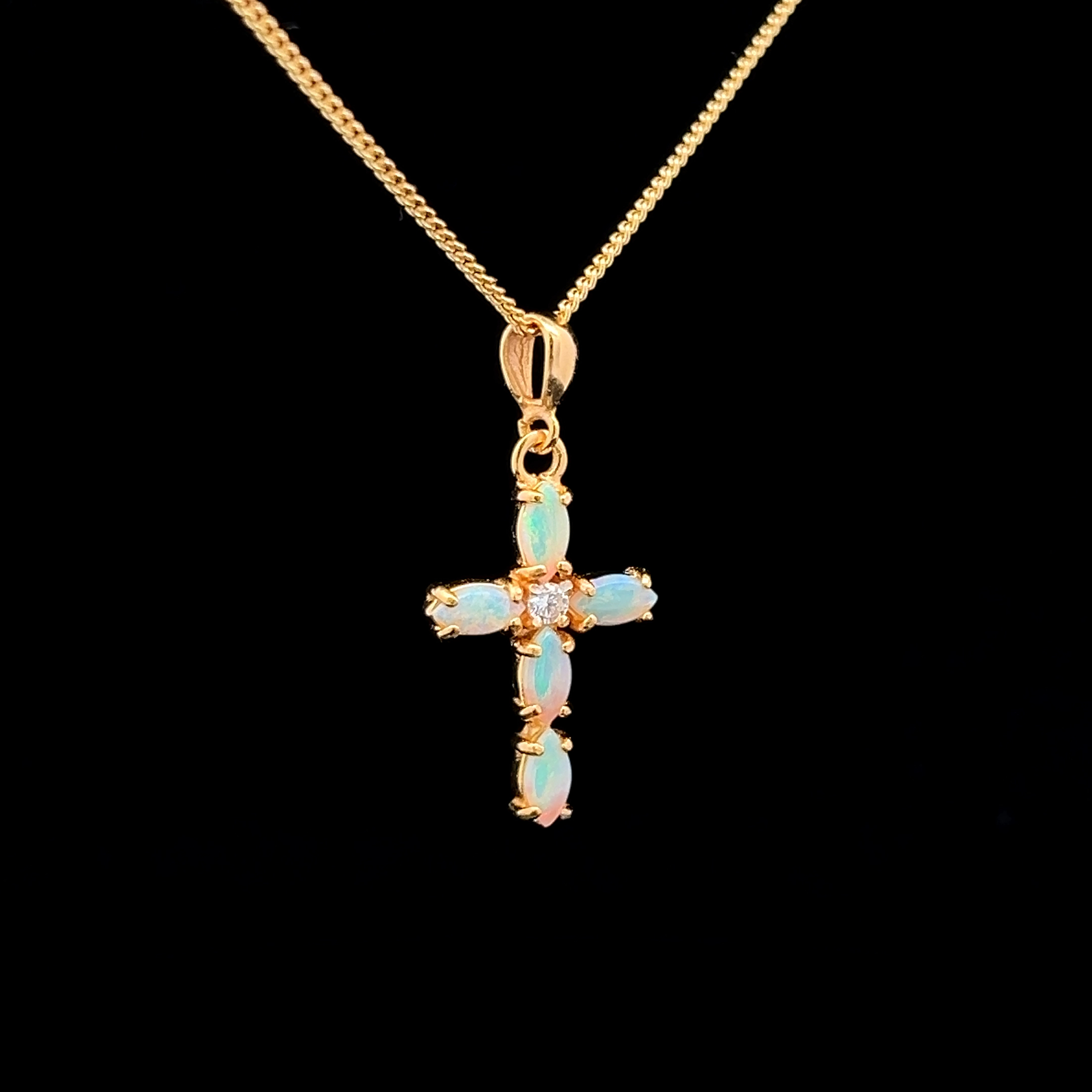 Gold Plated Sterling Silver Solid Light Opal Cross Pendant 109985