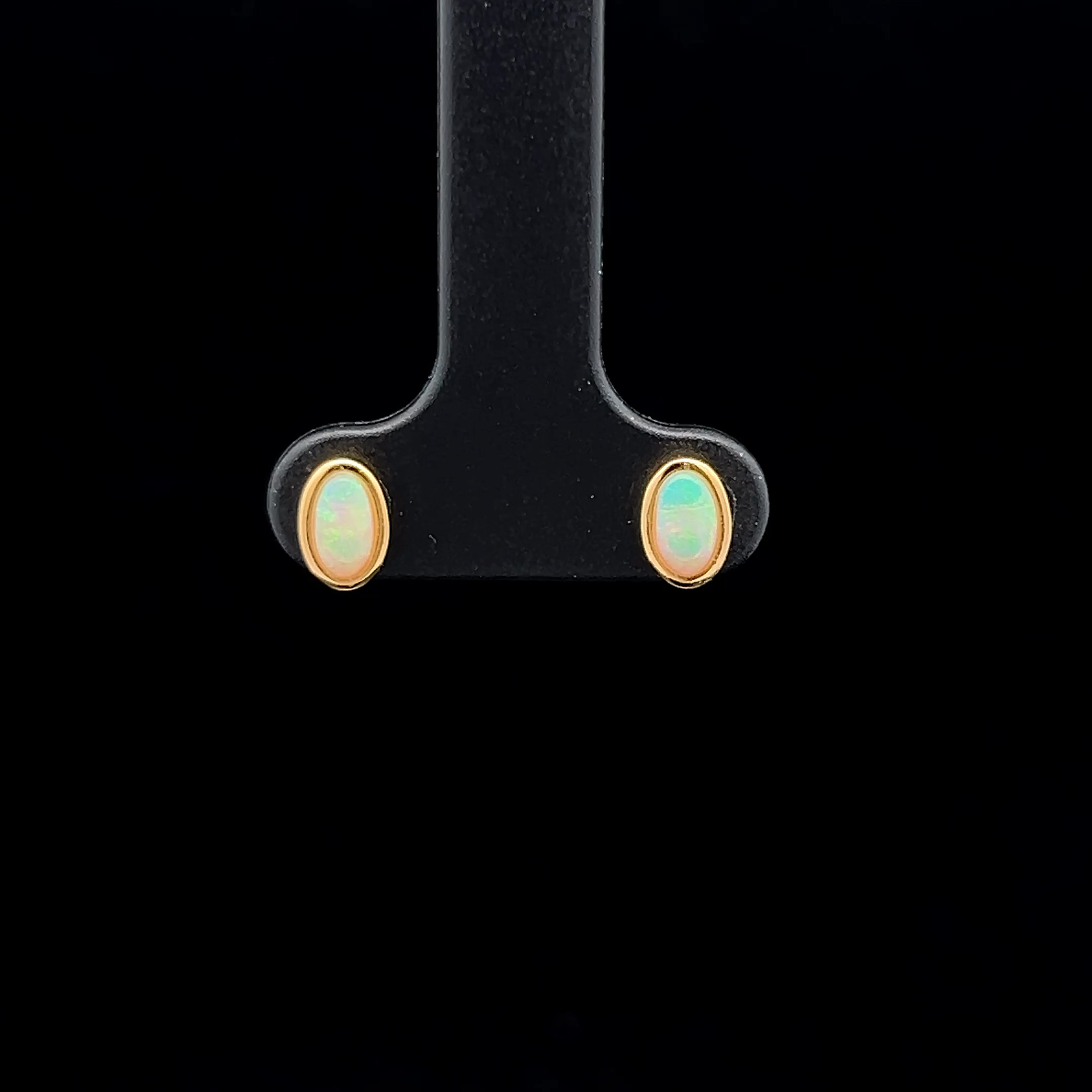 South Australian Solid Crystal Opal set in Gold Plated Sterling Silver Stud Earrings
