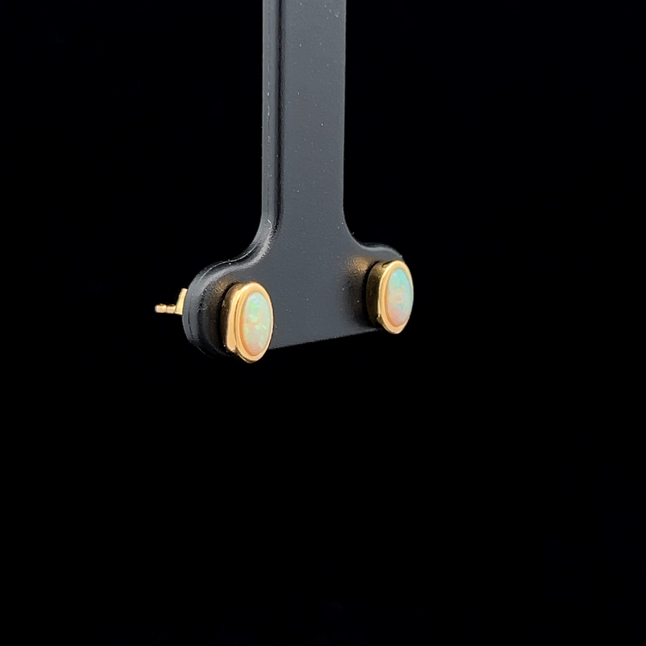 Gold Plated Sterling Silver Solid Light Opal Stud Earrings 161876