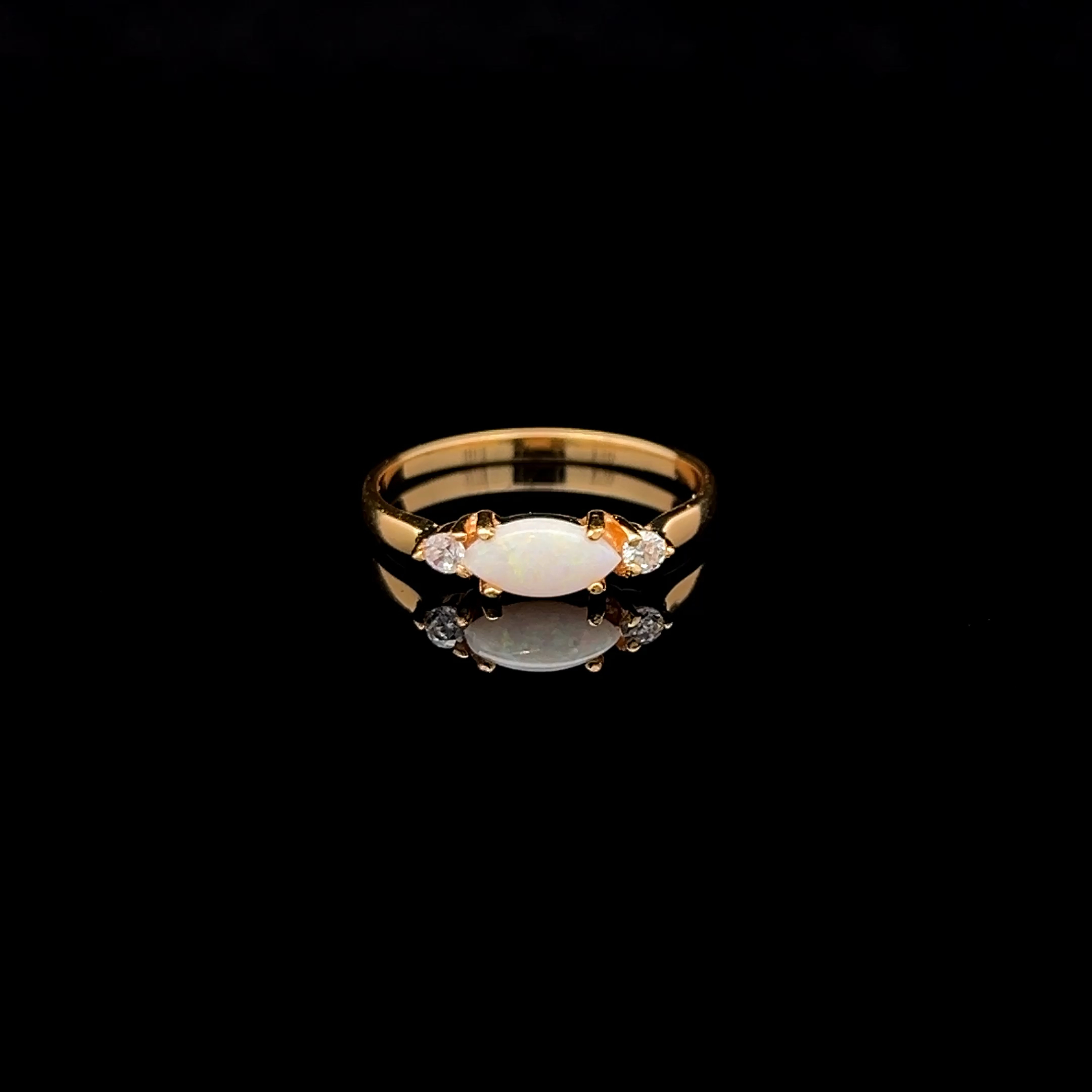 Australian Solid Opal Marquise Ring with Cubic Zirconias Set in Gold Plated Sterling Silver