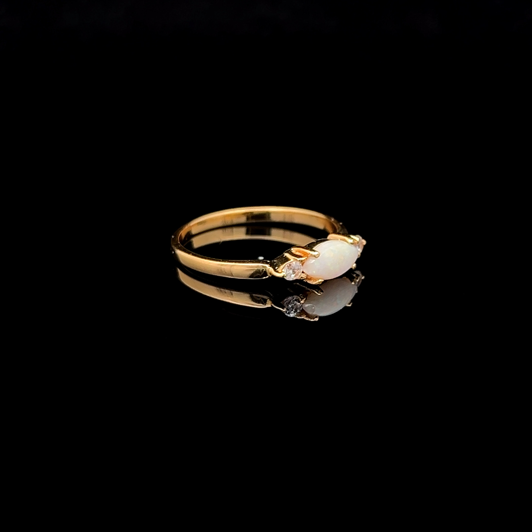 Gold Plated Sterling Silver Solid Light Opal Ring with Cubic Zirconias 143863