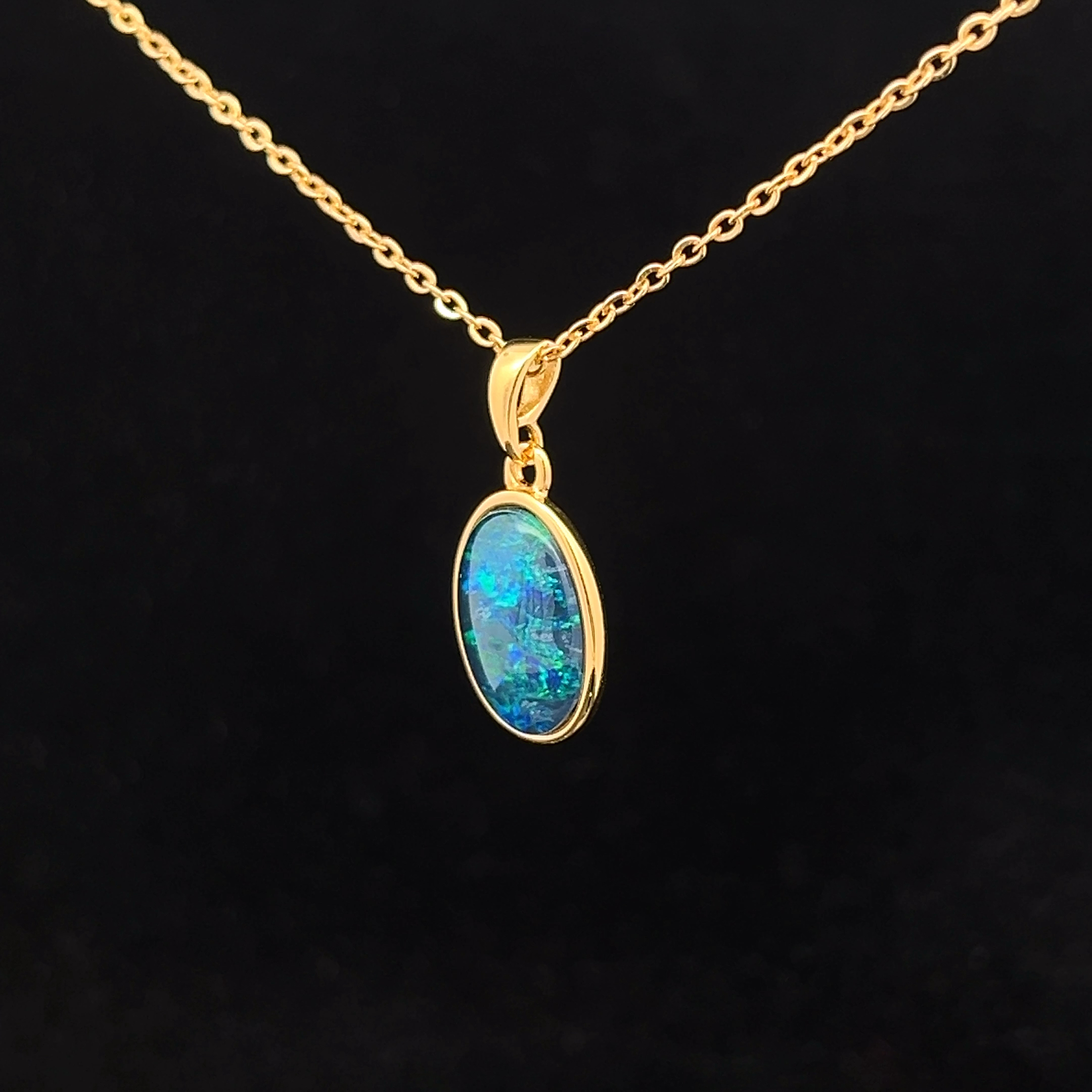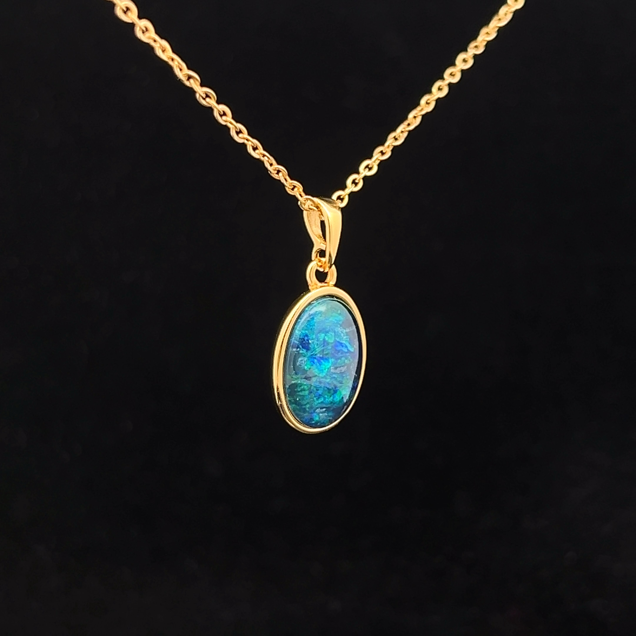 Australian Gem Quality Triplet Opal set in Gold Plated Sterling Silver Pendant