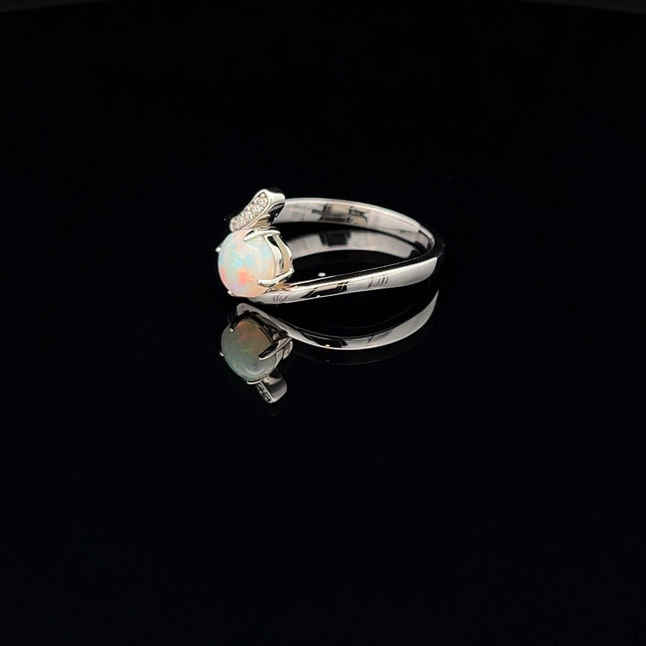 Coober Pedy Solid Crystal Opal & Diamond Ring set in 18K White Gold