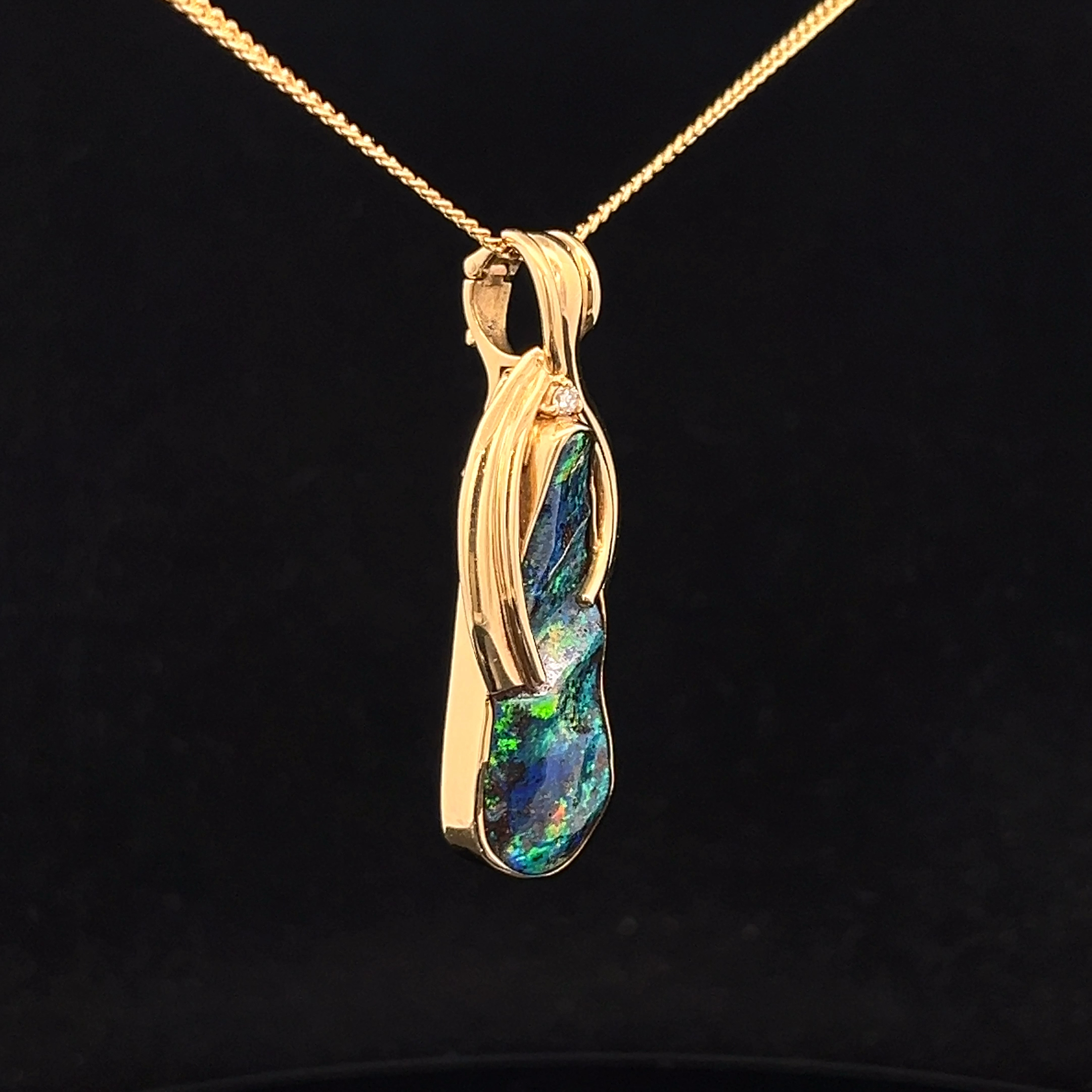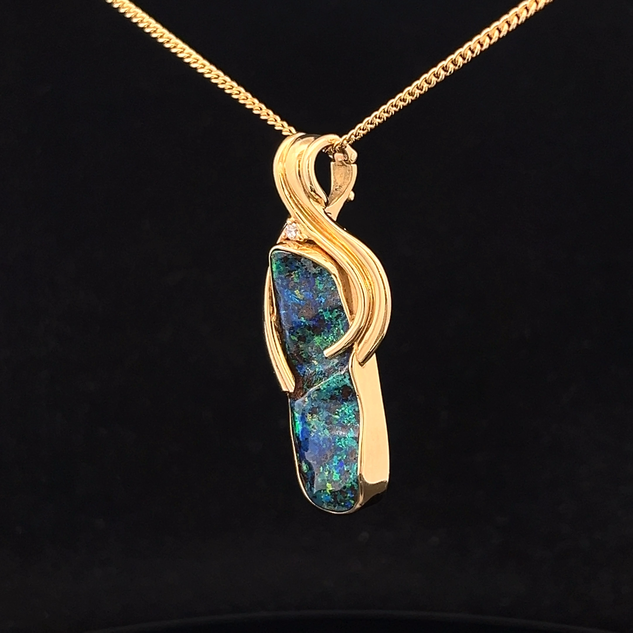 Queensland Solid Boulder Opal & Diamond Pendant Enhancer set in 18K Yellow Gold