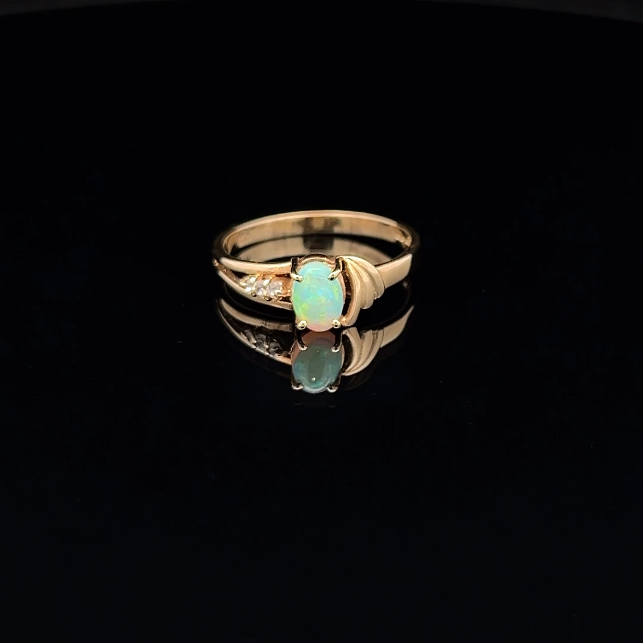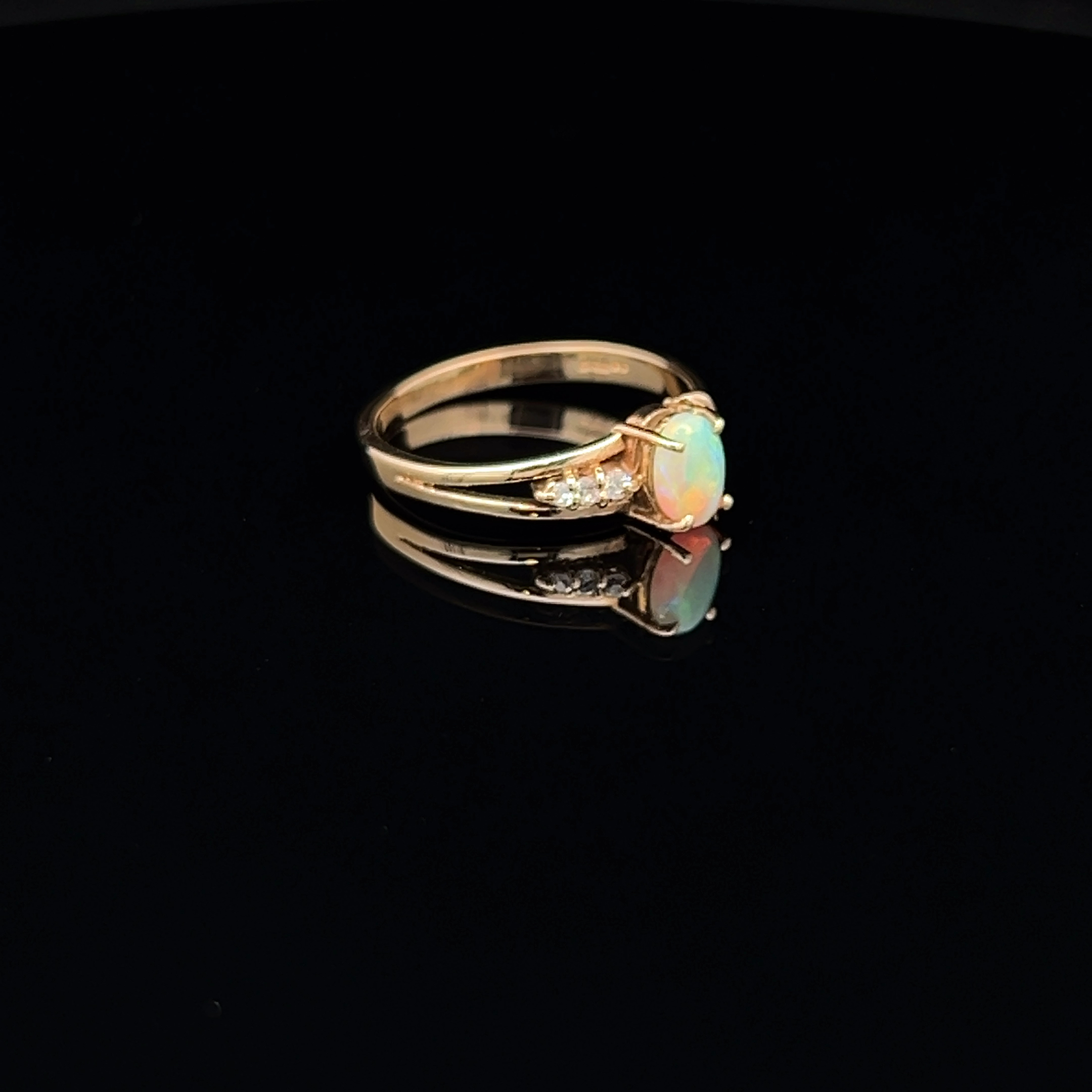 Coober Pedy Solid Crystal Opal & Diamond Ring set in 9K Yellow Gold