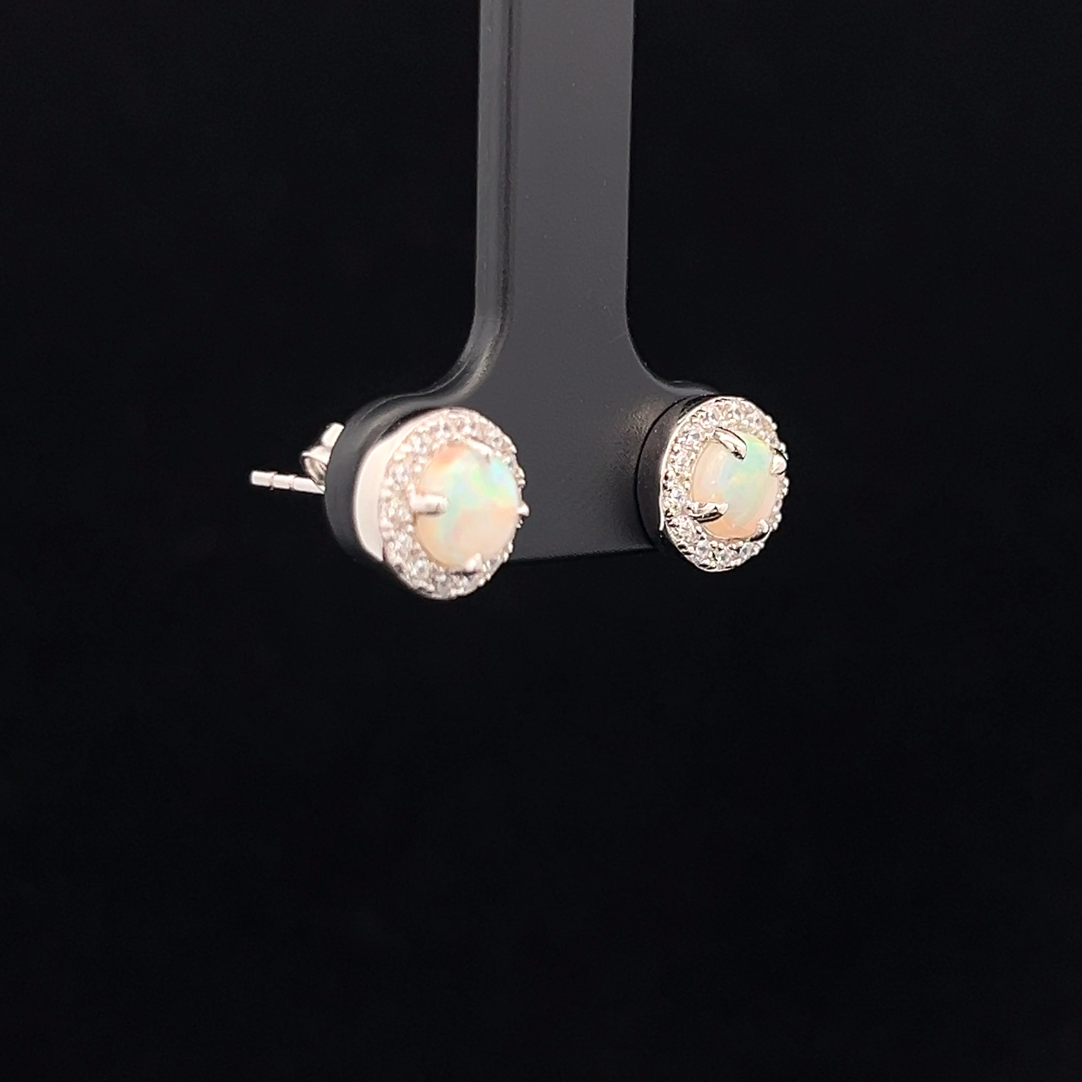 South Australian Solid Light Opal and Cubic Zirconias set in Sterling Silver Stud Earrings