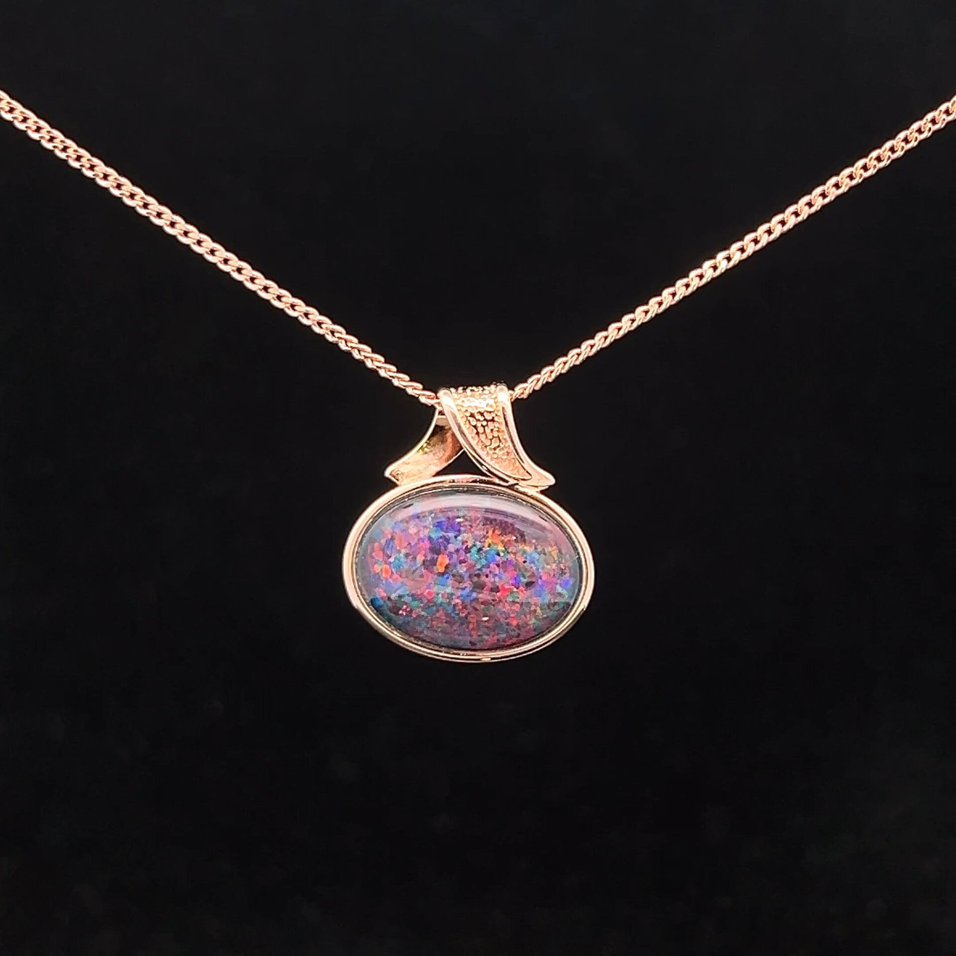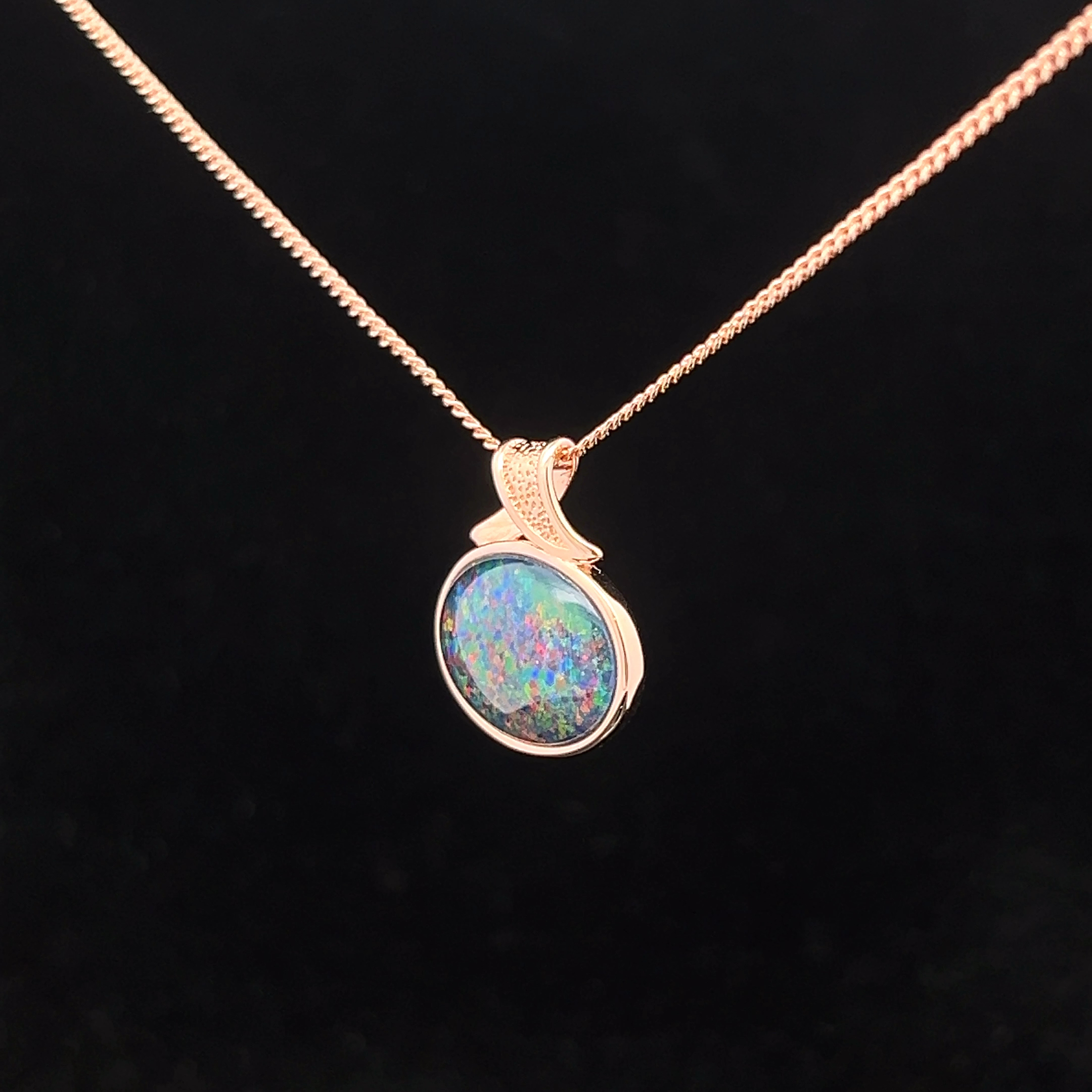 Australian Gem Quality Triplet Opal set in Rose Gold Plated Sterling Silver Pendant