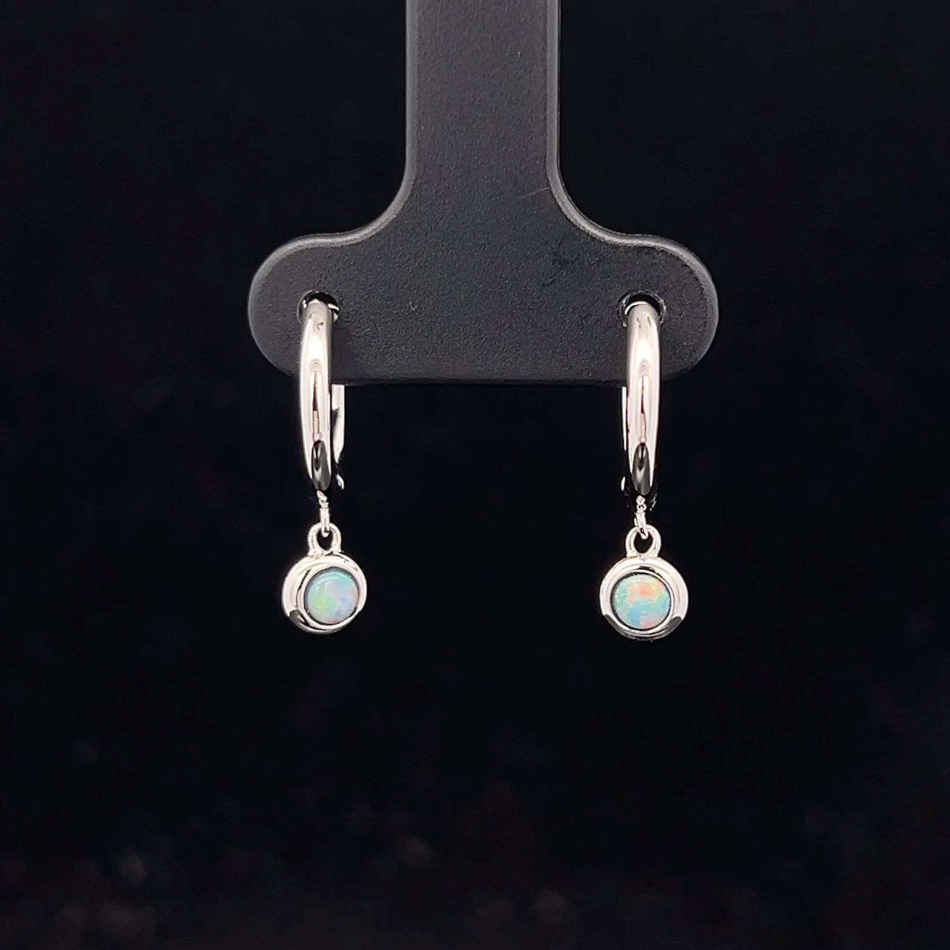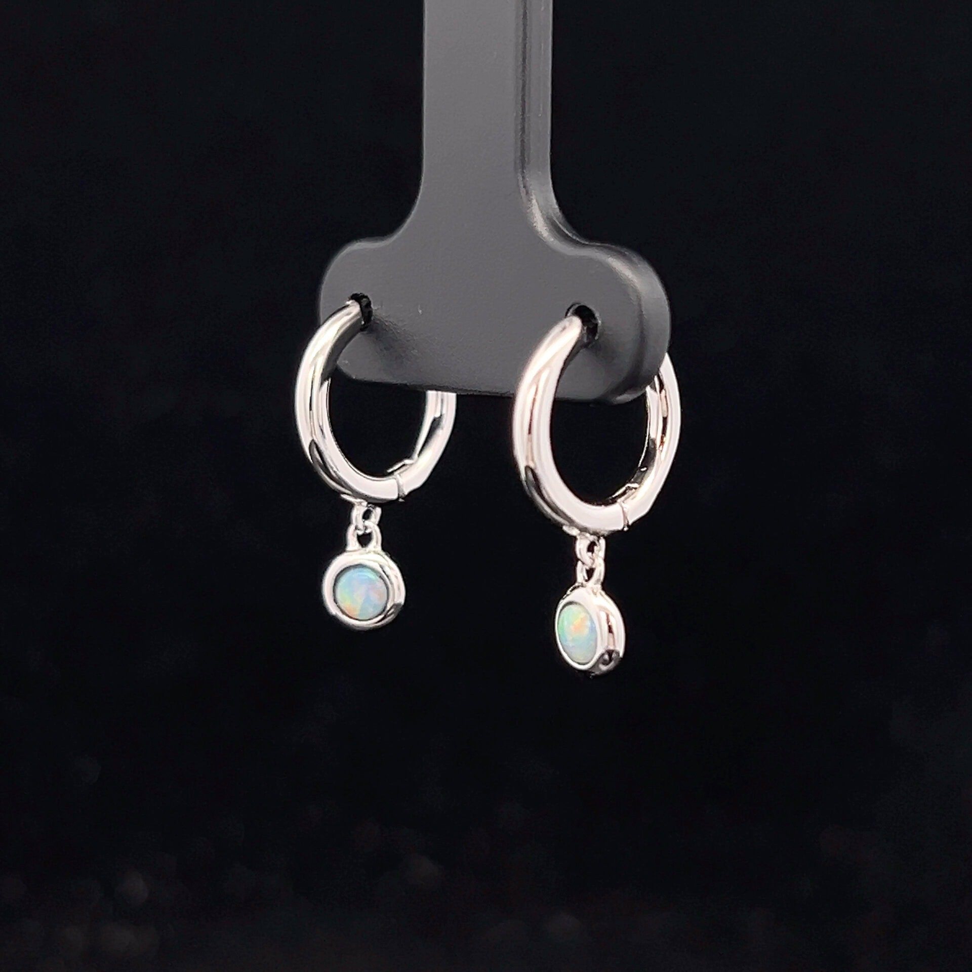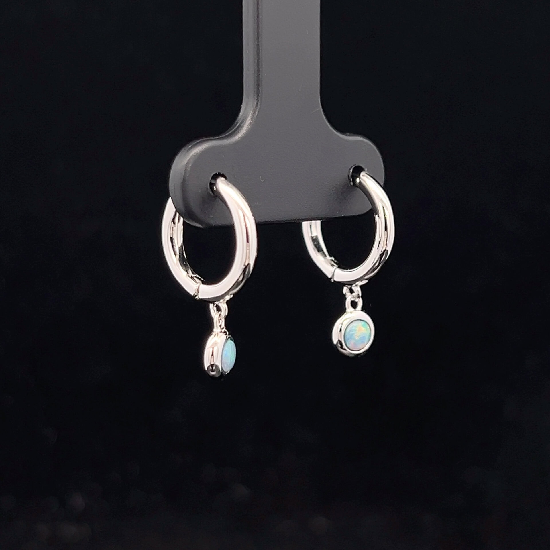 Sterling Silver 3mm Huggie Round Drop Earrings with Solid Light Opal 193525