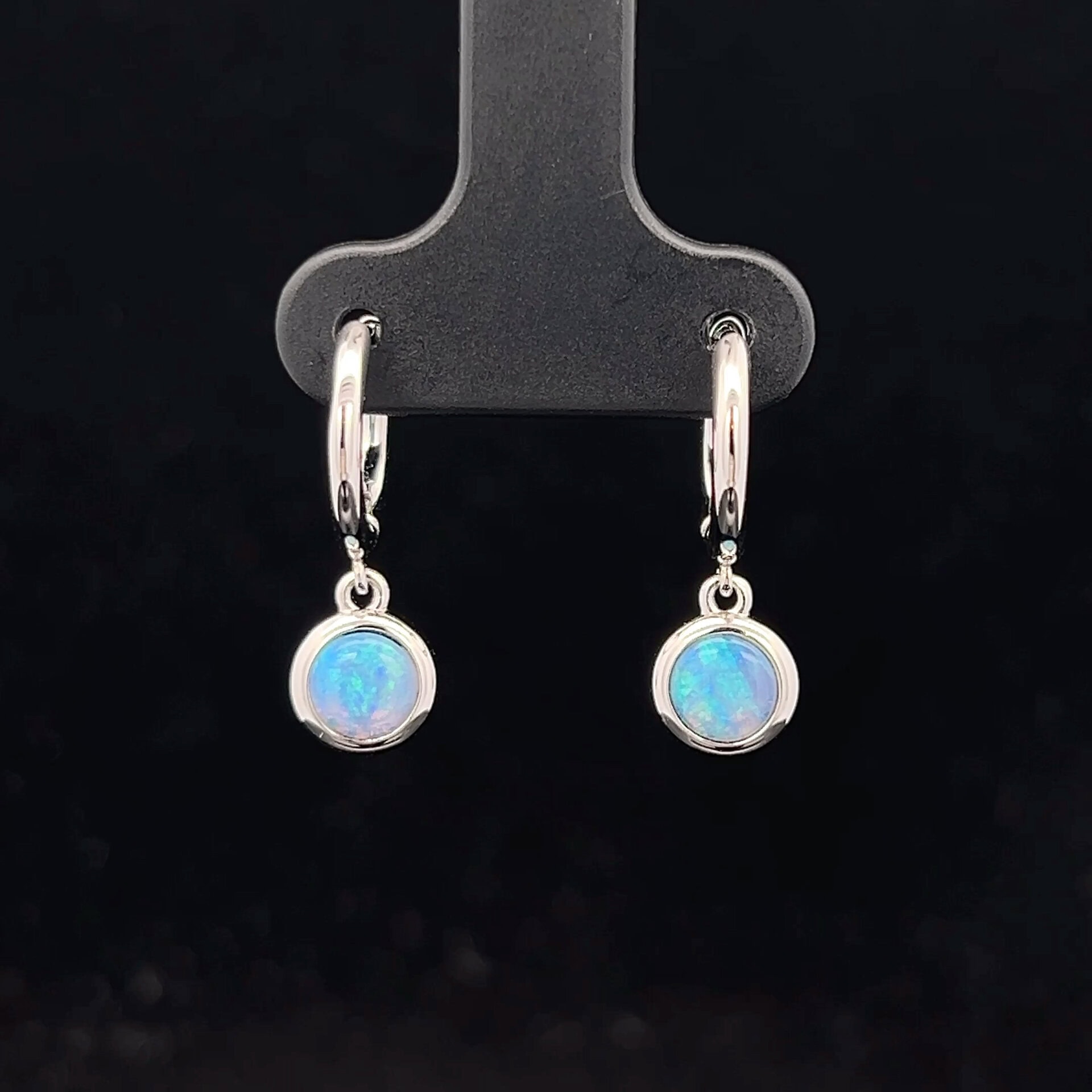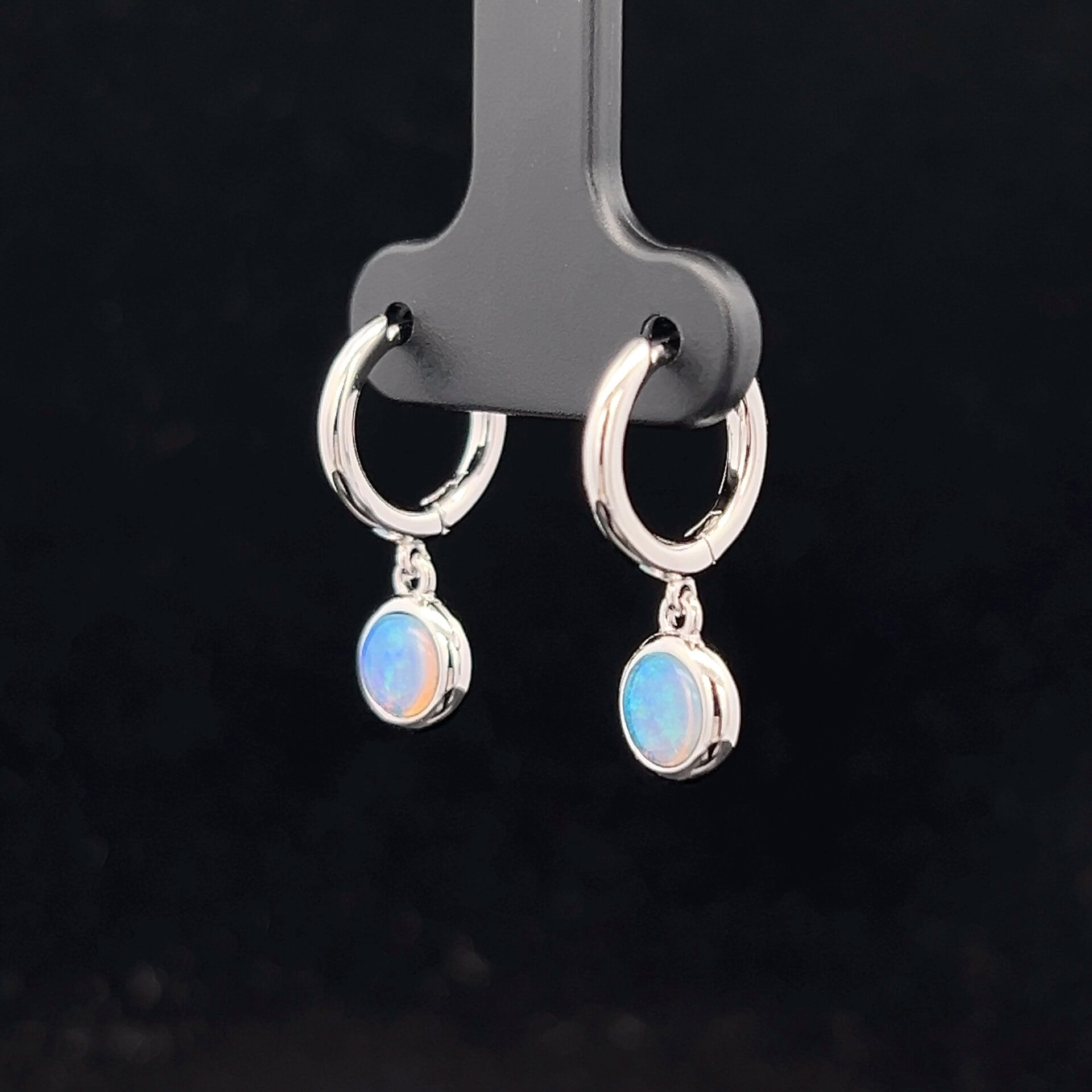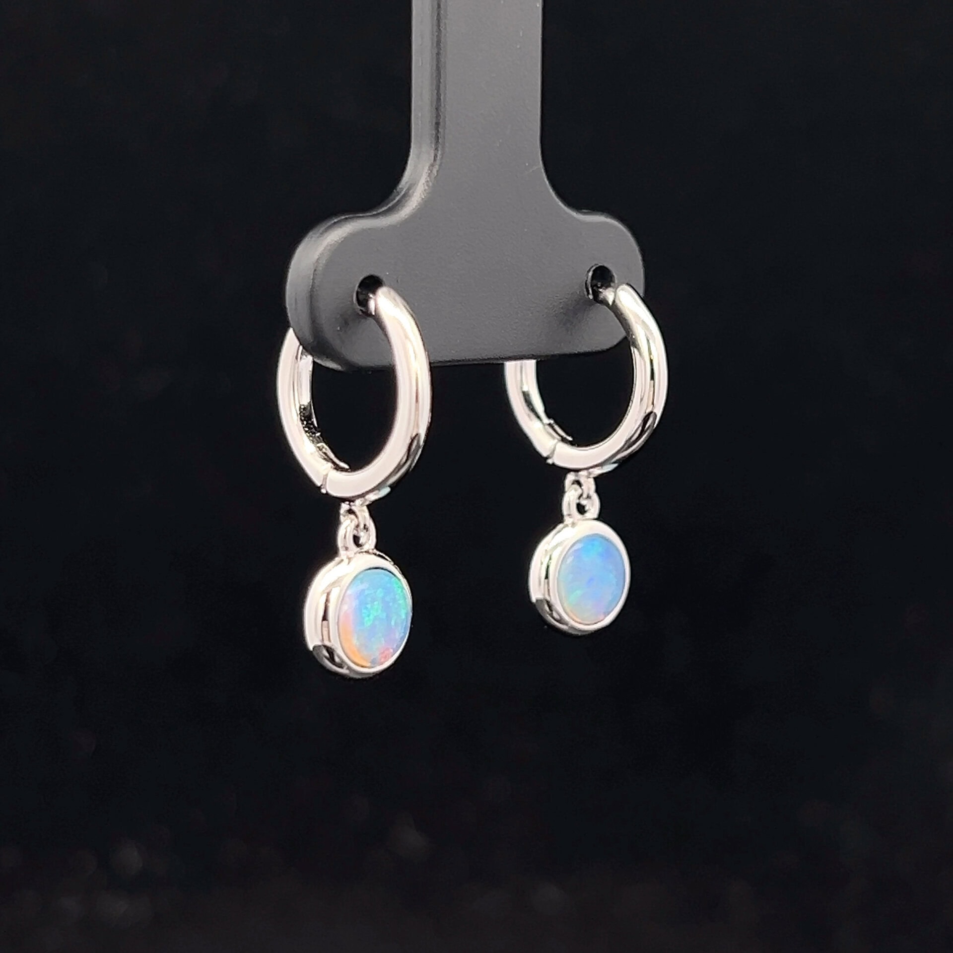 Sterling Silver 5mm Huggie Round Drop Earrings with Solid Light Opal 193527