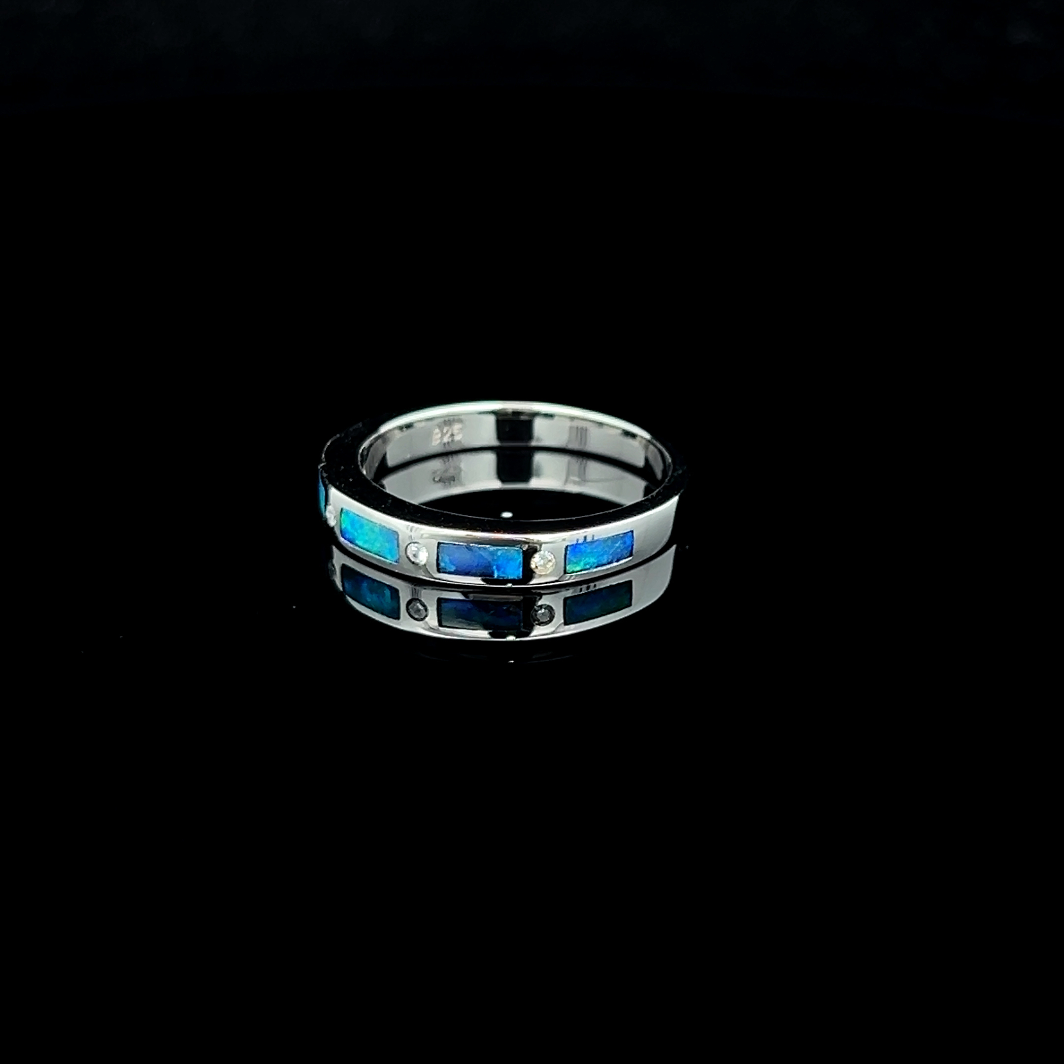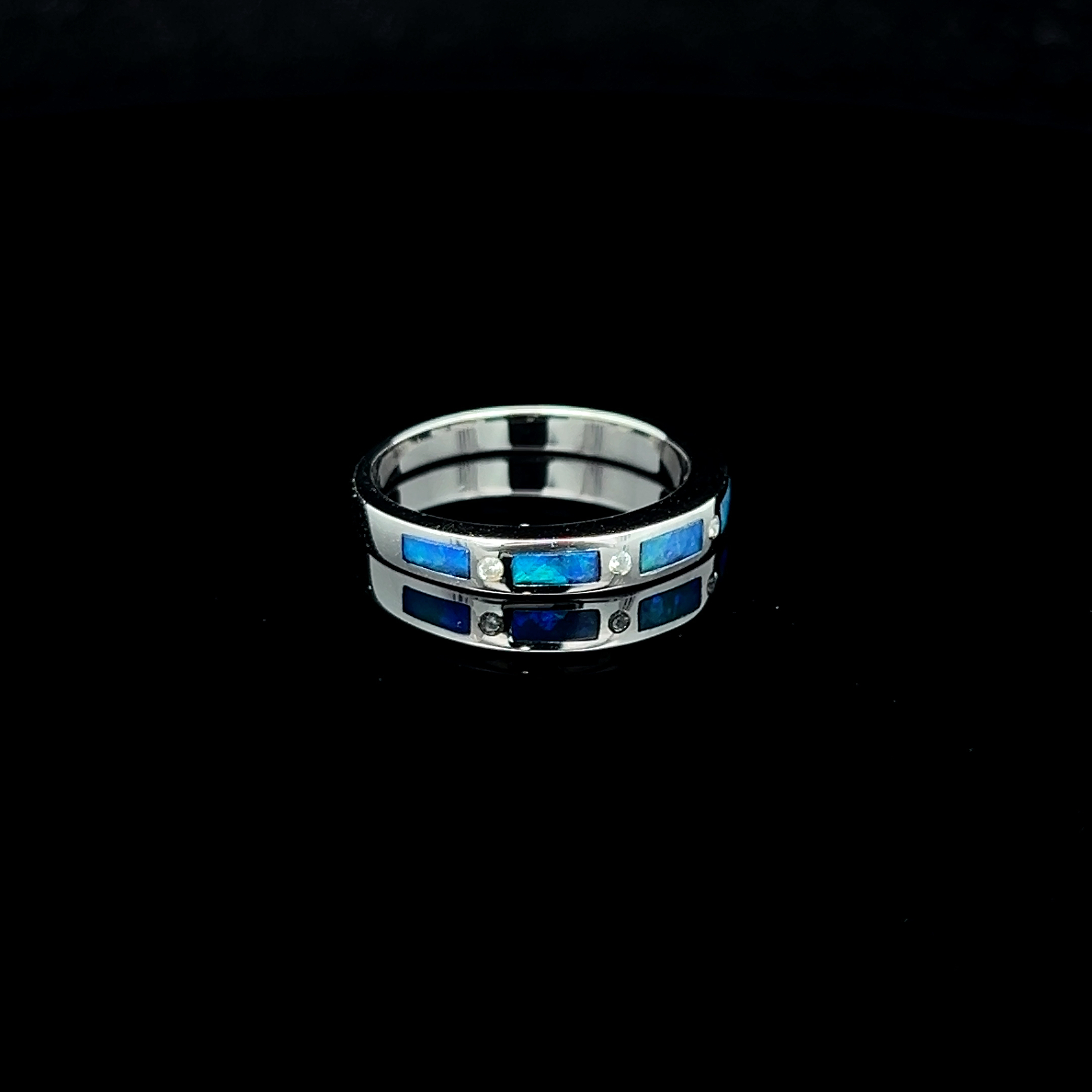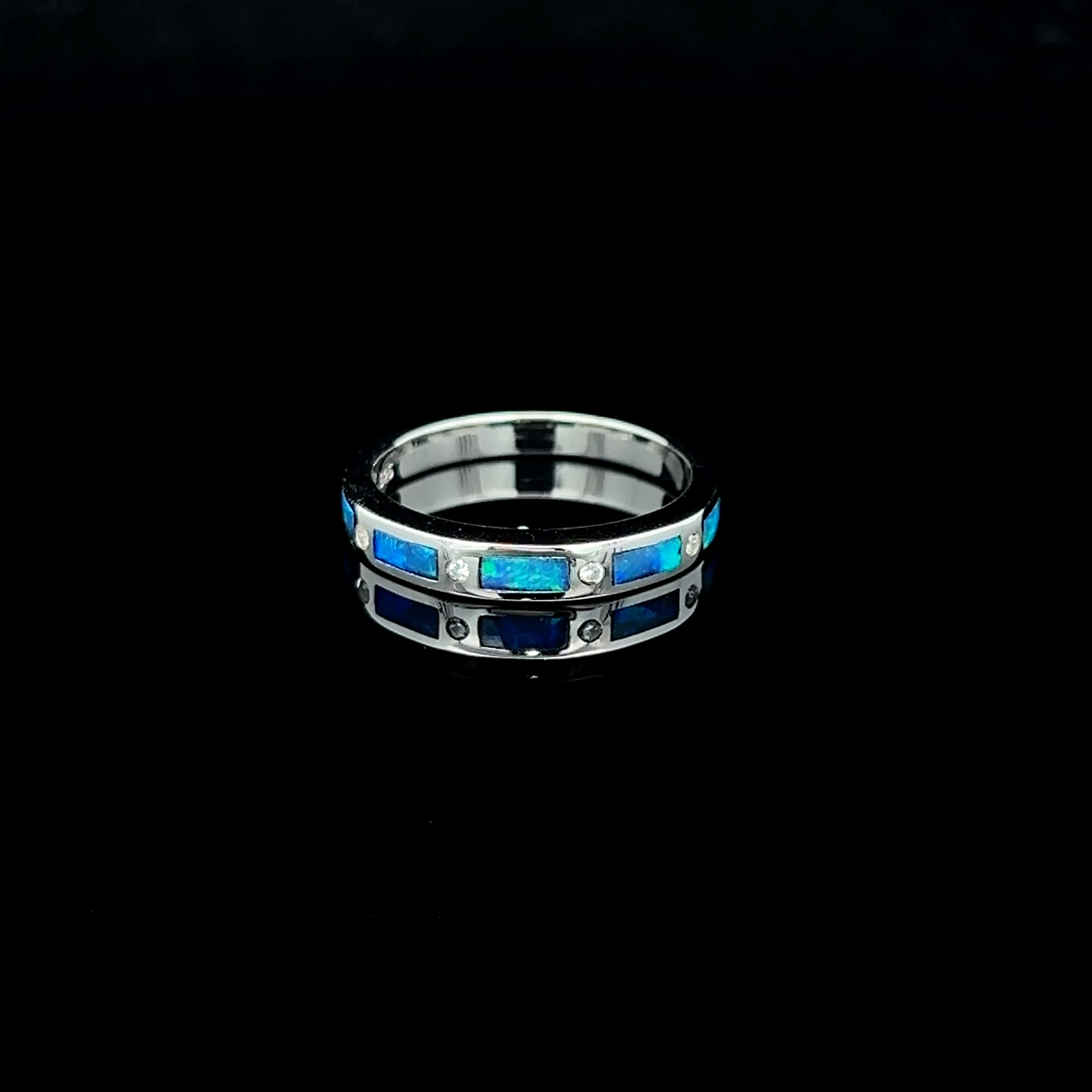 Solid South Australian 5-section Inlay Opal & Cubic Zirconia Ring Set in Sterling Silver