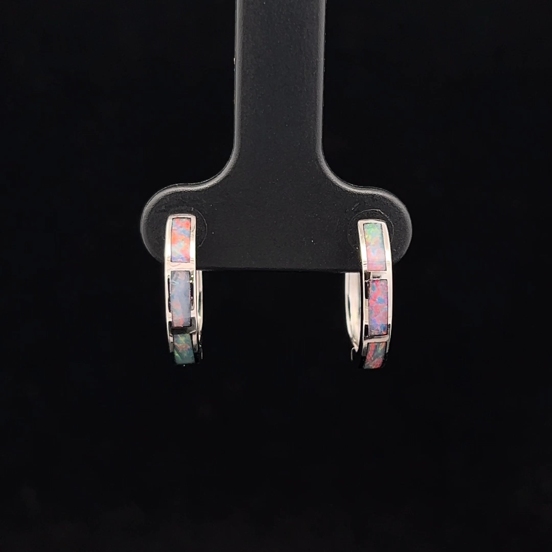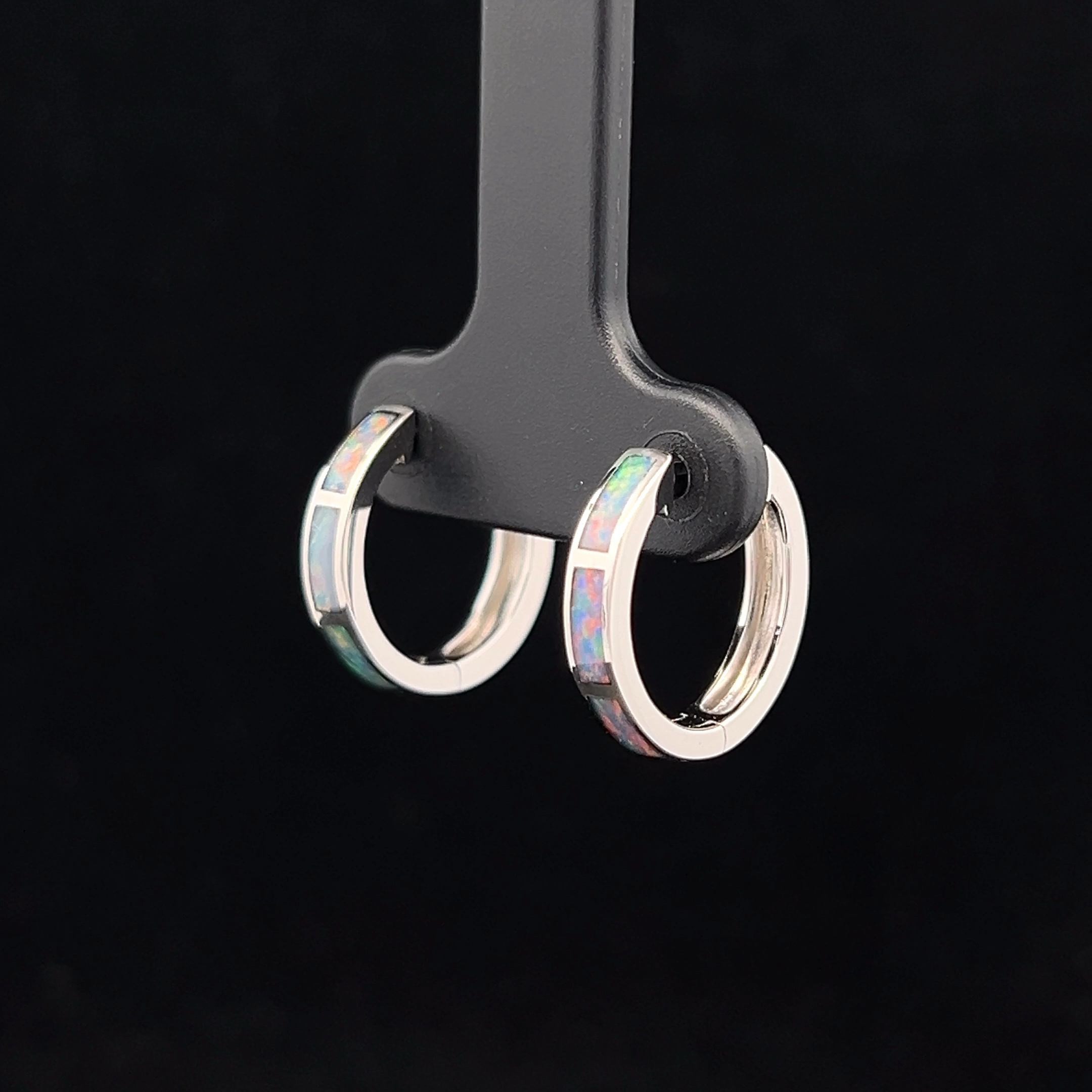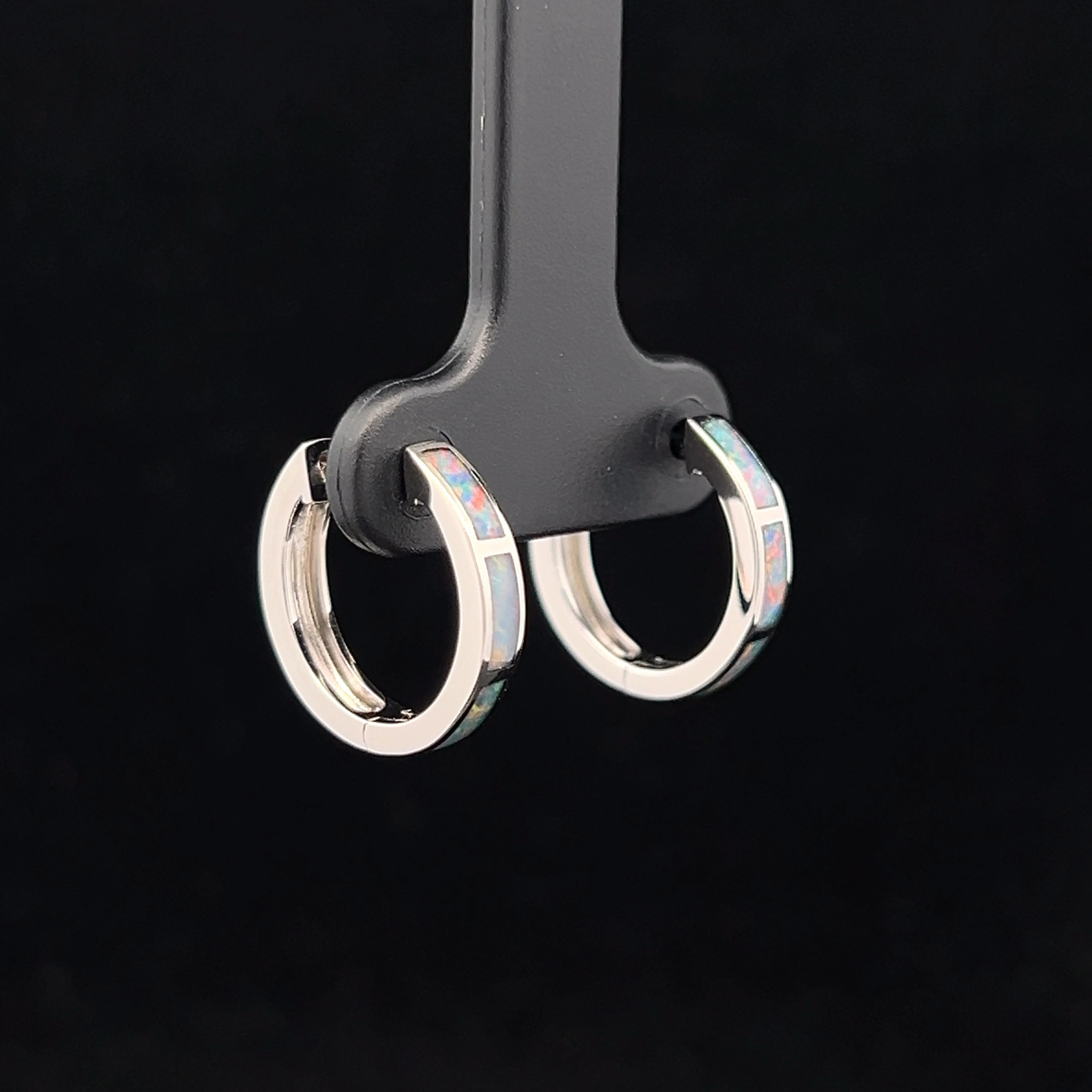 South Australian Solid Light Inlay Opal set in Sterling Silver Huggie Earrings