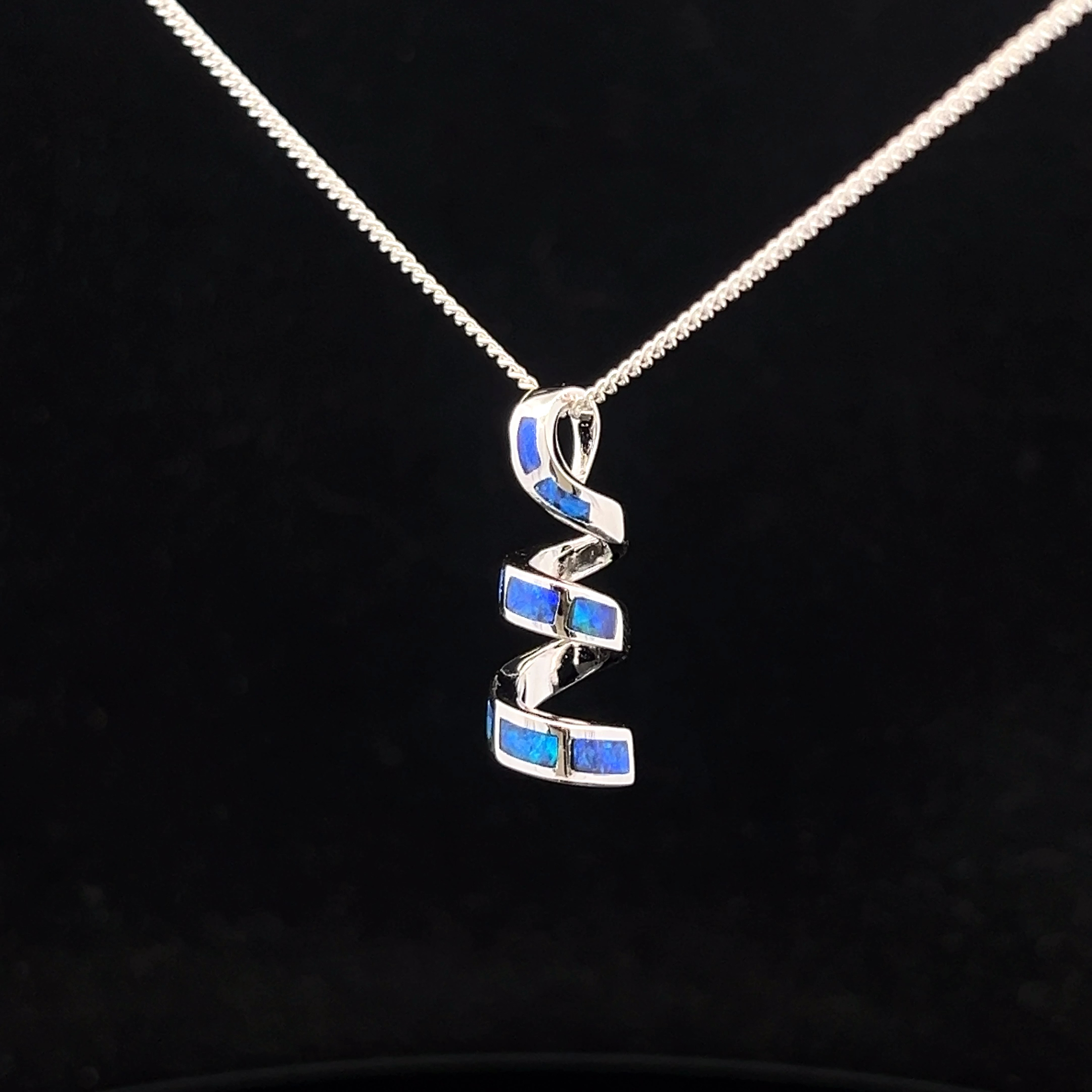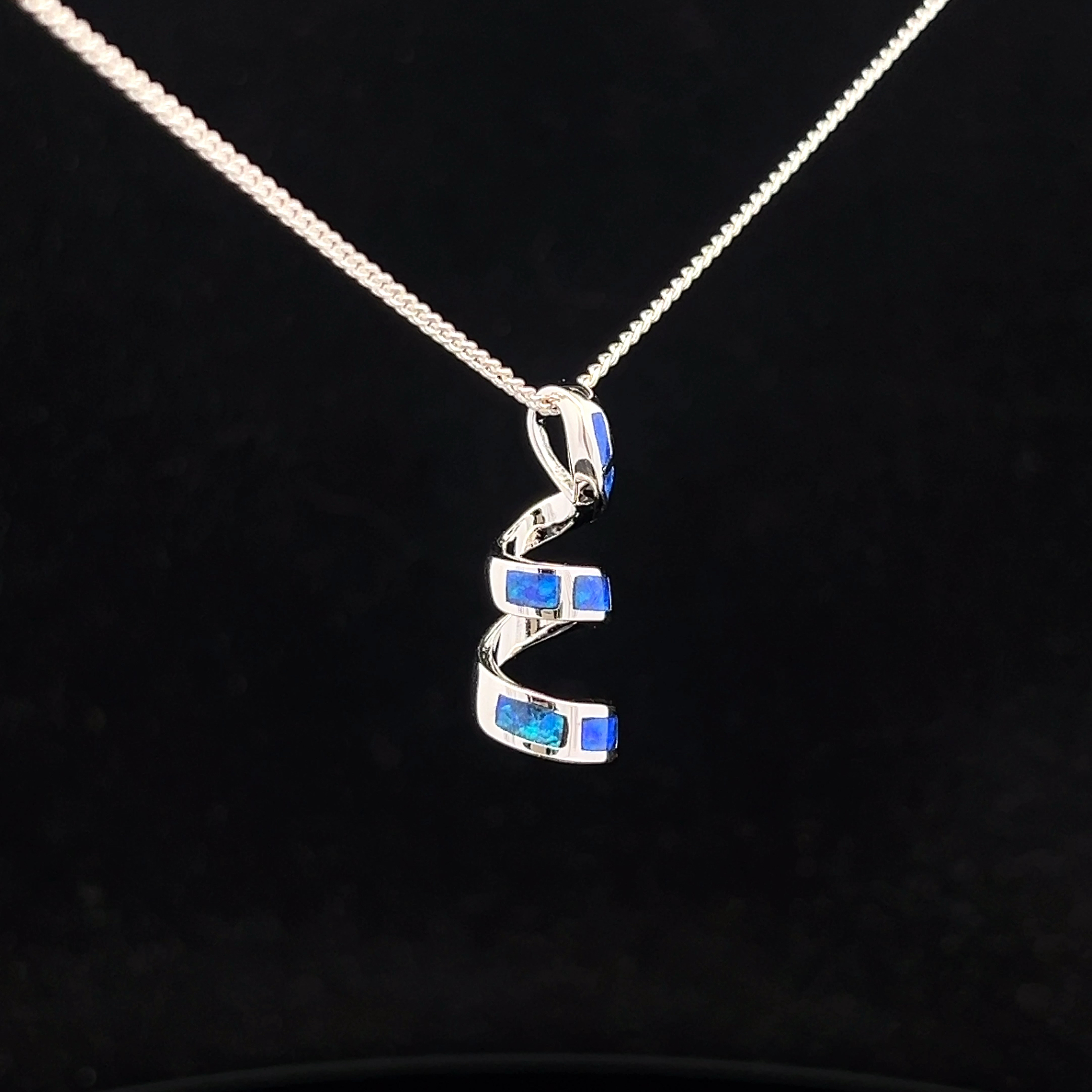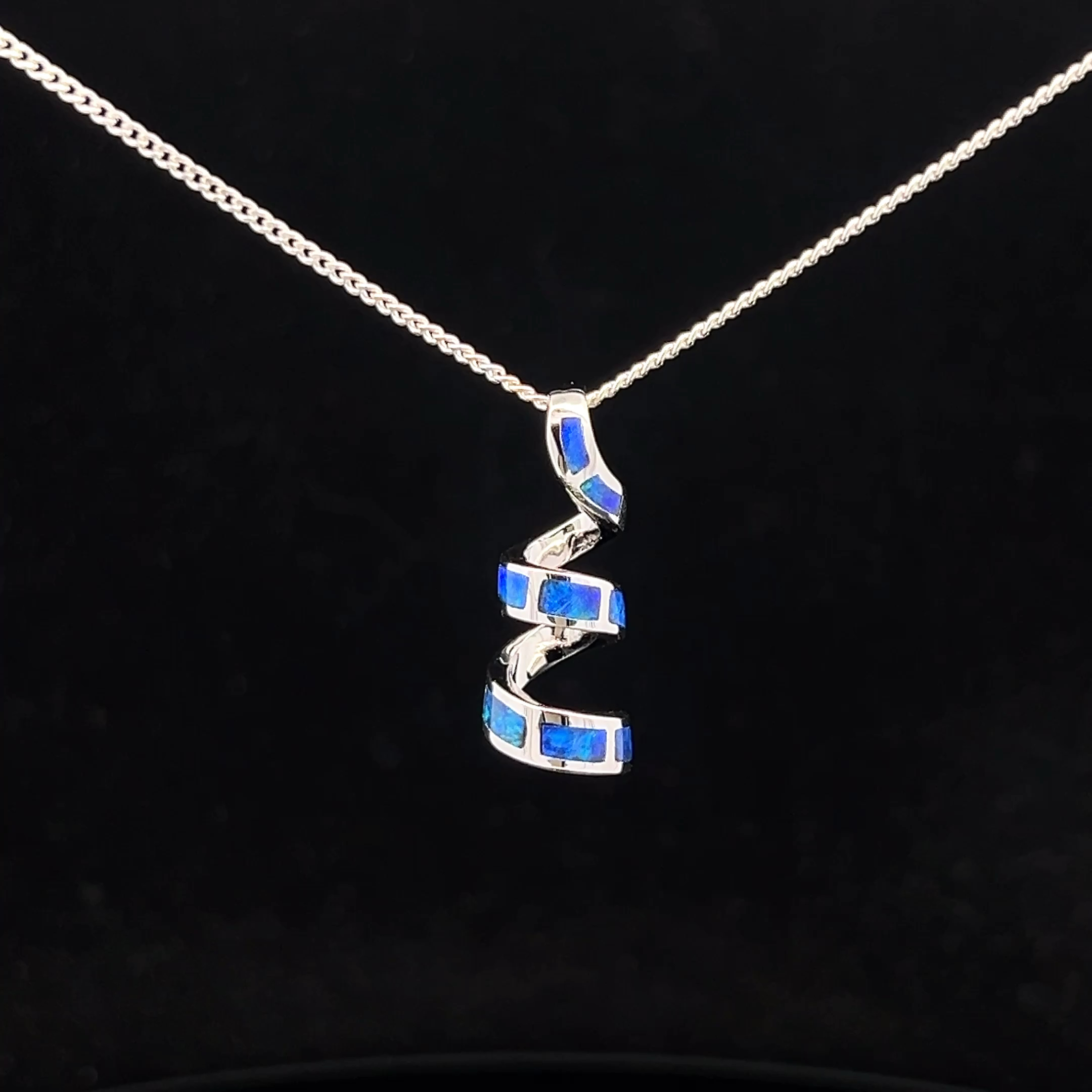 Sterling Silver Australian Inlay Opal set in Sterling Silver Spiral Slider Pendant