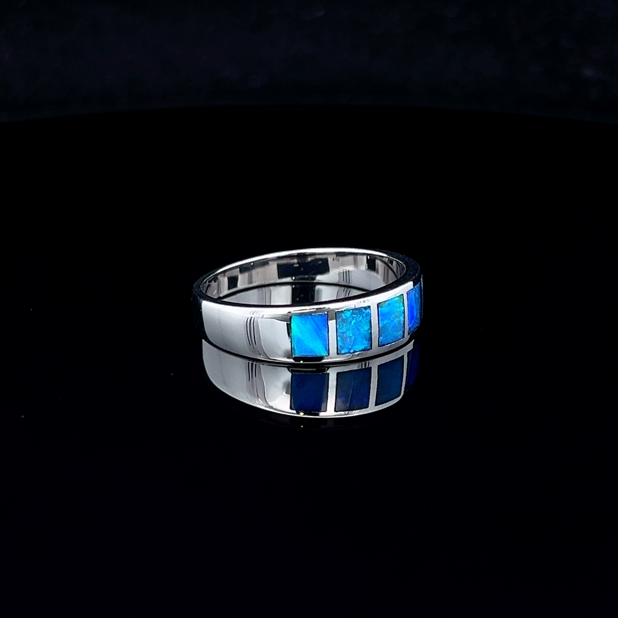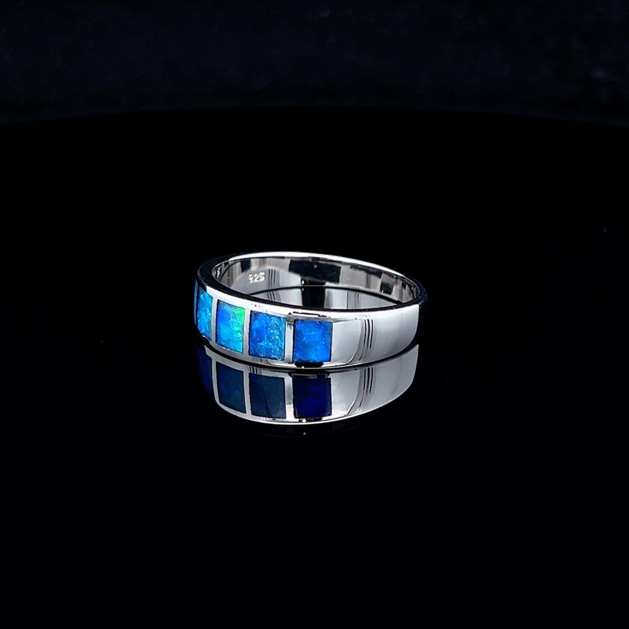 Solid South Australian 5-section Inlay Opal Ring Set in Sterling Silver