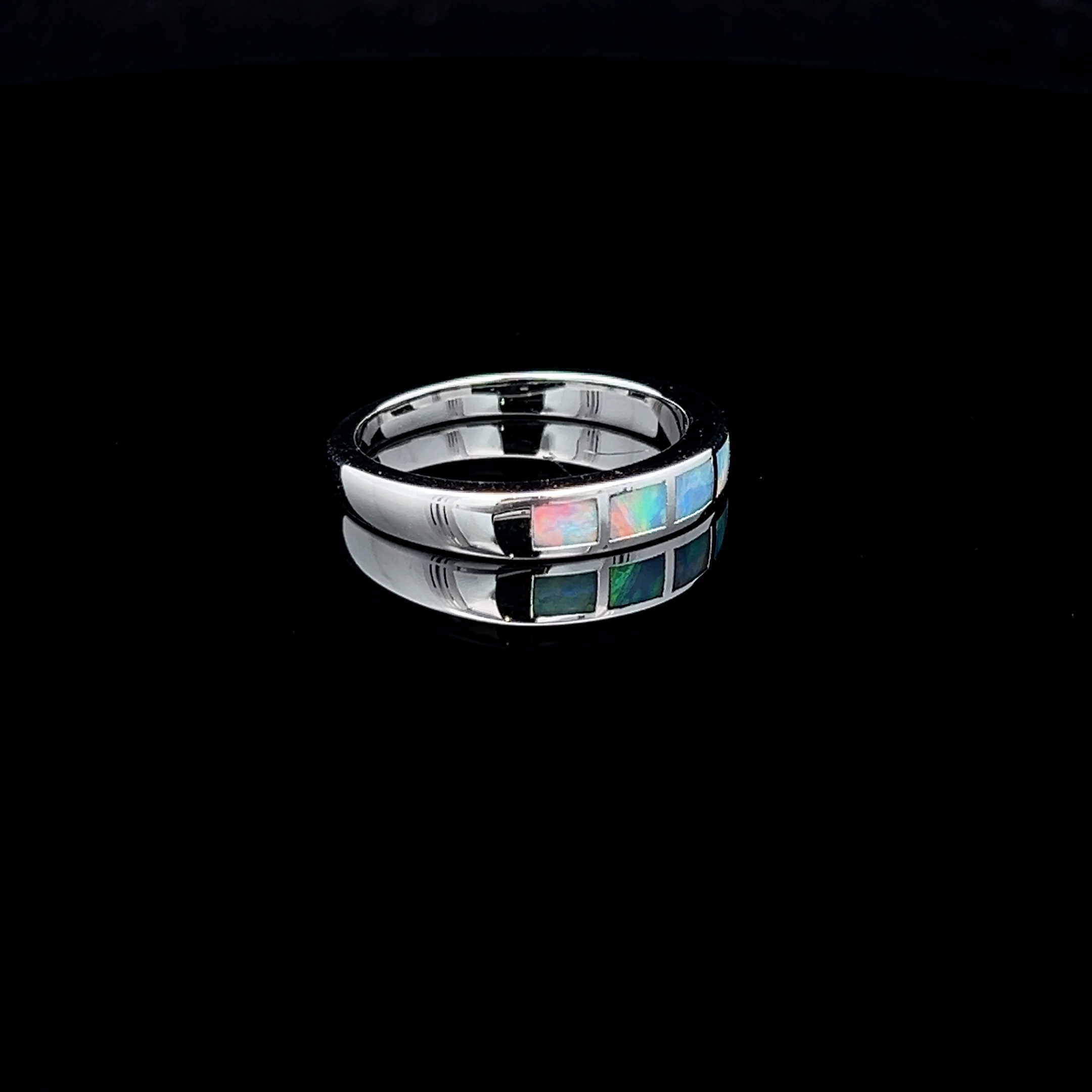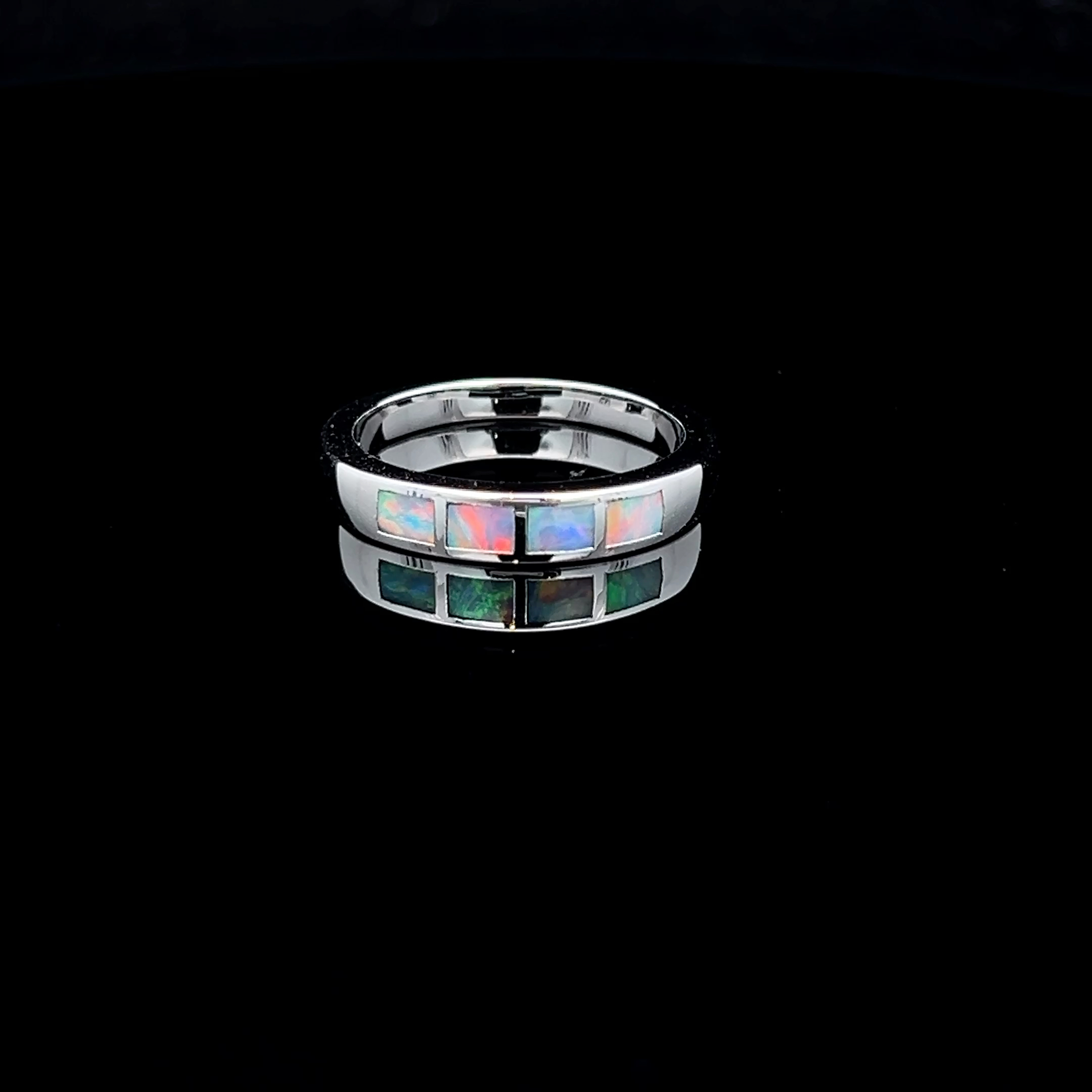 Solid South Australian 4-section Inlay Opal Ring Set in Sterling Silver