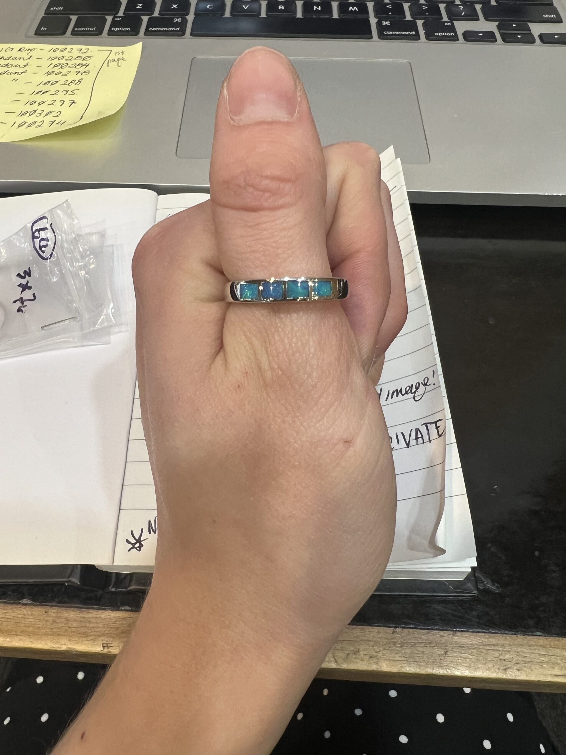 Solid South Australian 4-section Inlay Opal & Cubic Zirconia Ring Set in Sterling Silver