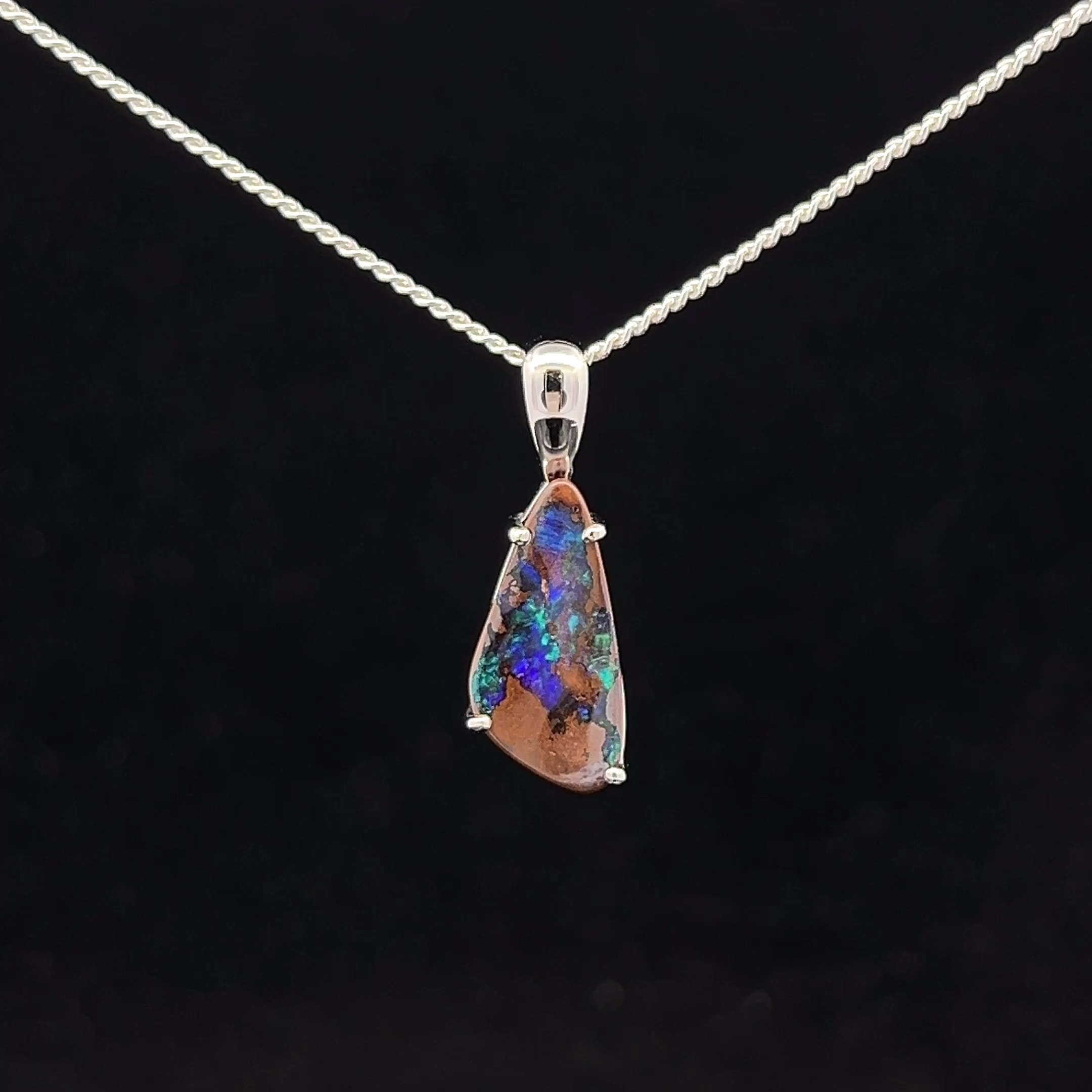 Queensland Solid Boulder Opal Pendant set in Sterling Silver