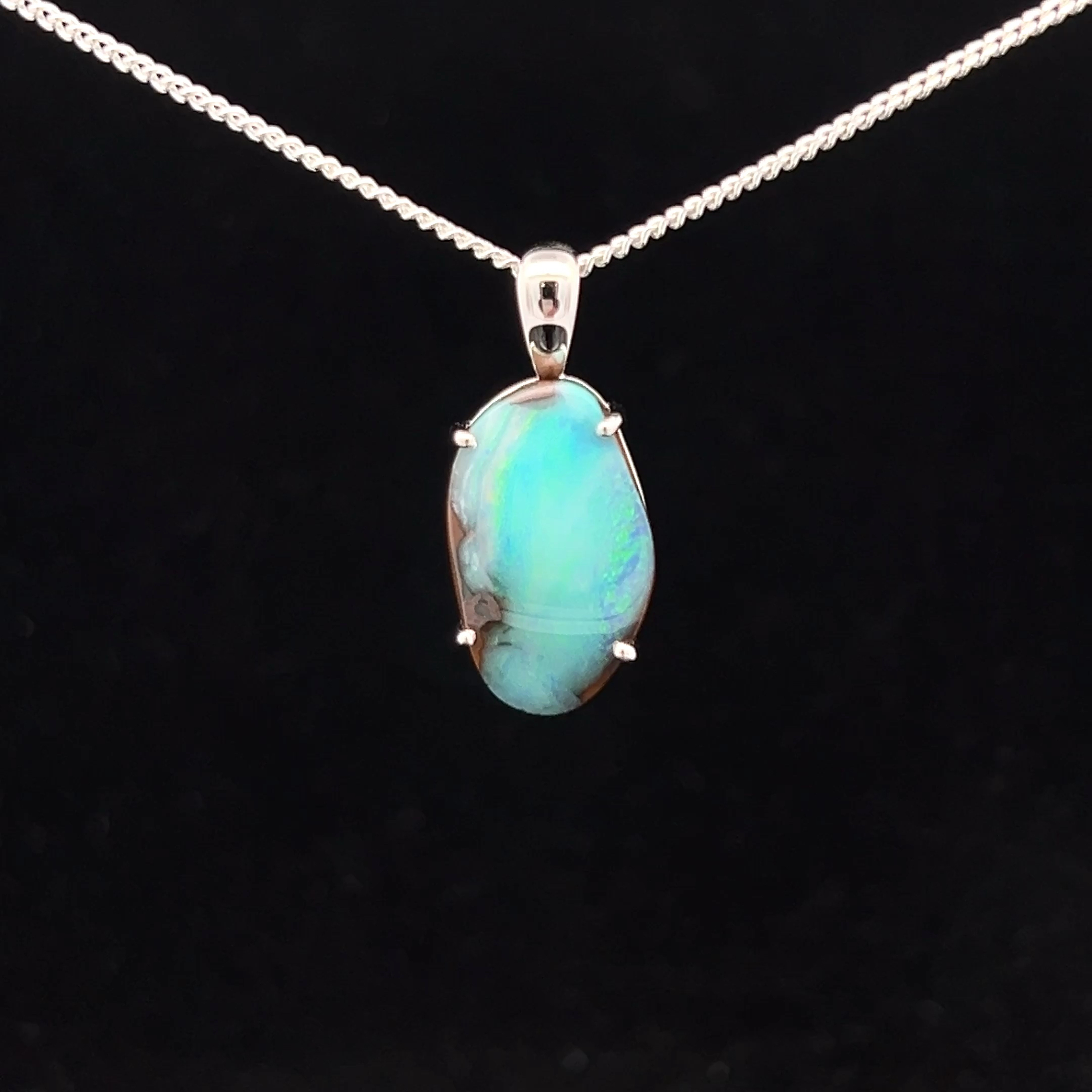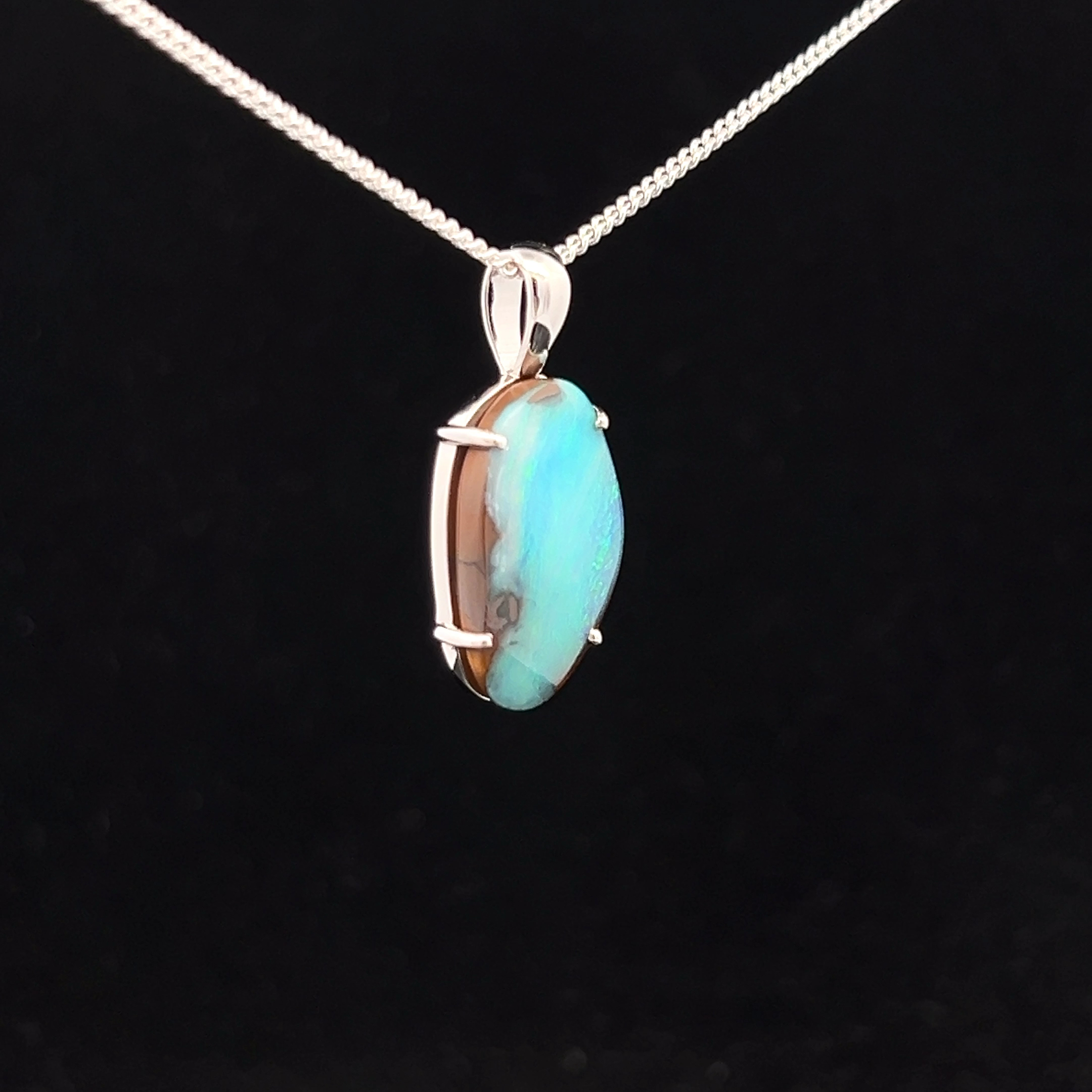 Queensland Solid Boulder Opal Pendant set in Sterling Silver