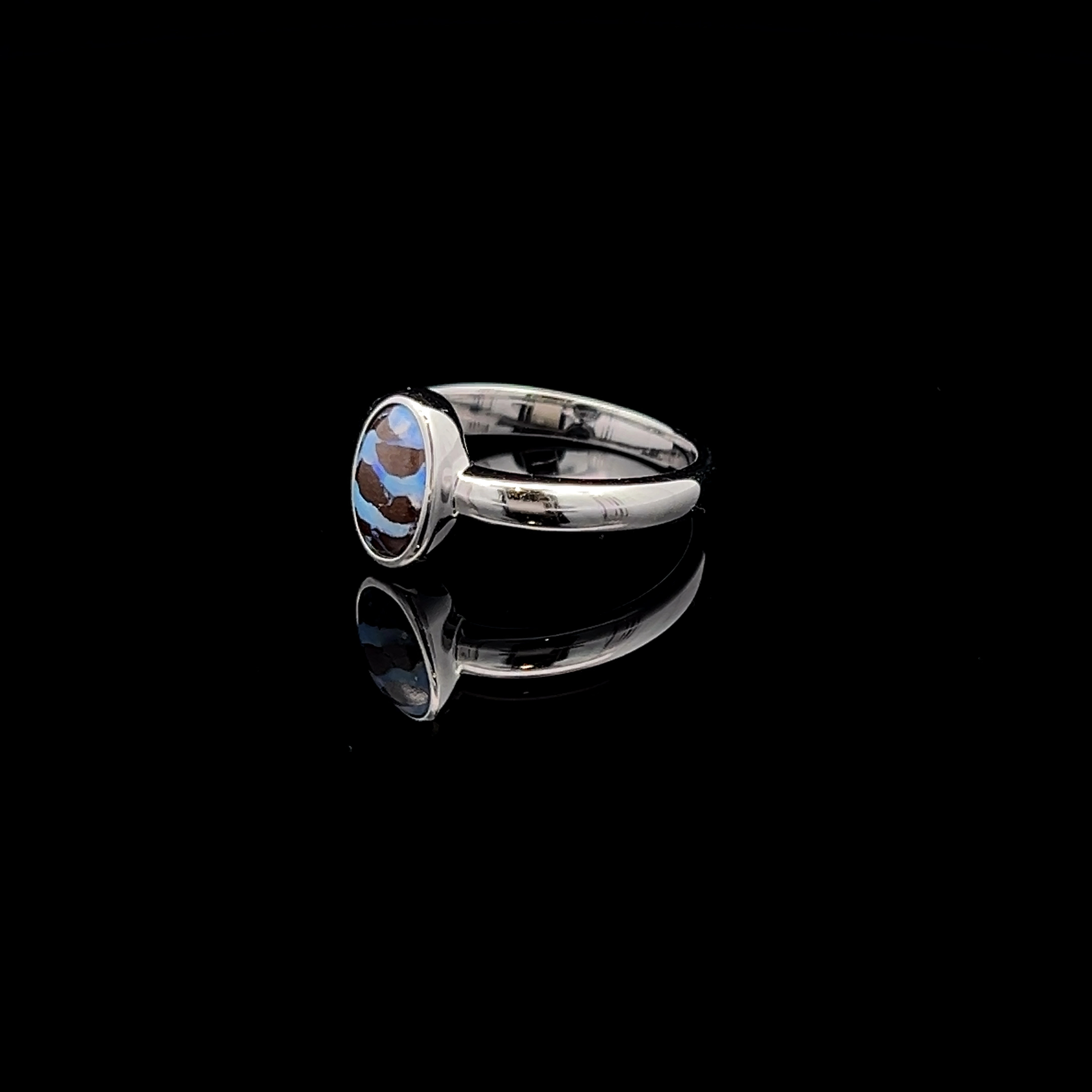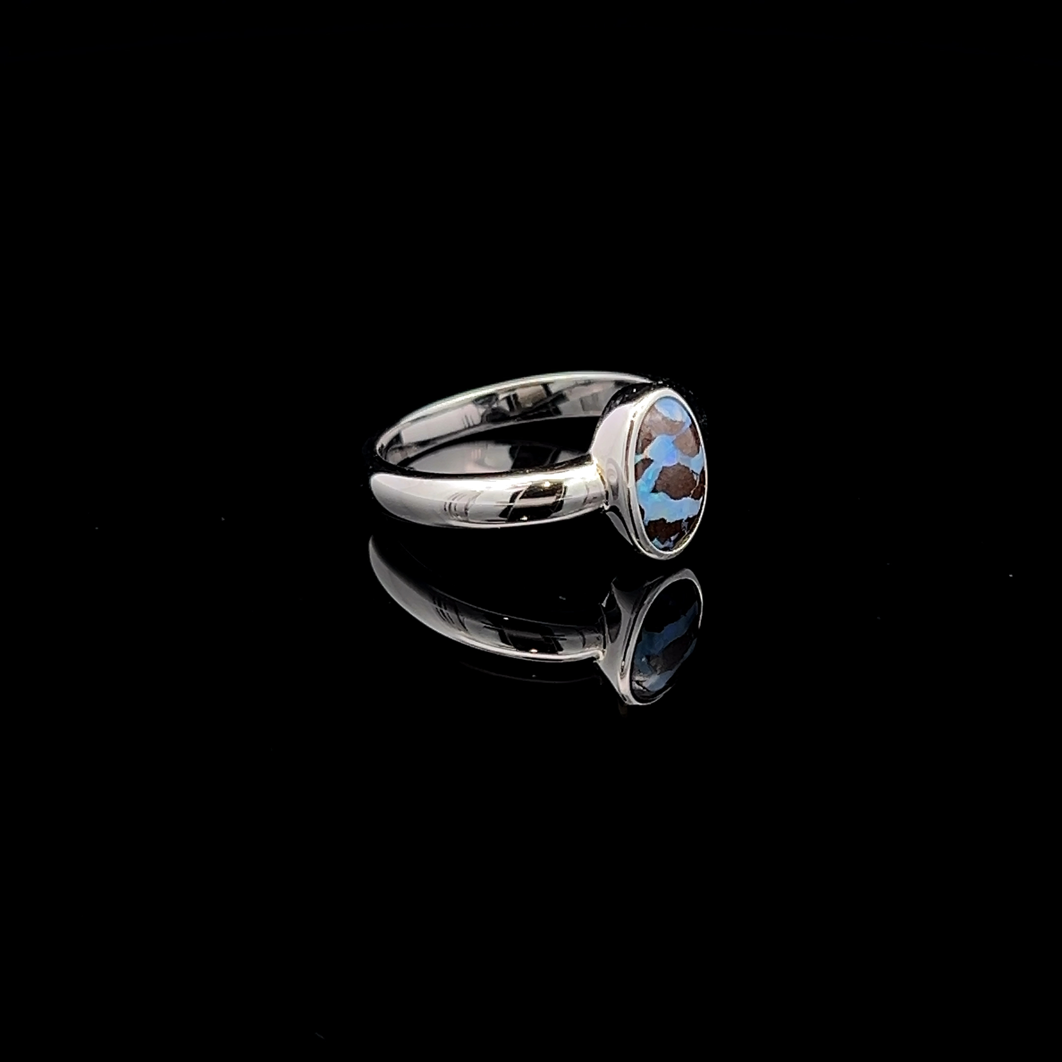 Solid Queensland Boulder Opal Ring Set in Sterling Silver