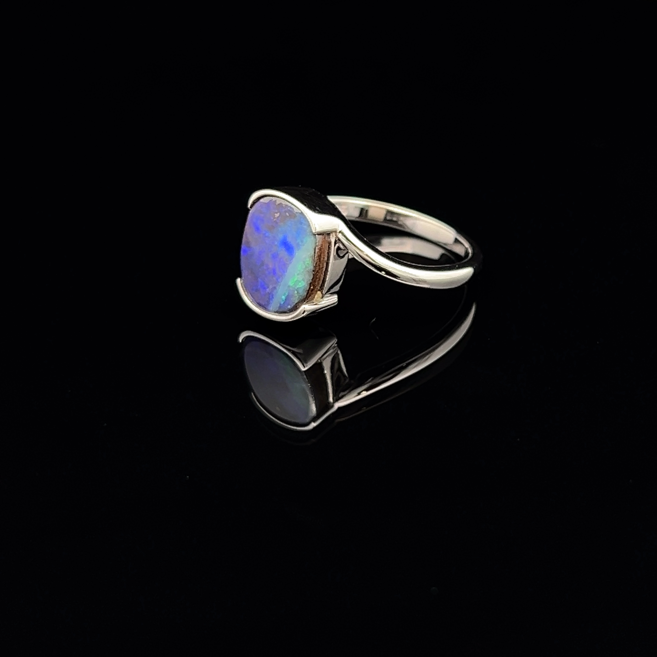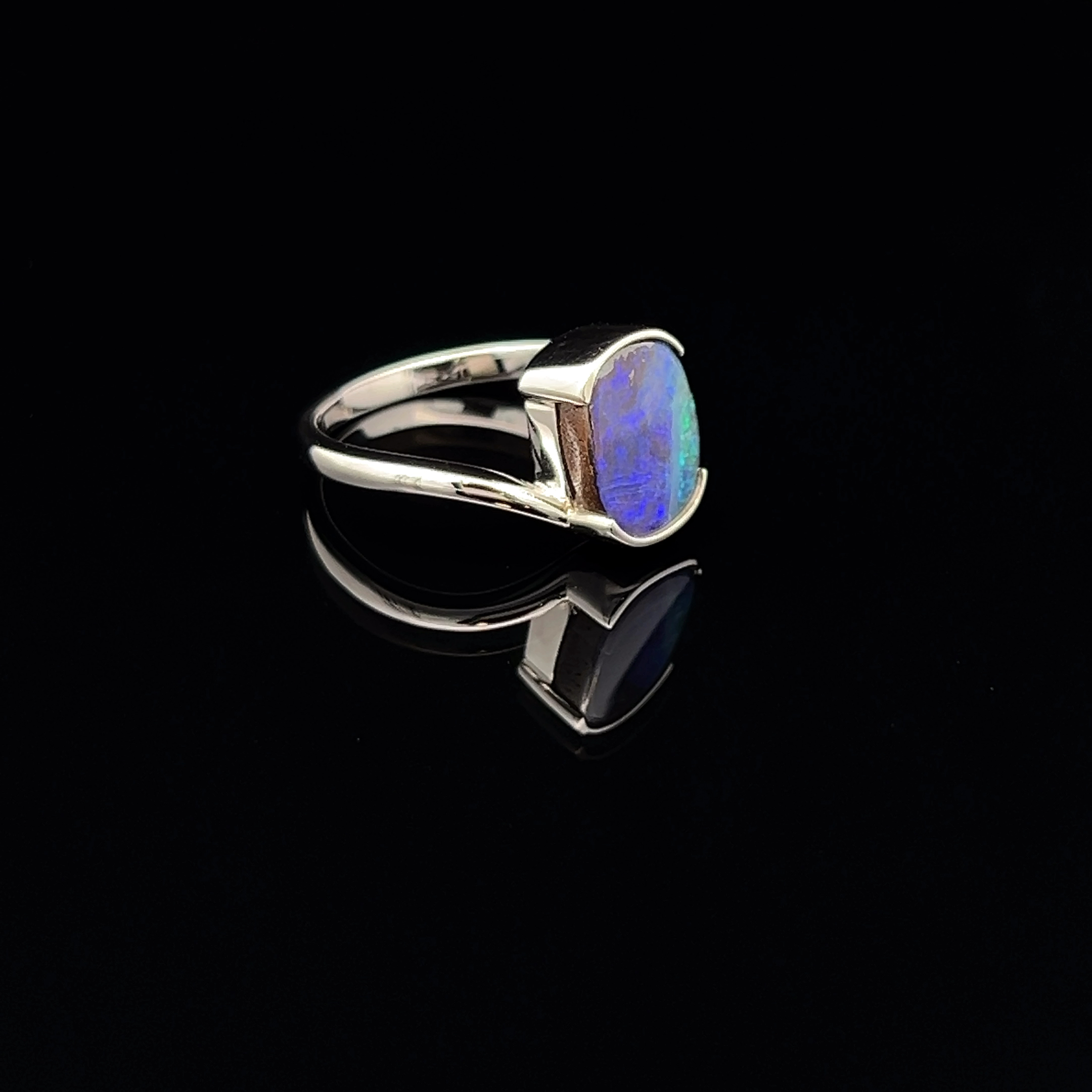 Solid Queensland Boulder Opal Ring Set in Sterling Silver
