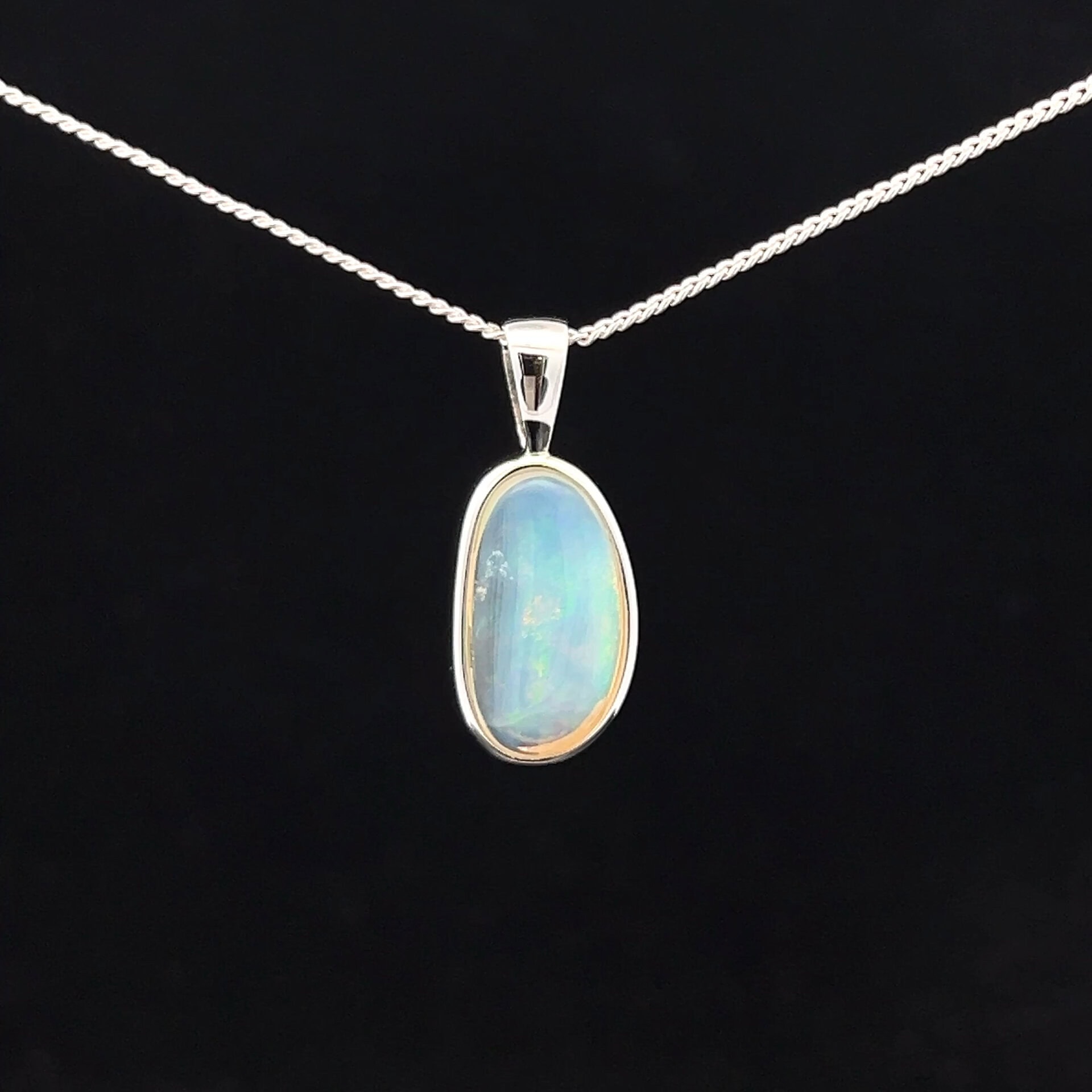 Solid South Australian Crystal Opal set in a Sterling Silver Pendant