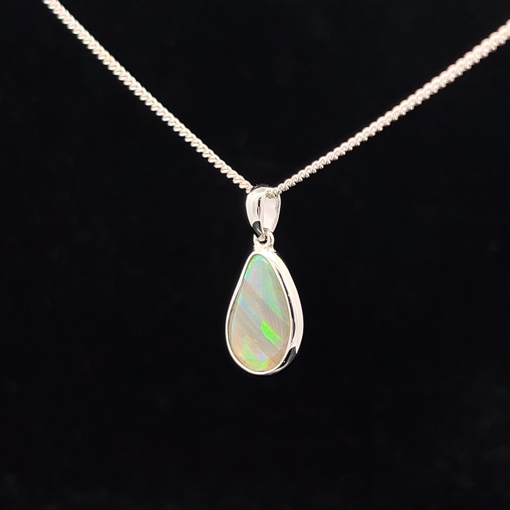 Solid South Australian Crystal Opal set in a Sterling Silver Pendant