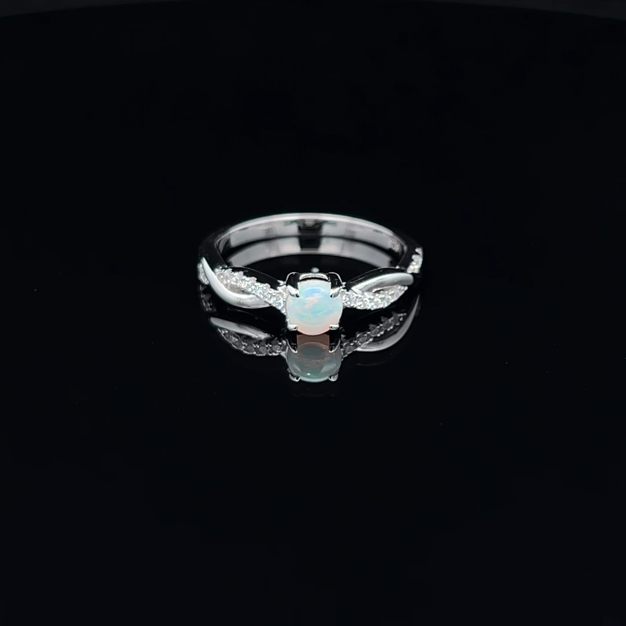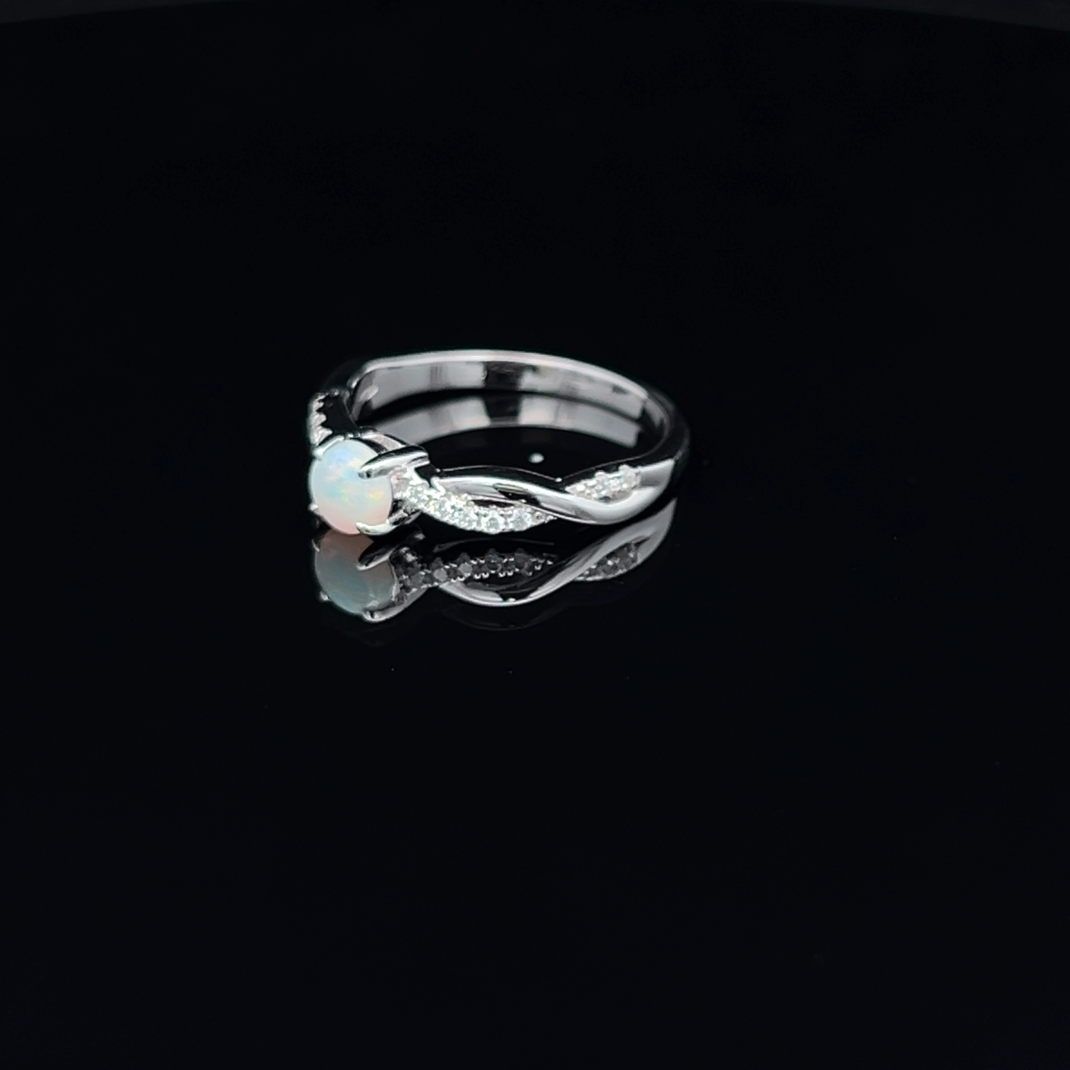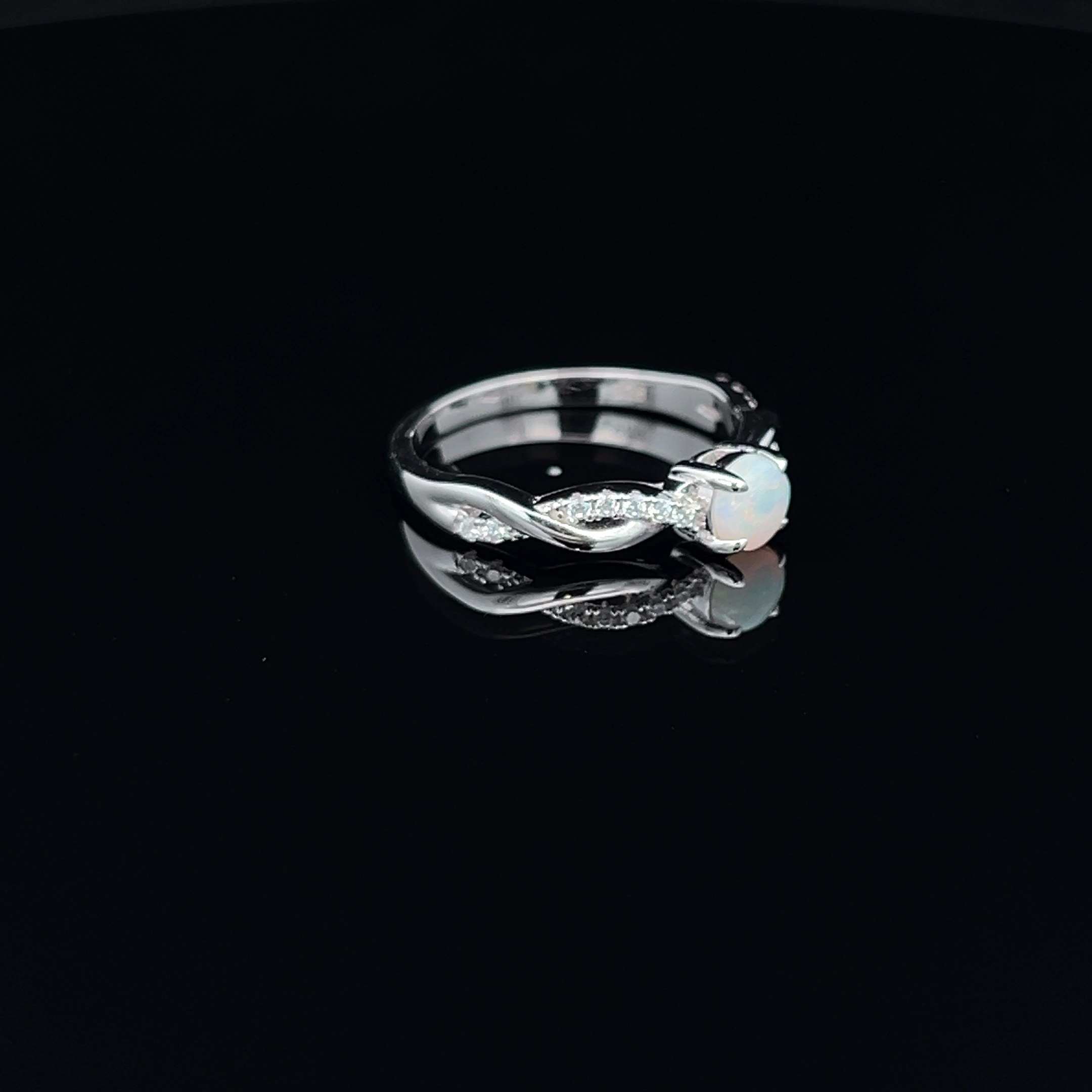Solid South Australian Light Opal & Cubic Zirconia Ring Set in Twisted Sterling Silver Band