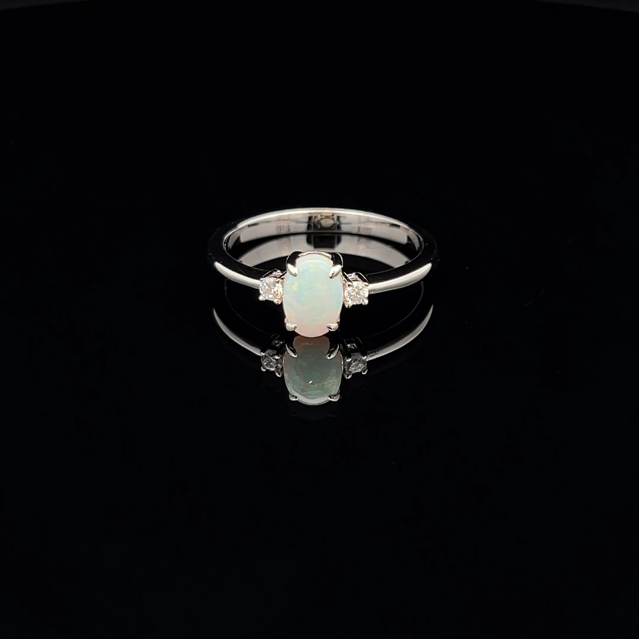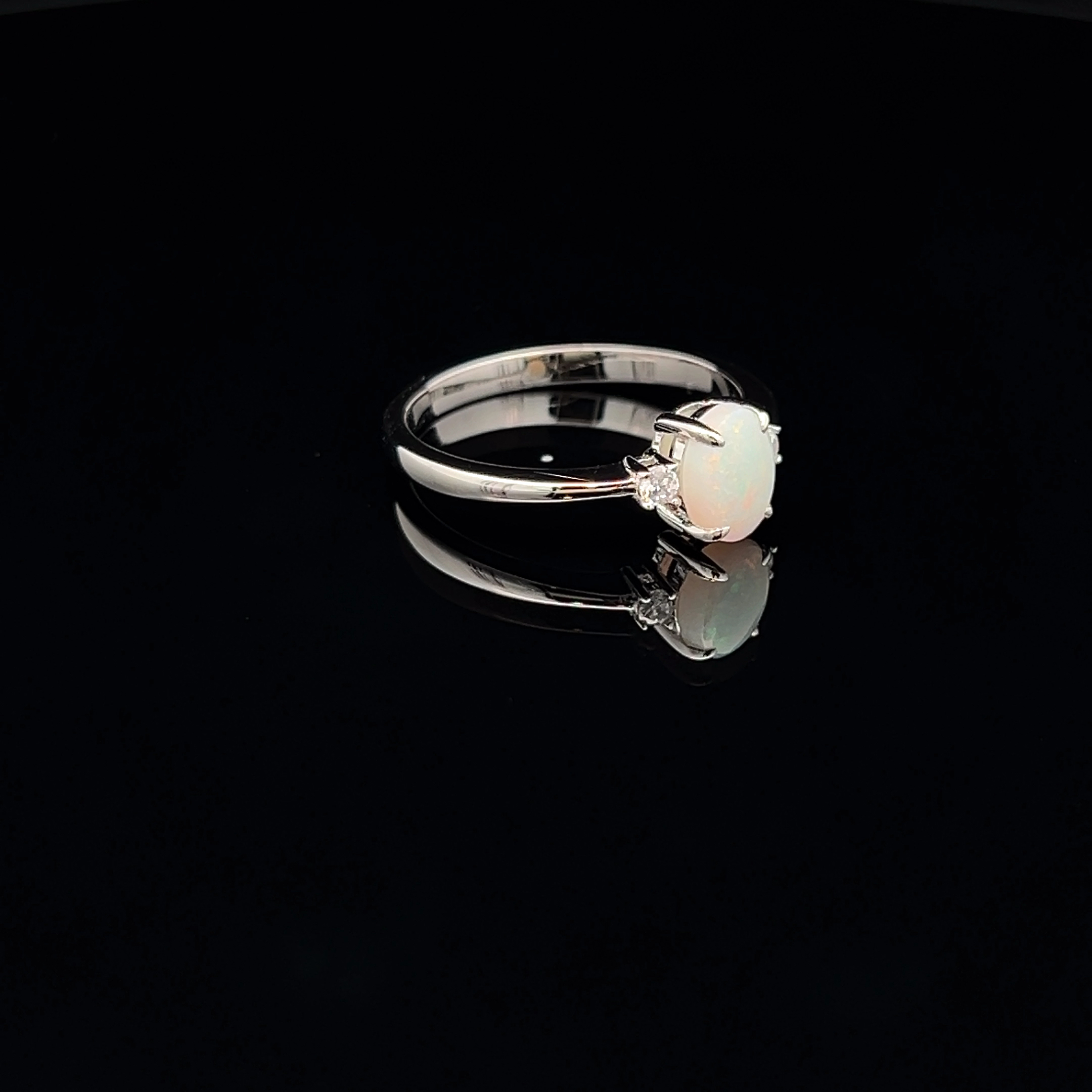 Solid South Australian Light Opal & Cubic Zirconia Ring Set in Sterling Silver